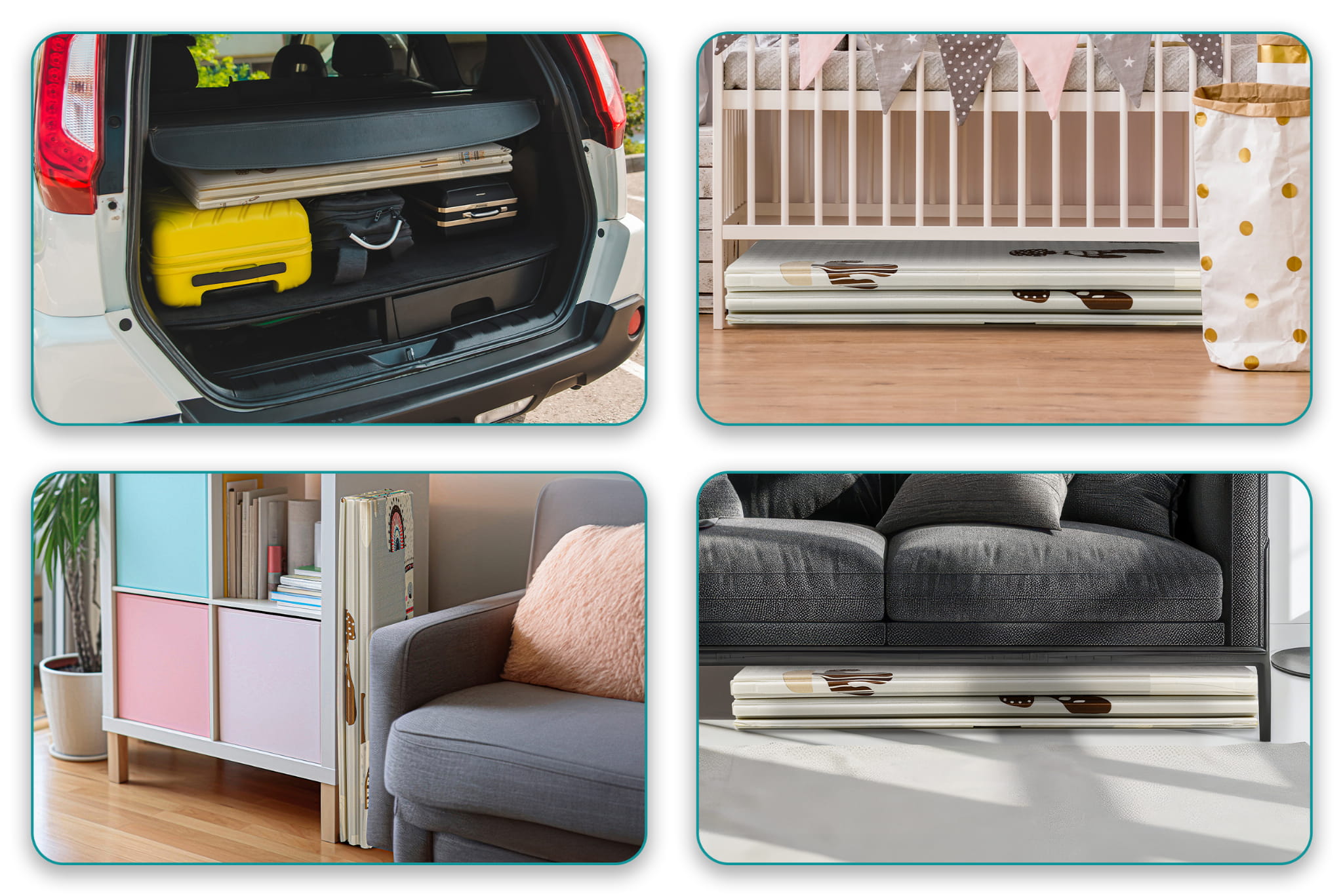 W zestawie znajduje się również dwustronna mata piankowa o grubości 1 cm, która doskonale nadaje się do zabawy i nauki na różnych etapach rozwoju dziecka. Mata jest praktyczna, łatwa w przechowywaniu i transporcie, co sprawia, że idealnie sprawdzi się zarówno w domu, jak i na zewnątrz. Wykonana z bezzapachowej, wysokiej jakości pianki XPE, mata zapewnia doskonałą amortyzację podczas upadków oraz izolację przed zimnym podłożem. Dodatkowe akcesoria w zestawie z kojcem Więcej informacji znajdą Państwo w instrukcji montażu i użytkowania. Link do pobrania: INSTRUKCJA