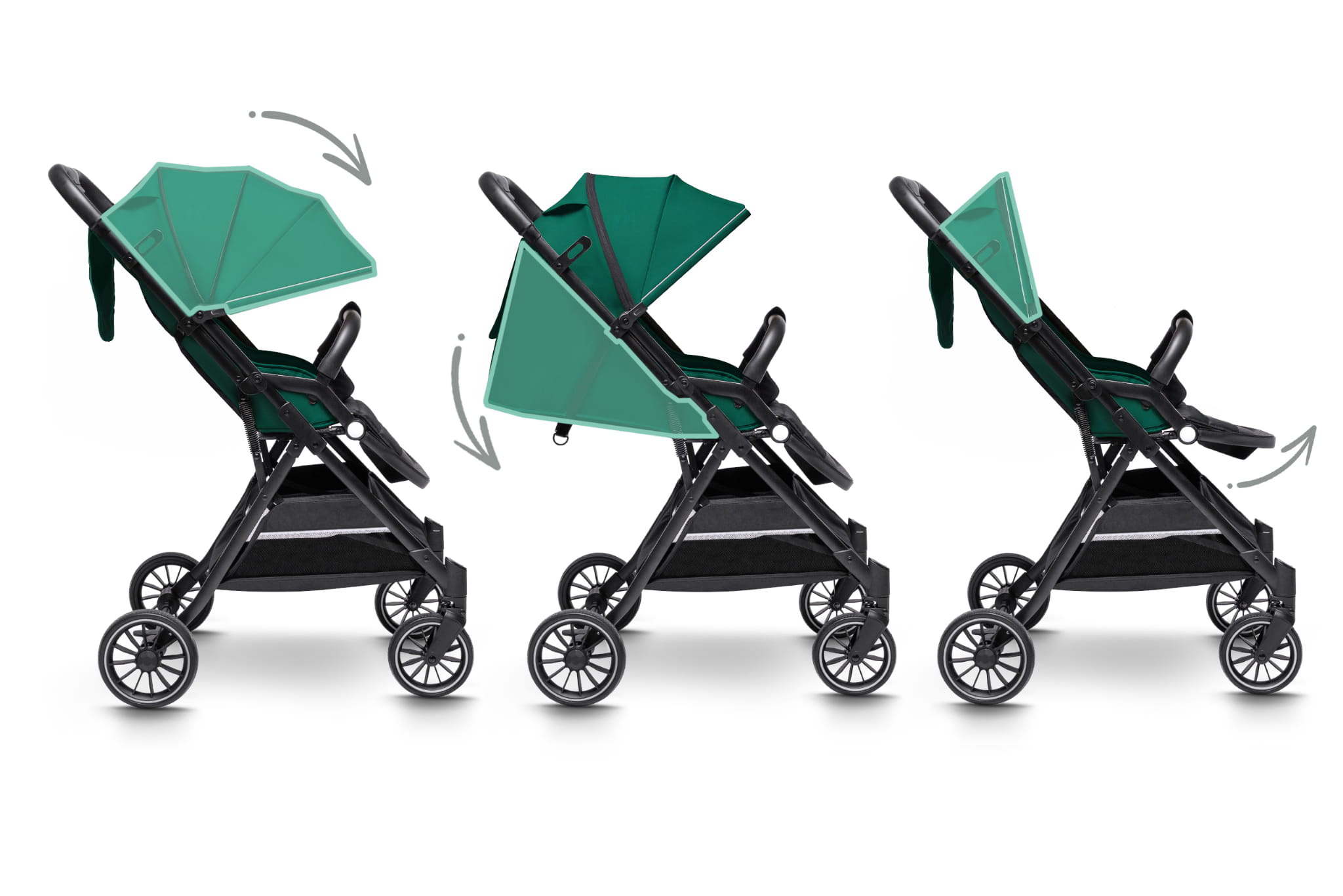 - Regulowane oparcie – bezstopniowa regulacja pozwala szybko zmienić pozycję z siedzącej na leżącą, gwarantując maluszkowi wygodę zarówno podczas obserwacji otoczenia, jak i drzemki.