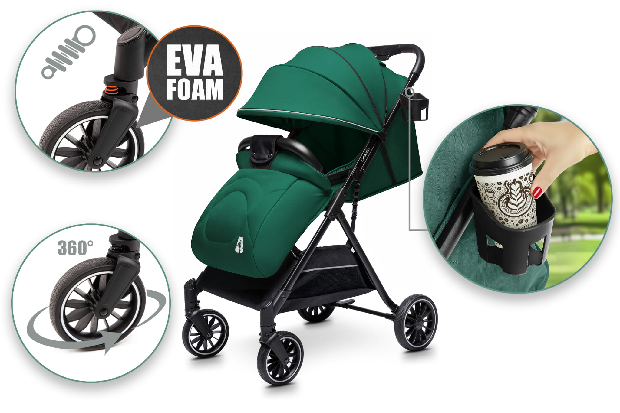 - Praktyczny uchwyt na kubek - idealne miejsce na butelkę z wodą dla maluszka lub kawę dla rodzica, by każdy spacer był jeszcze wygodniejszy.
