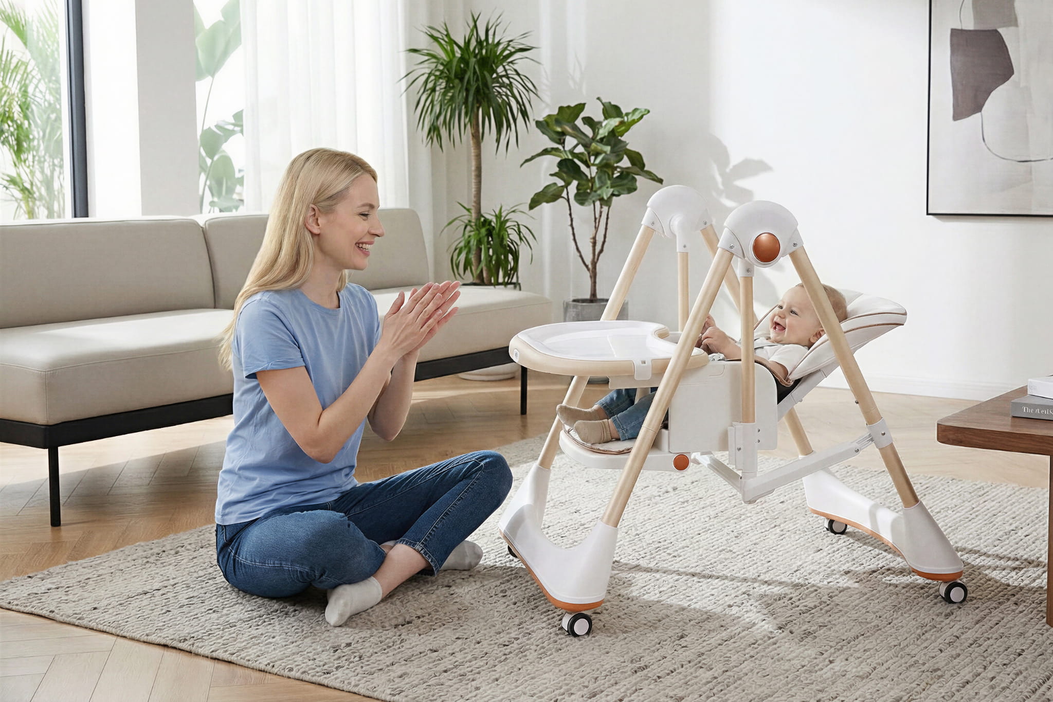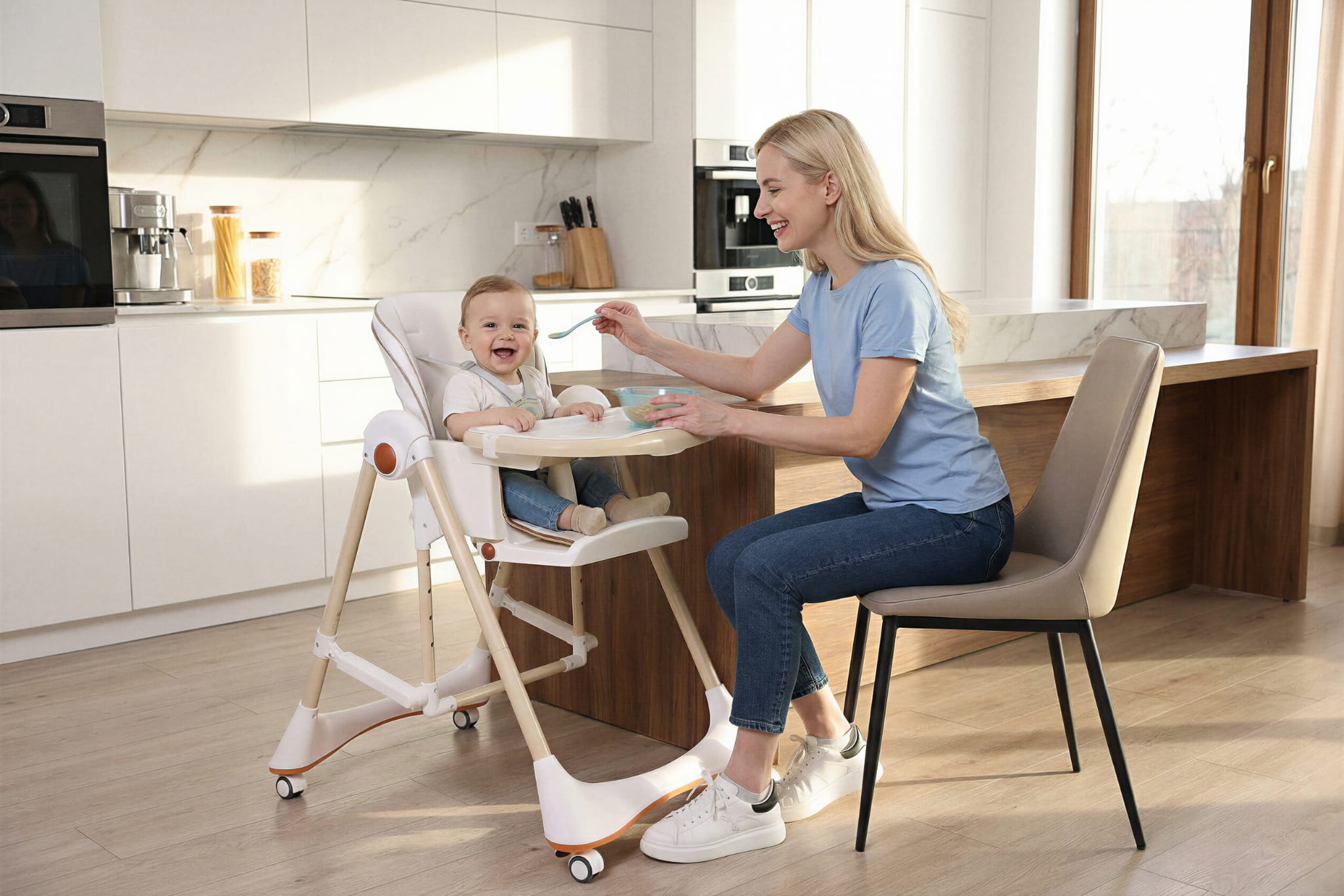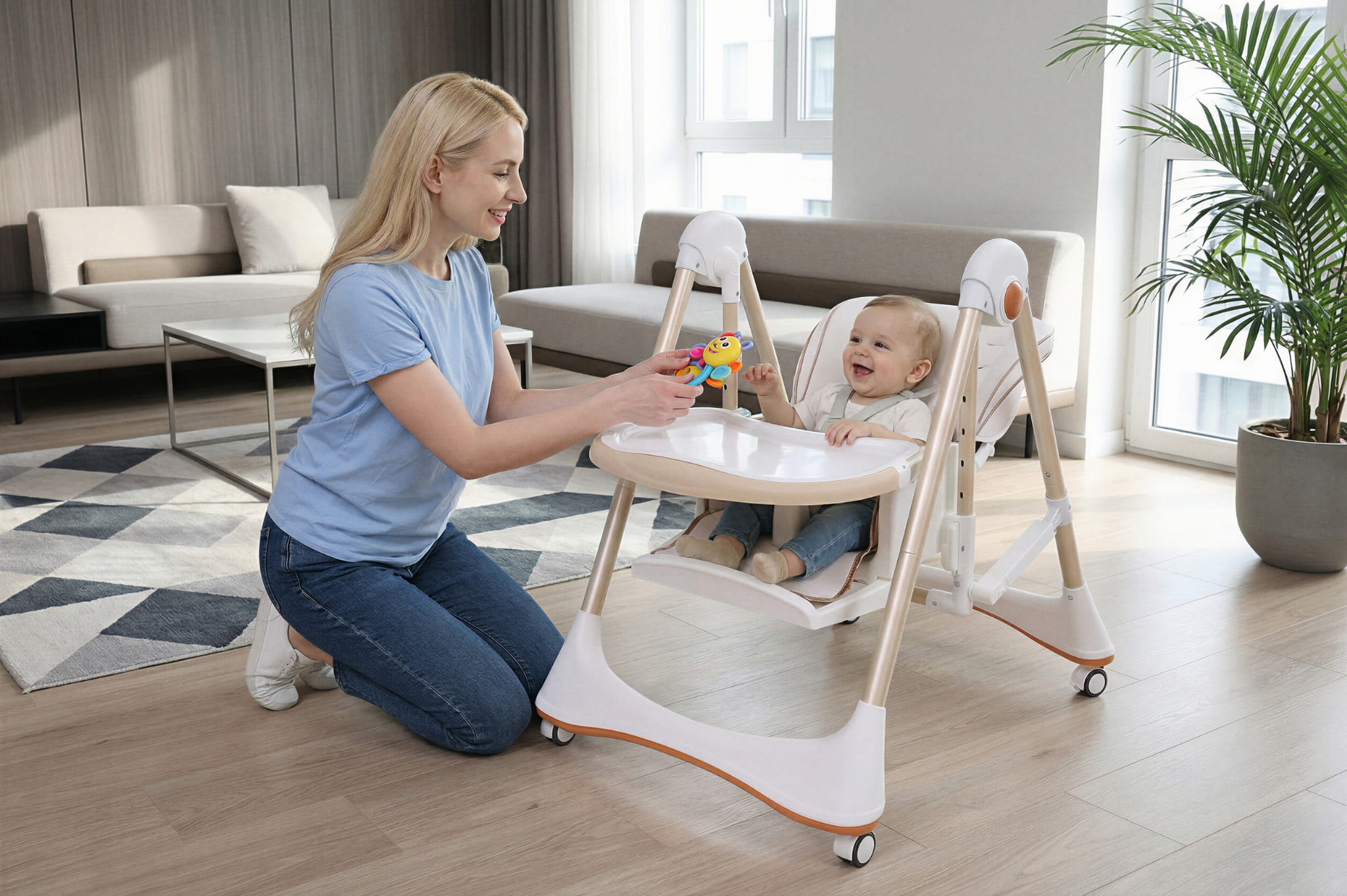 DZIECIĘCE KRZESEŁKO DO KARMIENIA BUJANE 3W1 BIAŁE
