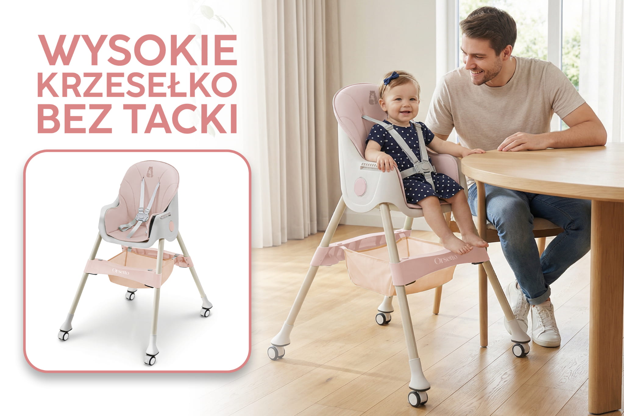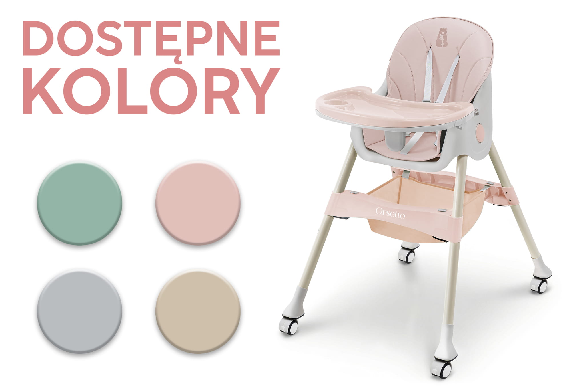 W codziennym życiu rodzica nie brakuje wyzwań, dlatego z przyjemnością przedstawiamy nasze krzesełko do karmienia ORSETTO KARMELEK. Zostało ono stworzone, aby ułatwić i uprzyjemnić codzienne obowiązki. Poznaj wszechstronne krzesełko 4w1, które dostosowuje się do potrzeb Twojego dziecka w miarę jego wzrostu. Dzięki różnym konfiguracjom - wysokie wolnostojące krzesełko, wysokie krzesełko dosunięte do stołu, niskie wolnostojące krzesełko oraz niskie krzesełko - codzienne zadania staną się prostsze i mniej czasochłonne. ORSETTO KARMELEK to Twój niezastąpiony pomocnik w każdej sytuacji. Specyfikacja: