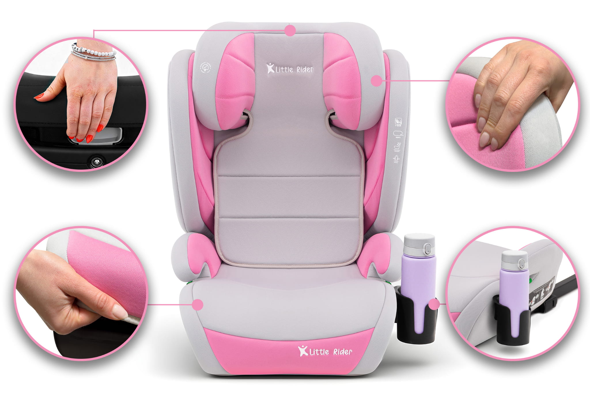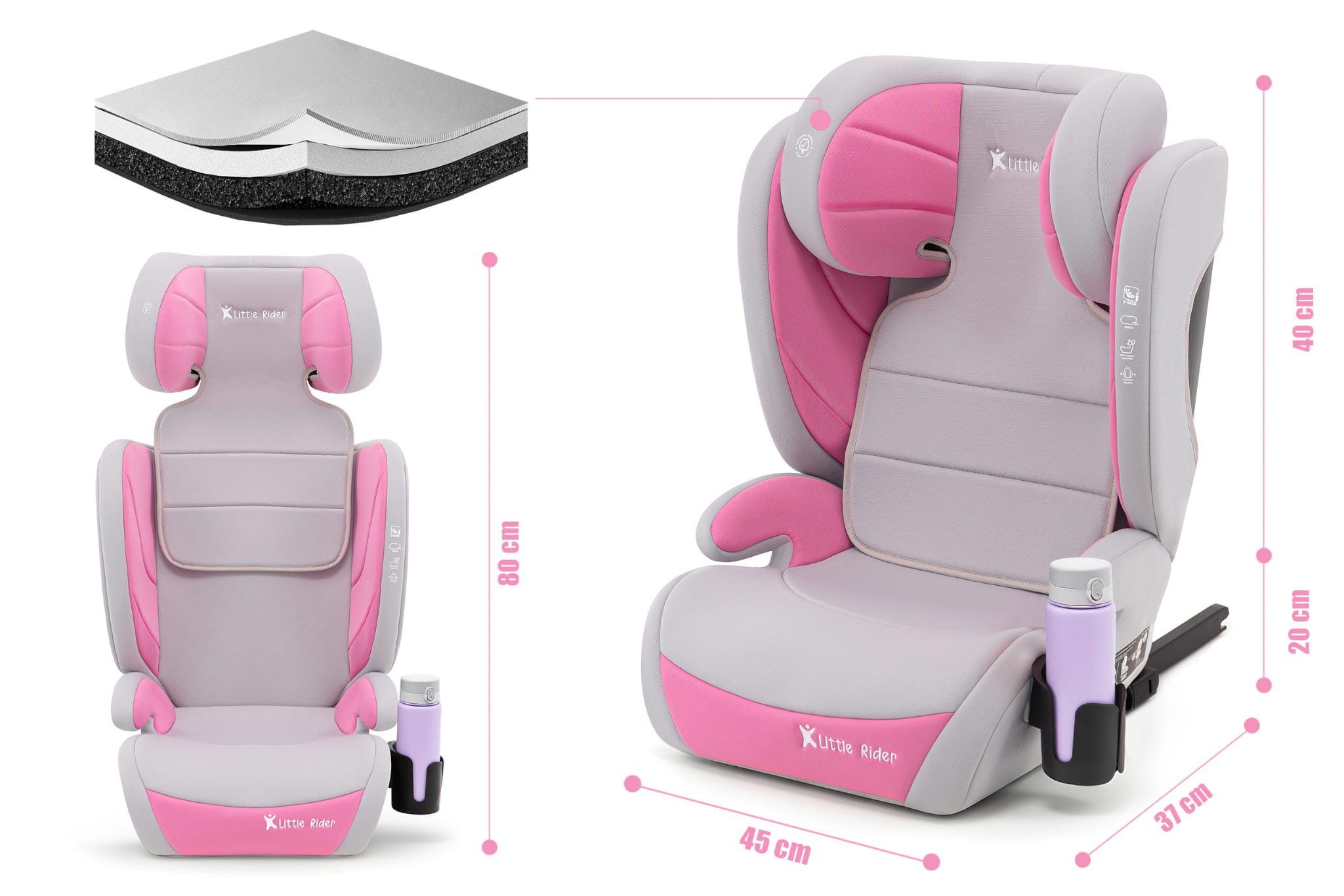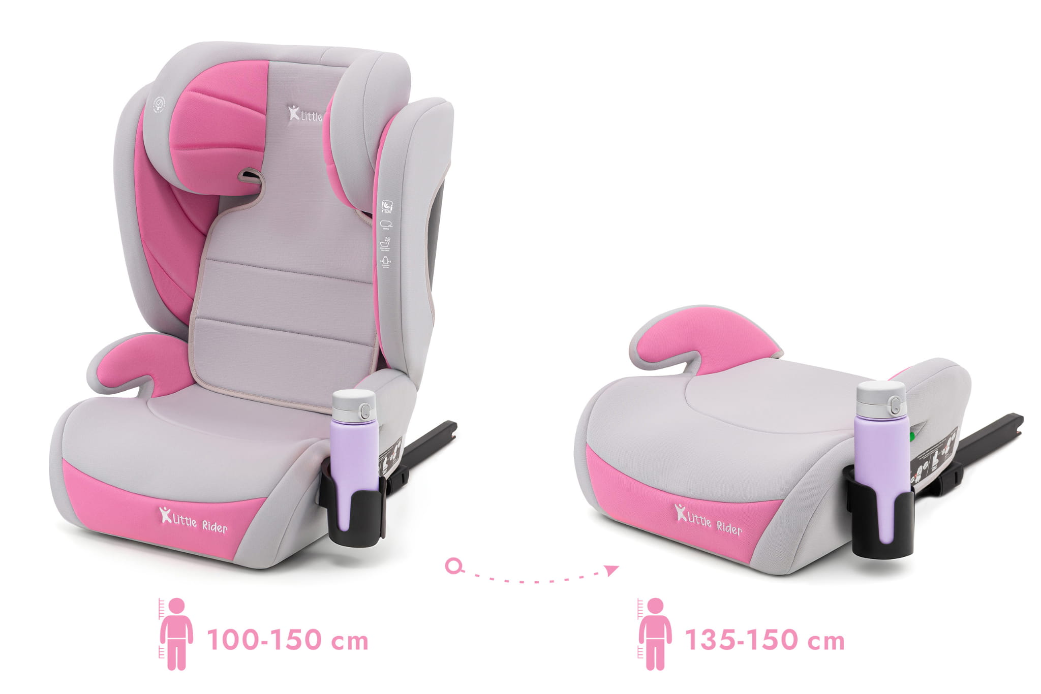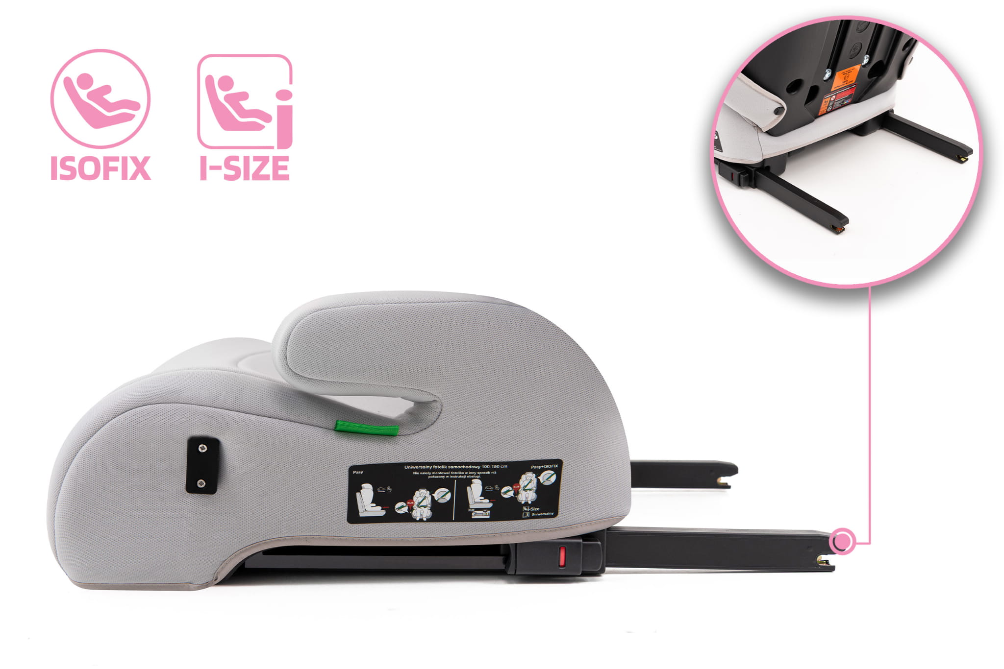 Fotelik posiada demontowaną górną część i może być użytkowany jako tzw. podstawka (od 125 cm do 150 cm) ISOFIX Fotelik wyposażony jest w mocowania ISOFIX, dzięki czemu będzie pasować do każdego samochodu wyposażonego w ten system. Z wyglądu ISOFIX przypomina metalowe uchwyty, które przytwierdzone są do nadwozia pojazdu. Znajdują się one pomiędzy oparciem, a siedziskiem kanapy. Największą zaletą systemu ISOFIX jest prostota montażu, gdyż praktycznie nie istnieje możliwość błędnego przymocowania fotelika, co często zdarza się podczas przypinania "standardowego" fotelika pasami. O tym, że zamocowaliśmy prawidłowo fotelik, powiadomią nas charakterystyczne kliknięcia. Cały proces trwa dosłownie kilka sekund. Foteliki mocowanie przy pomocy ISOFIX są dużo bardziej stabilne i nie ma ryzyka przesuwania się fotelika w trakcie jazdy.