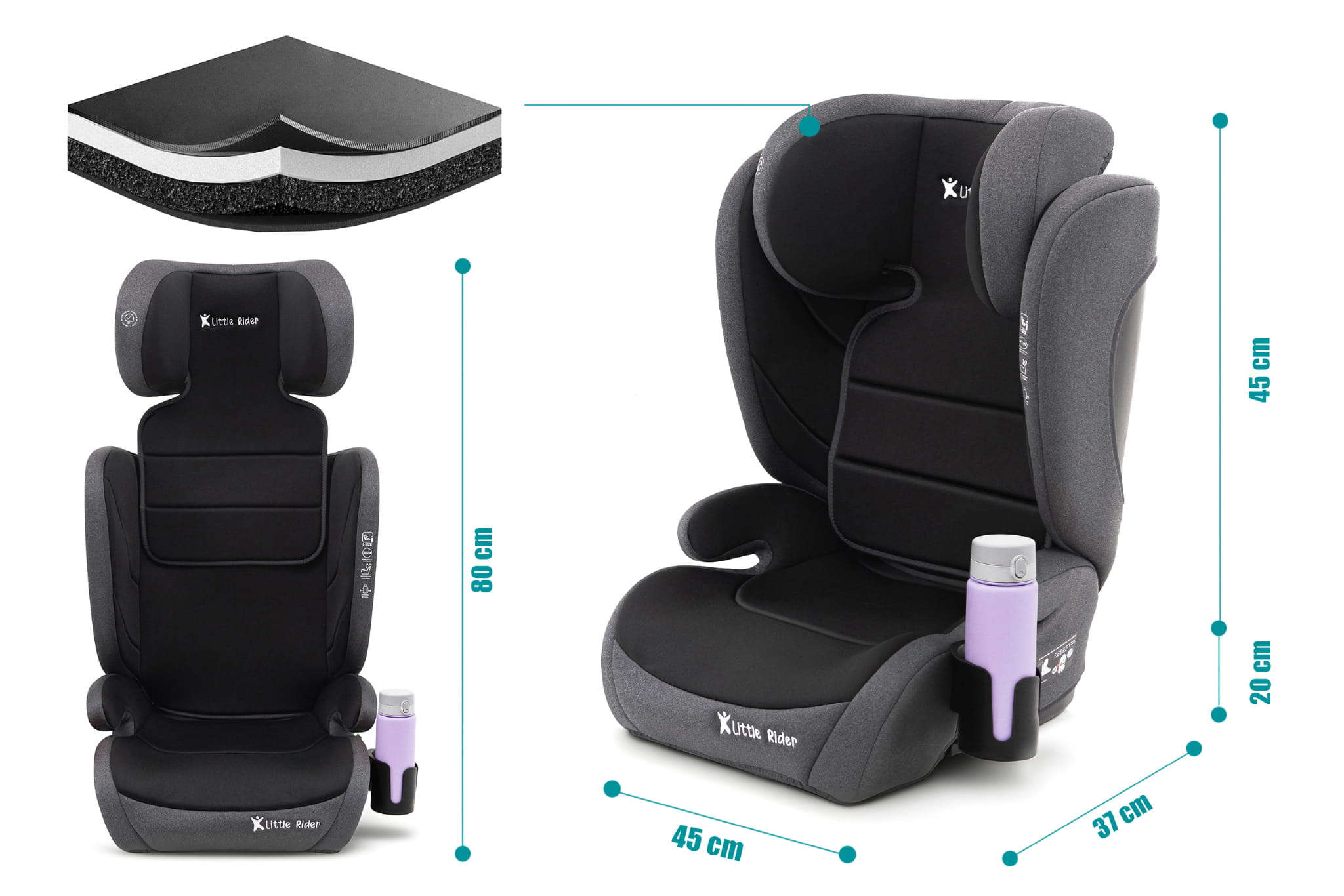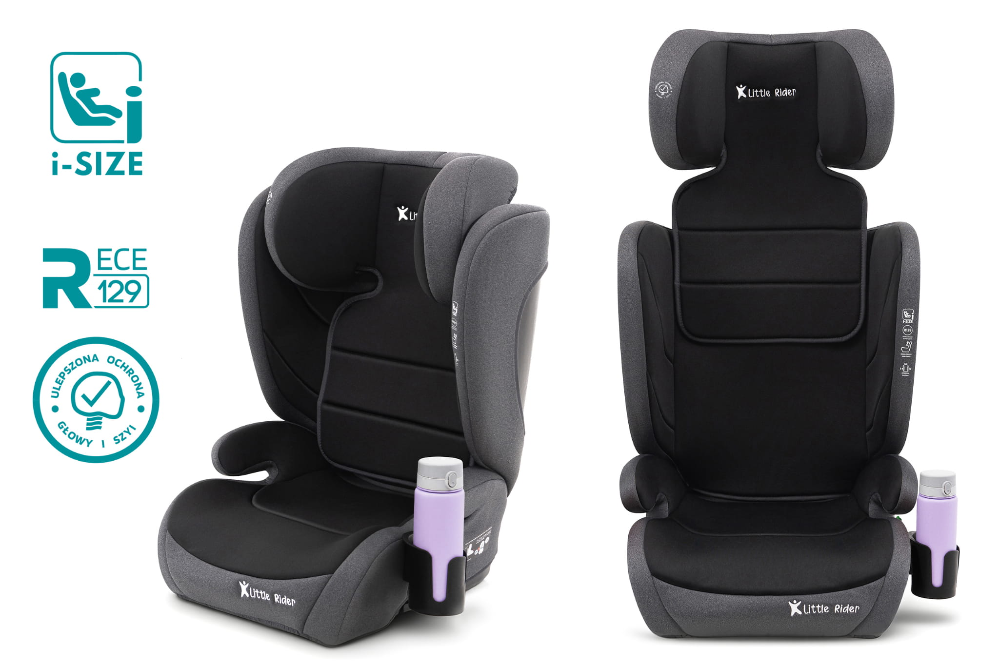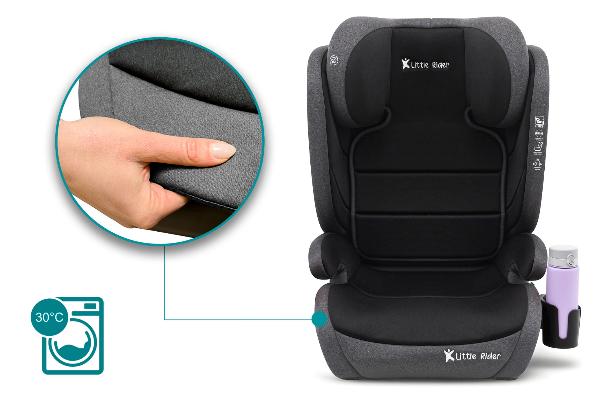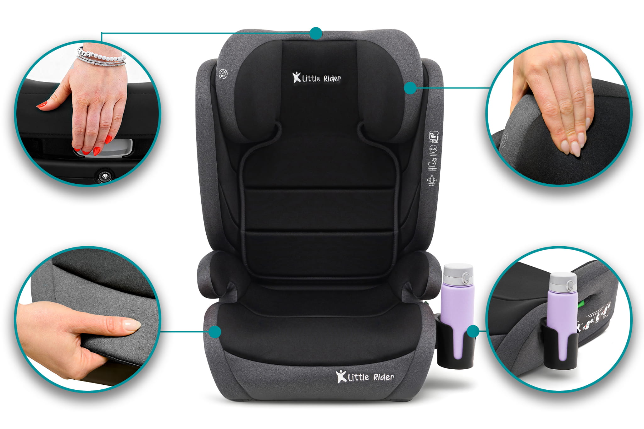 Certyfikowany fotelik samochodowy model Hugo, marki LITTLE RIDER, przeznaczony jest dla dzieci o wzroście 100-150 cm. Fotelik spełnia wymagania najnowszej homologacji ECE R129/03.