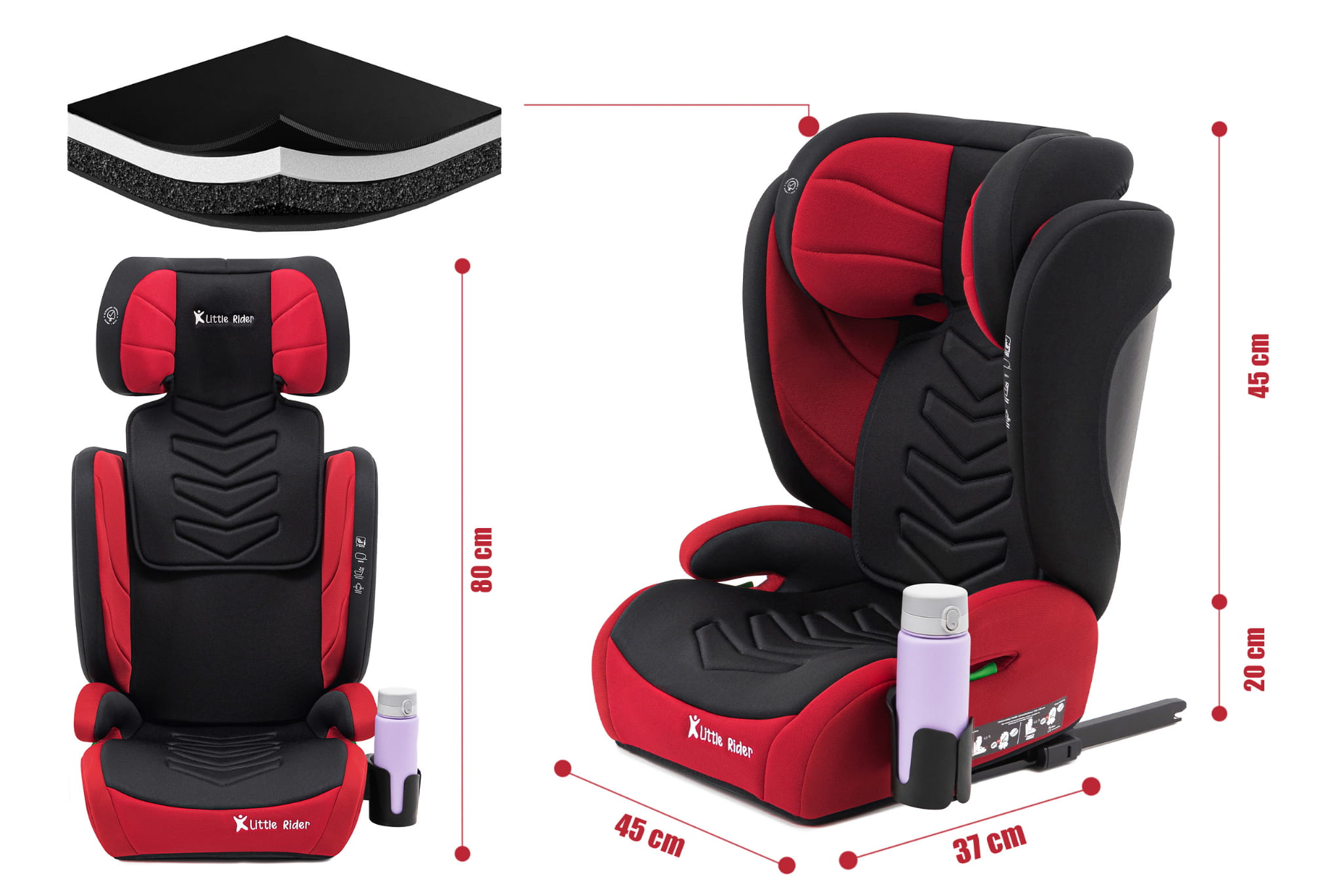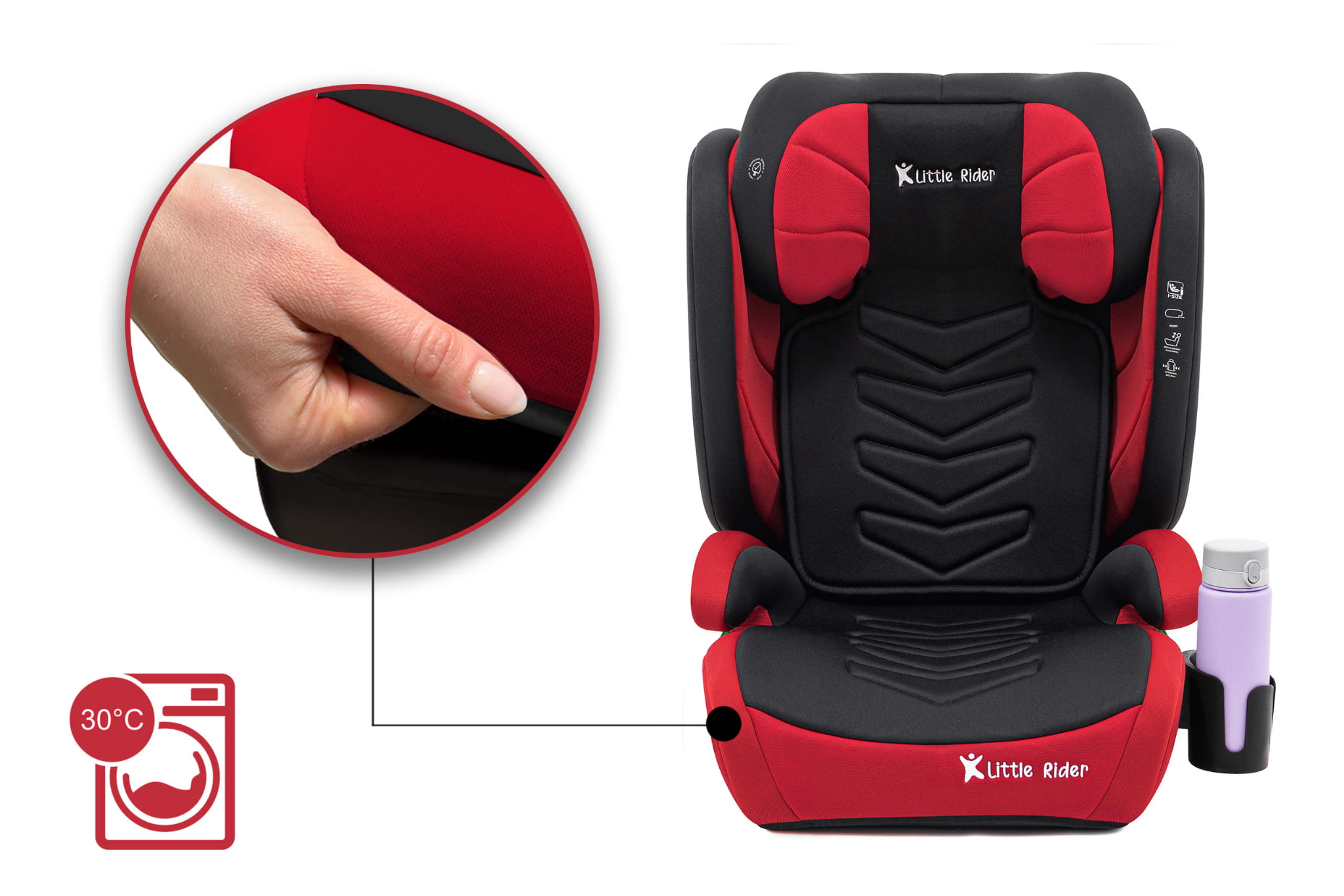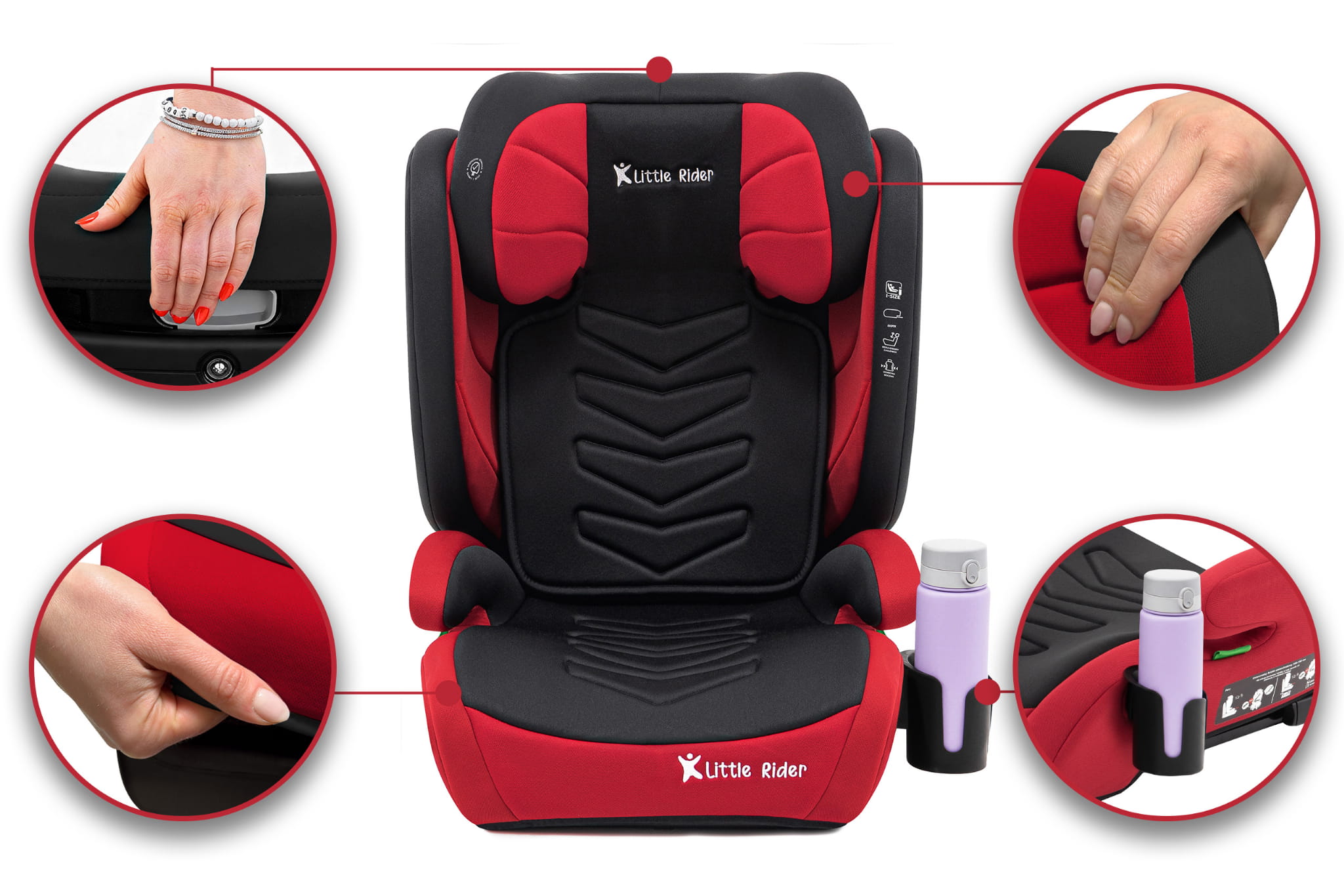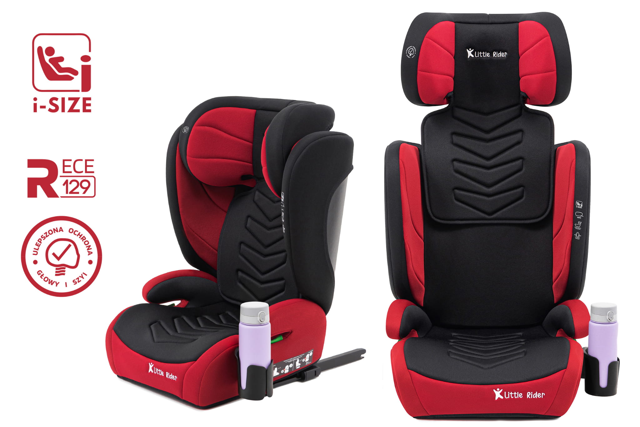 Certyfikowany fotelik samochodowy model Marco, marki LITTLE RIDER, przeznaczony jest dla dzieci o wzroście 100-150 cm. Fotelik wyposażony jest w mocowanie ISOFIX. Fotelik spełnia wymagania najnowszej homologacji ECE R129/03.