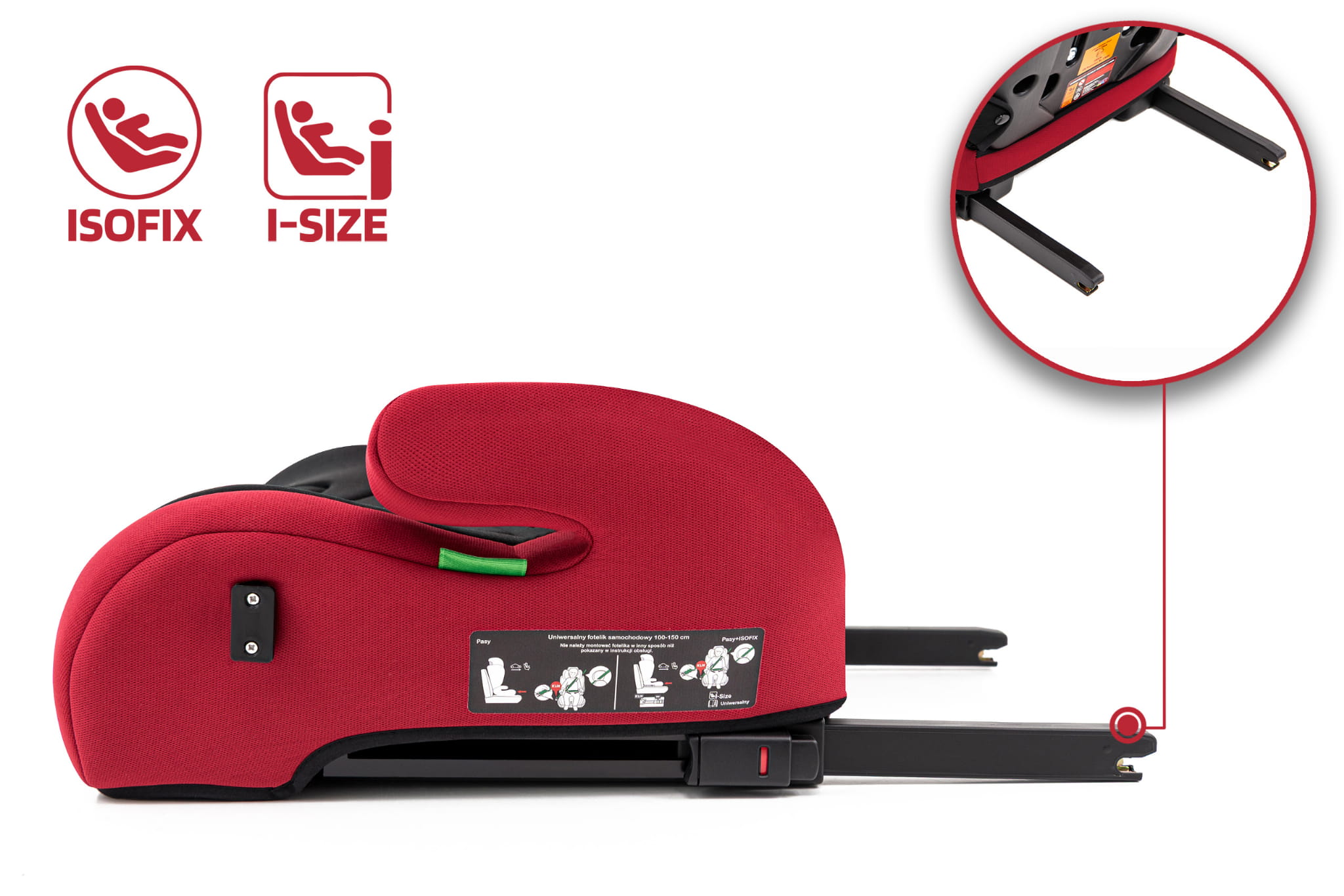 Fotelik posiada demontowaną górną część i może być użytkowany jako tzw. podstawka (od 125 cm do 150 cm) ISOFIX Fotelik wyposażony jest w mocowania ISOFIX, dzięki czemu będzie pasować do każdego samochodu wyposażonego w ten system. Z wyglądu ISOFIX przypomina metalowe uchwyty, które przytwierdzone są do nadwozia pojazdu. Znajdują się one pomiędzy oparciem, a siedziskiem kanapy. Największą zaletą systemu ISOFIX jest prostota montażu, gdyż praktycznie nie istnieje możliwość błędnego przymocowania fotelika, co często zdarza się podczas przypinania "standardowego" fotelika pasami. O tym, że zamocowaliśmy prawidłowo fotelik, powiadomią nas charakterystyczne kliknięcia. Cały proces trwa dosłownie kilka sekund. Foteliki mocowanie przy pomocy ISOFIX są dużo bardziej stabilne i nie ma ryzyka przesuwania się fotelika w trakcie jazdy.
