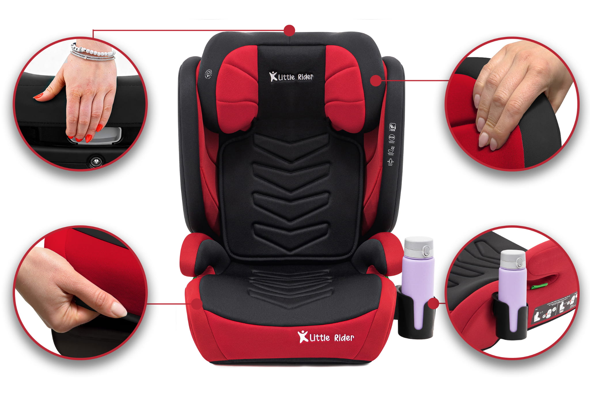 Certyfikowany fotelik samochodowy model Marco, marki LITTLE RIDER, przeznaczony jest dla dzieci o wzroście 100-150 cm. Fotelik spełnia wymagania najnowszej homologacji ECE R129/03.