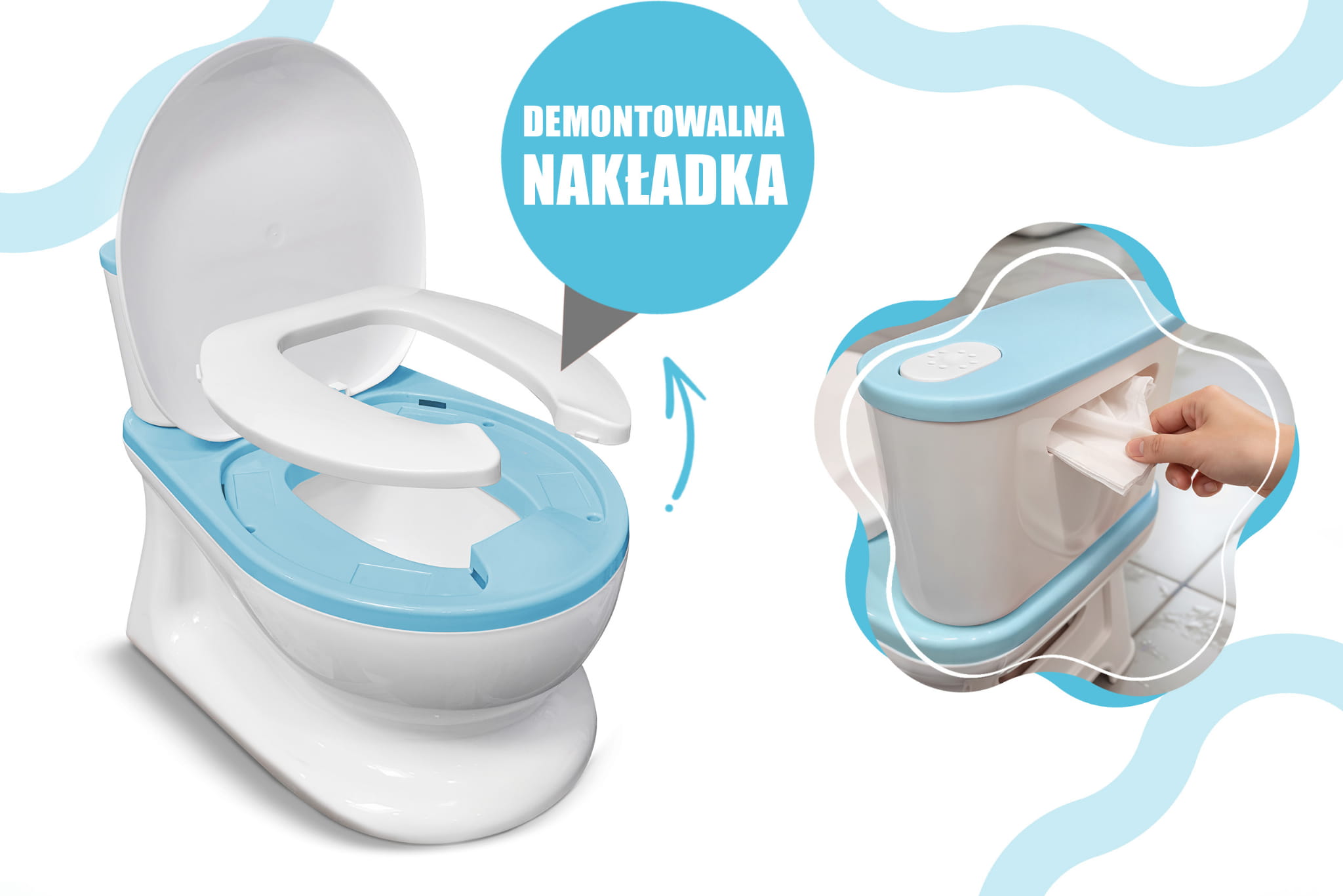 INTERAKTYWNY NOCNIK TOALETA ANTYPOŚLIZGOWA DLA DZIECI Z DŹWIĘKIEM ORSETTO NIEBIESKA