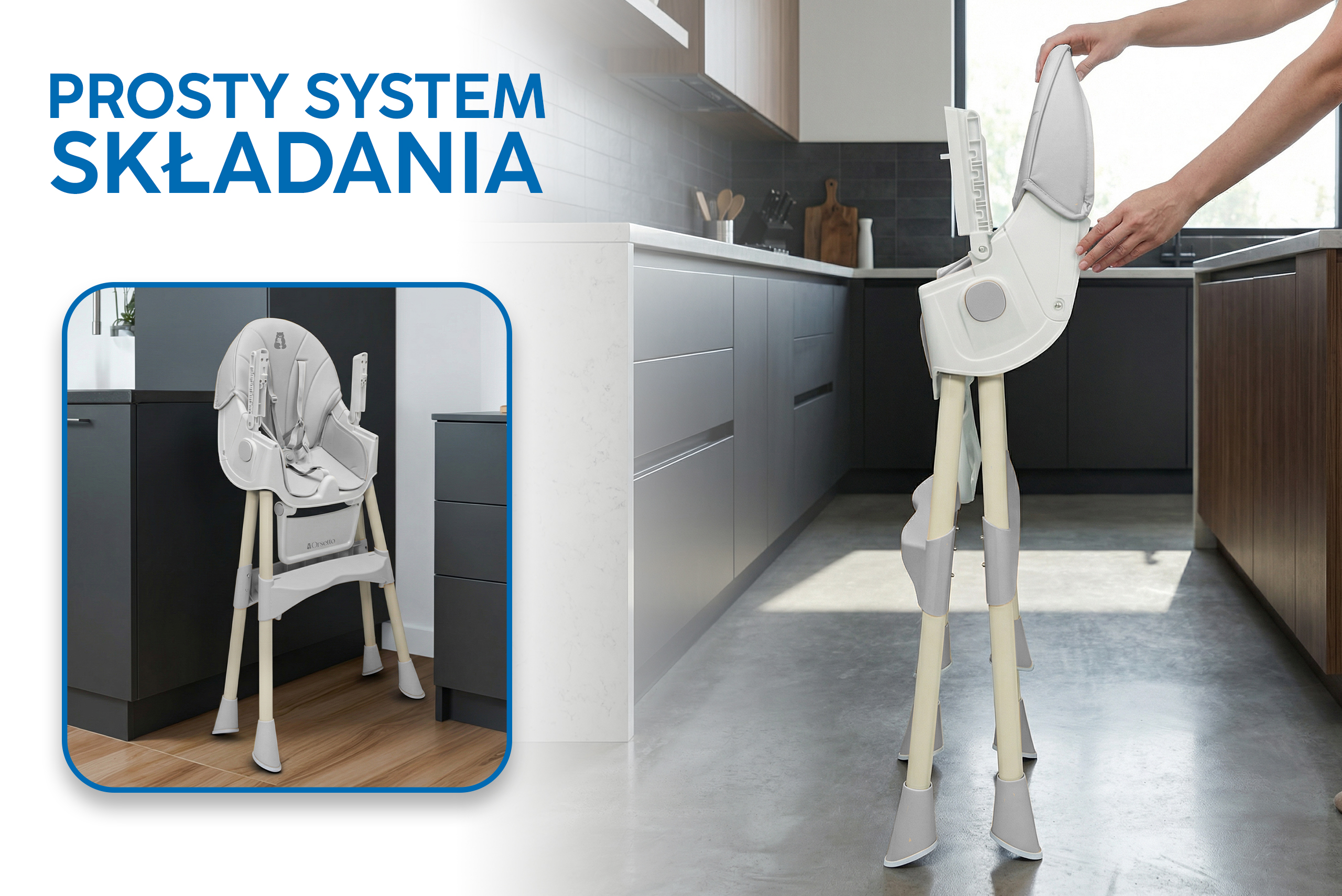 • Niskie krzesełko:kompaktowa wersja bez tacki, podnóżka i pasów, idealna jako niezależny mebel.