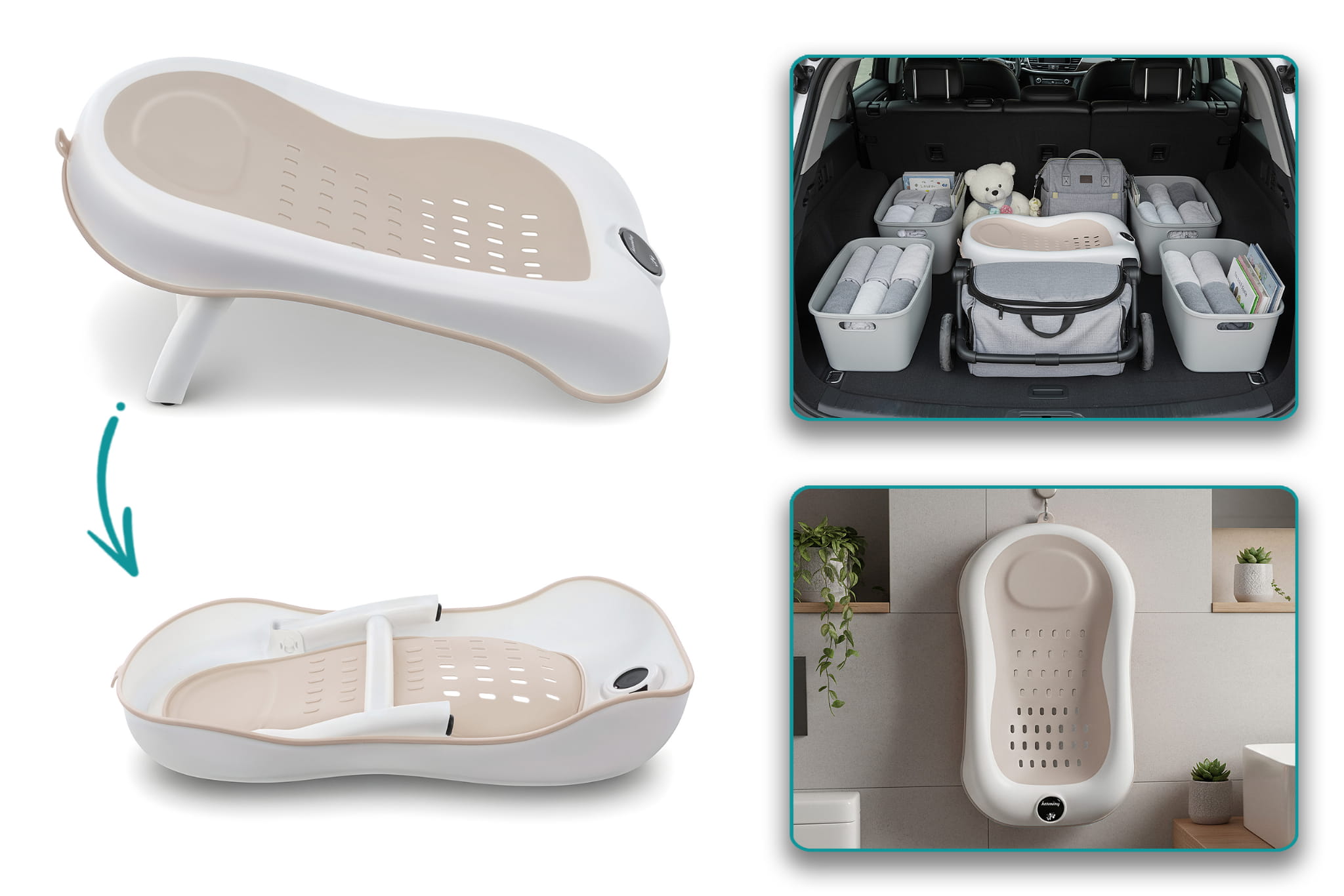 - Po zakończeniu kąpieli leżaczek można łatwo złożyć – zajmuje bardzo mało miejsca, co sprawia, że idealnie sprawdza się w małych łazienkach oraz w podróży.