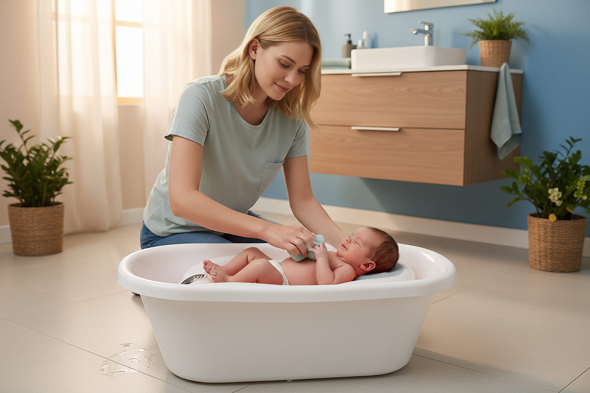 - Ergonomiczny kształt wspiera naturalną pozycję ciała niemowlęcia, zapewniając stabilność i bezpieczeństwo podczas kąpieli. Miękka silikonowa powierzchnia jest delikatna dla wrażliwej skóry dziecka, nie chłonie wody i szybko wysycha po użyciu..