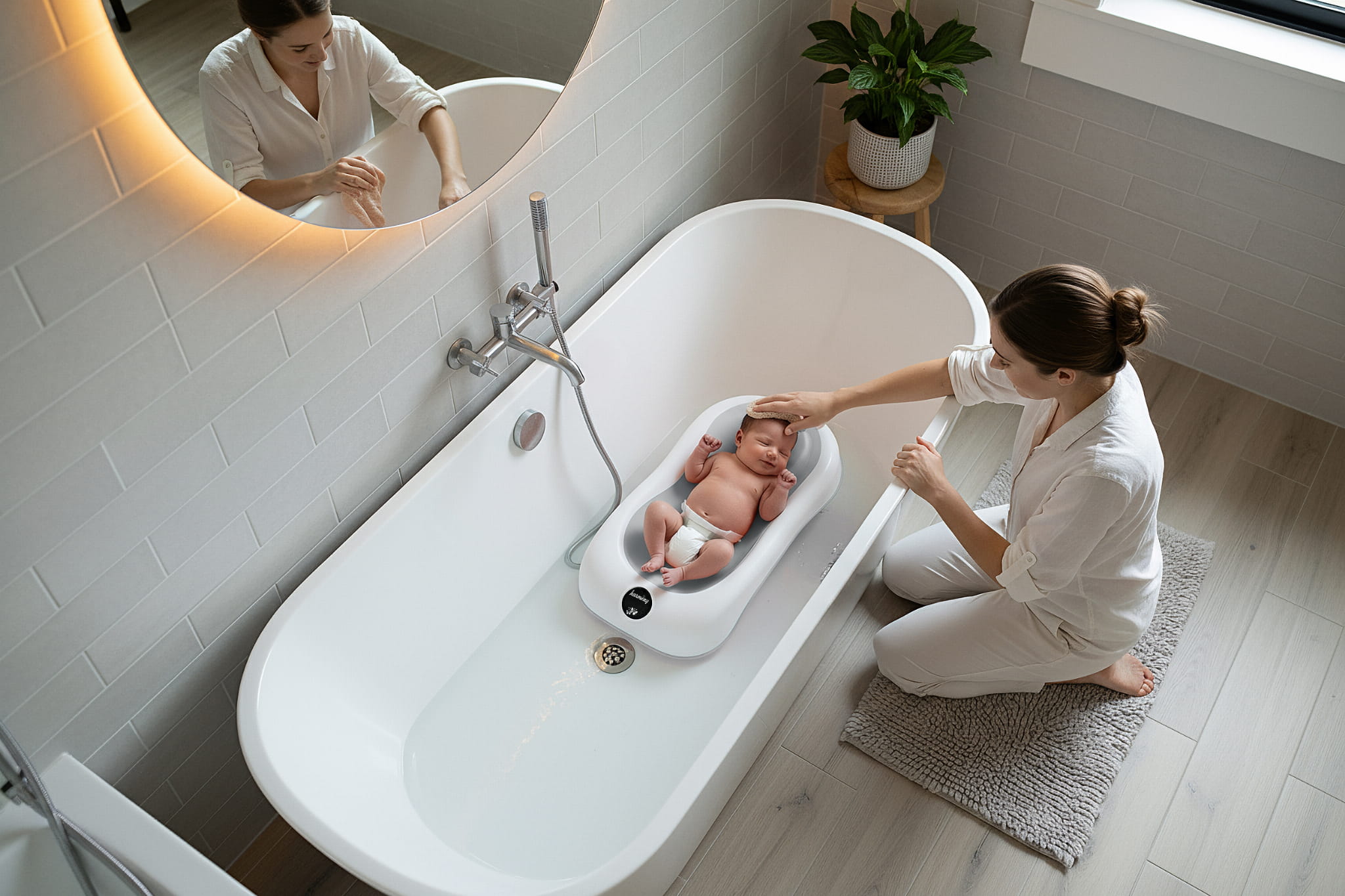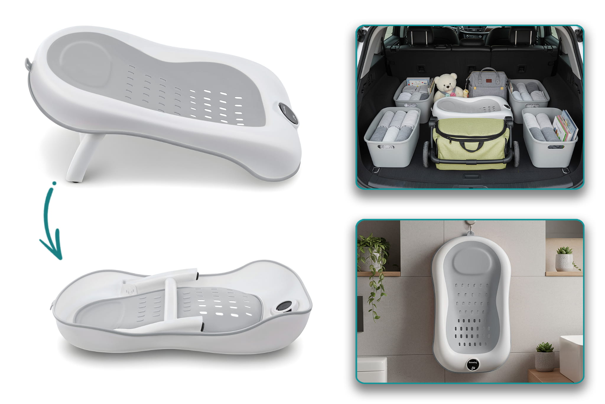 - Po zakończeniu kąpieli leżaczek można łatwo złożyć – zajmuje bardzo mało miejsca, co sprawia, że idealnie sprawdza się w małych łazienkach oraz w podróży.