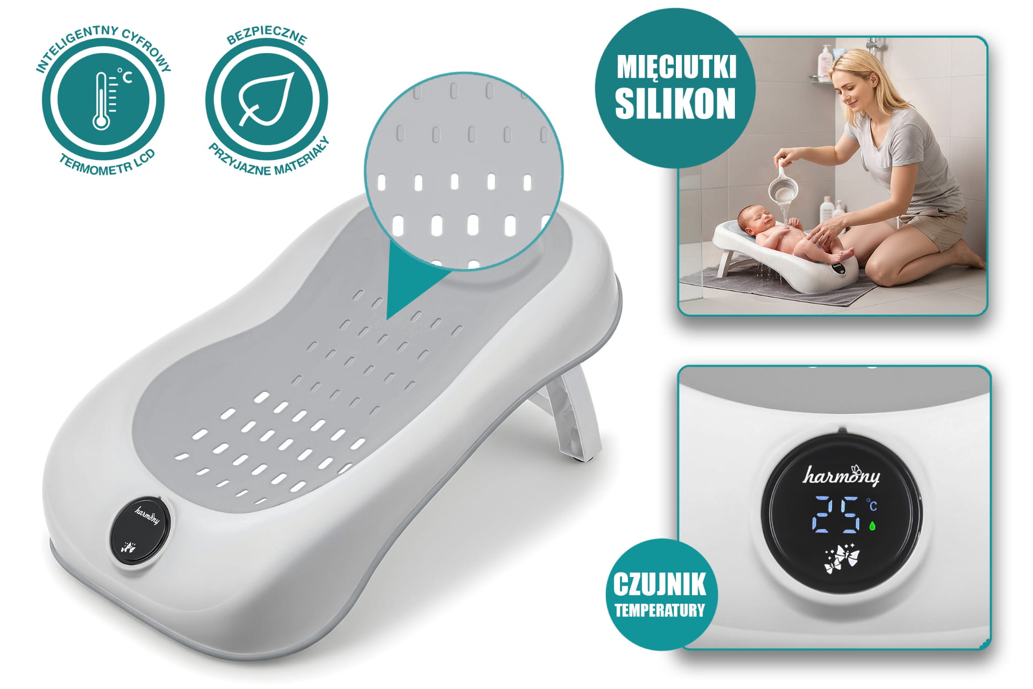 Leżaczek HARMONY to idealne rozwiązanie dla rodziców, którzy chcą zapewnić swojemu maluszkowi wygodę i bezpieczeństwo podczas kąpieli. Zaprojektowany z myślą o najmłodszych, sprawia, że każda kąpiel staje się łatwiejsza i przyjemniejsza – zarówno dla dziecka, jak i opiekuna.