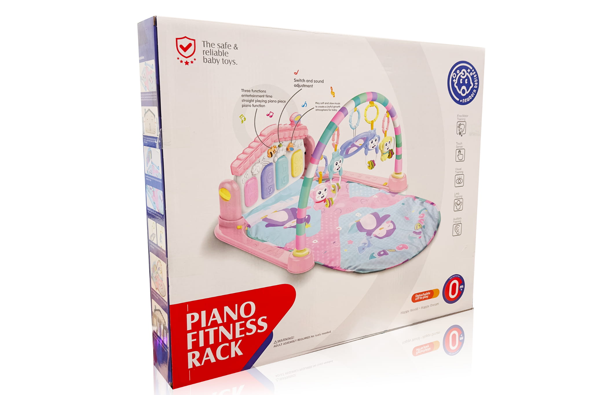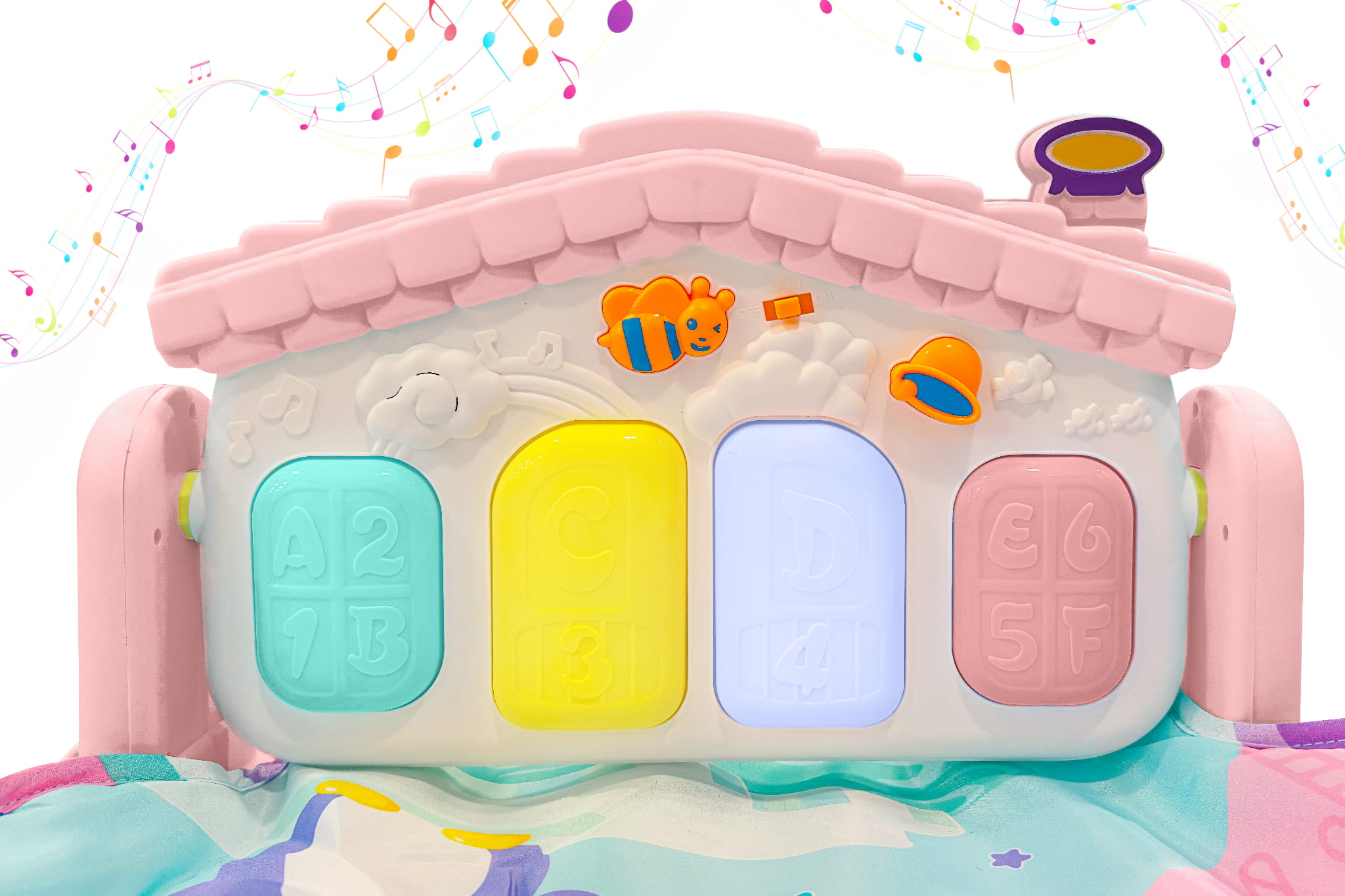 - Trzy różne tryby dźwiękowe, obejmujące dźwięki pianina, krótkie dźwięki oraz unikalne melodie, zachęcają dziecko do interakcji i eksploracji.