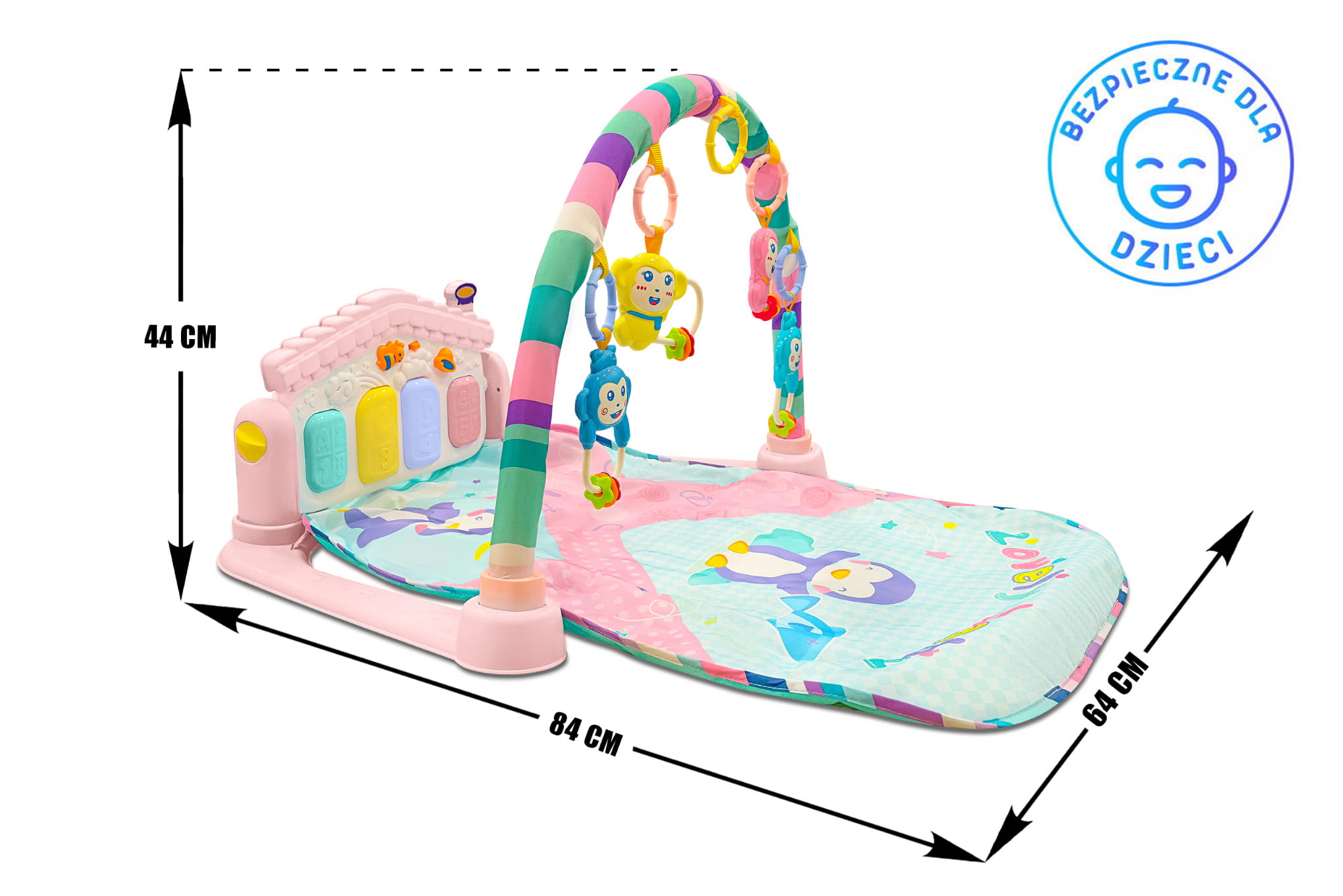 Oferujemy matę interaktywną, która nie tylko dostarcza niekończącej się zabawy, ale także wspomaga rozwój zmysłów i wzmacnia mięśnie Twojego dziecka od pierwszych dni życia. Mata wprowadza maluszka w świat kształtów i kolorów, dbając o rozwój koordynacji ruchowej oraz zdolności przestrzennych. Nasza fantastyczna mata "rośnie" razem z maluchem, oferując interaktywną platformę, która rozwija umiejętności fizyczne i motoryczne.