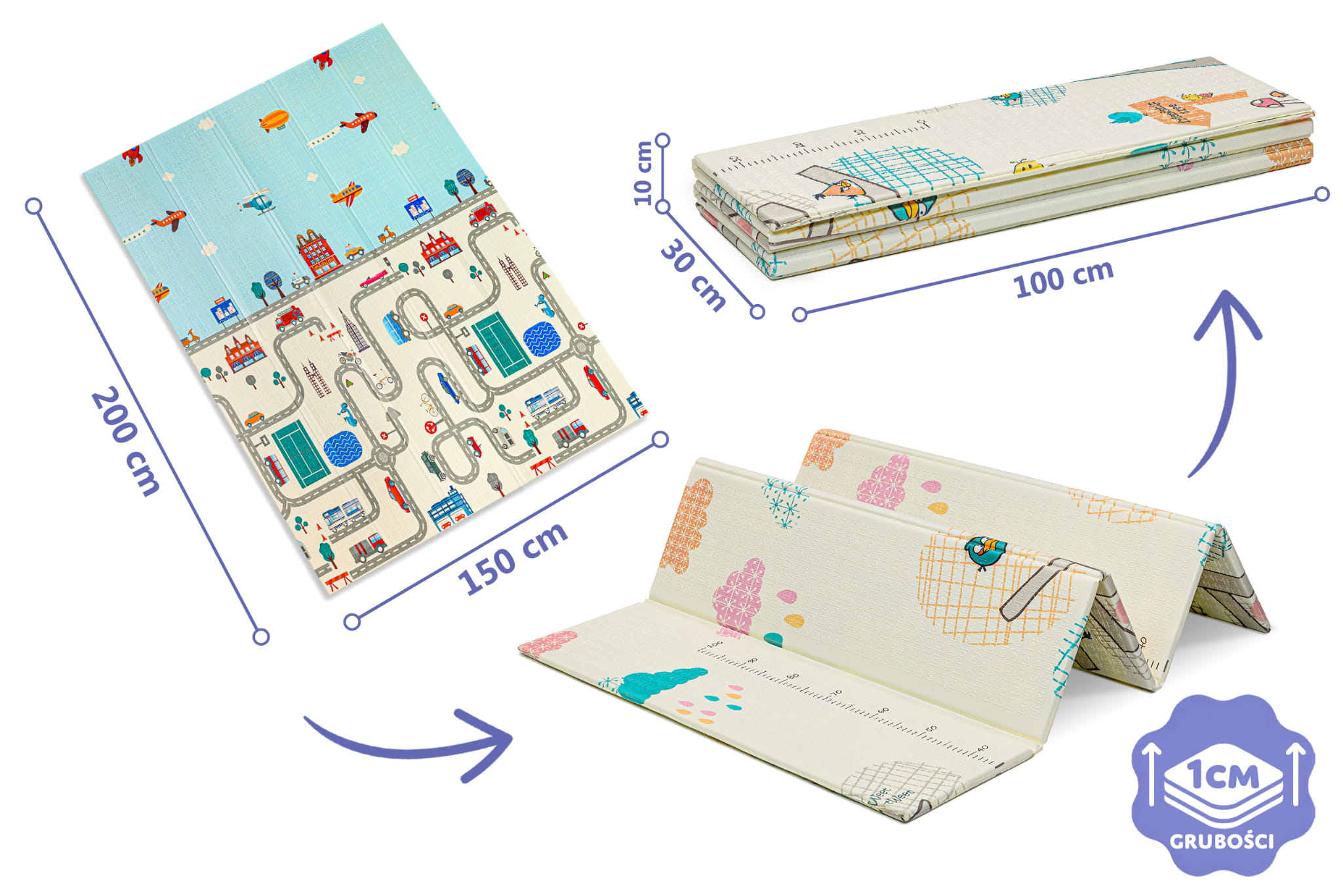Certyfikowana piankowa mata edukacyjna, składana, o wymiarze 150x200 cm. Mata idealna dla dzieci od pierwszych dni życia!