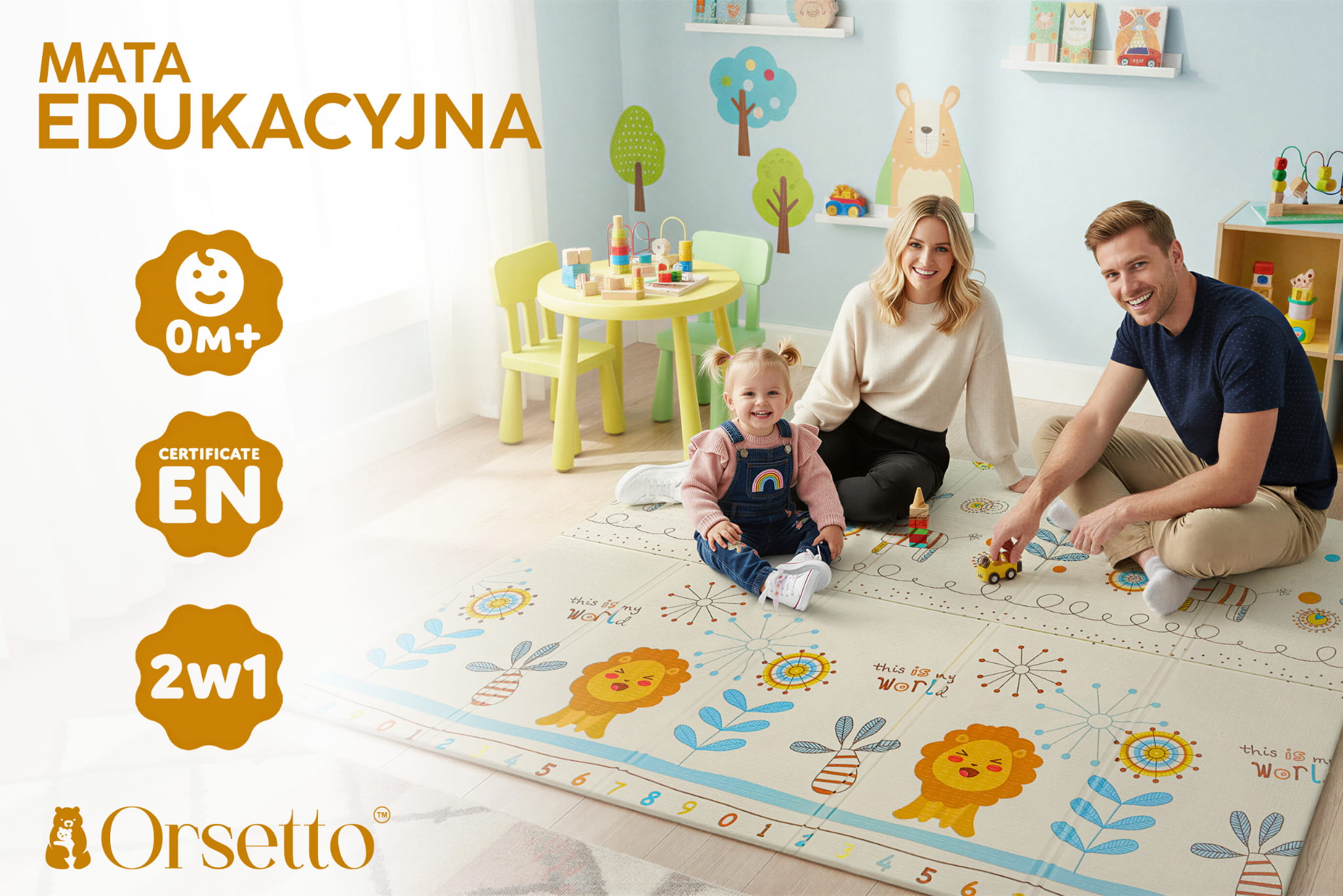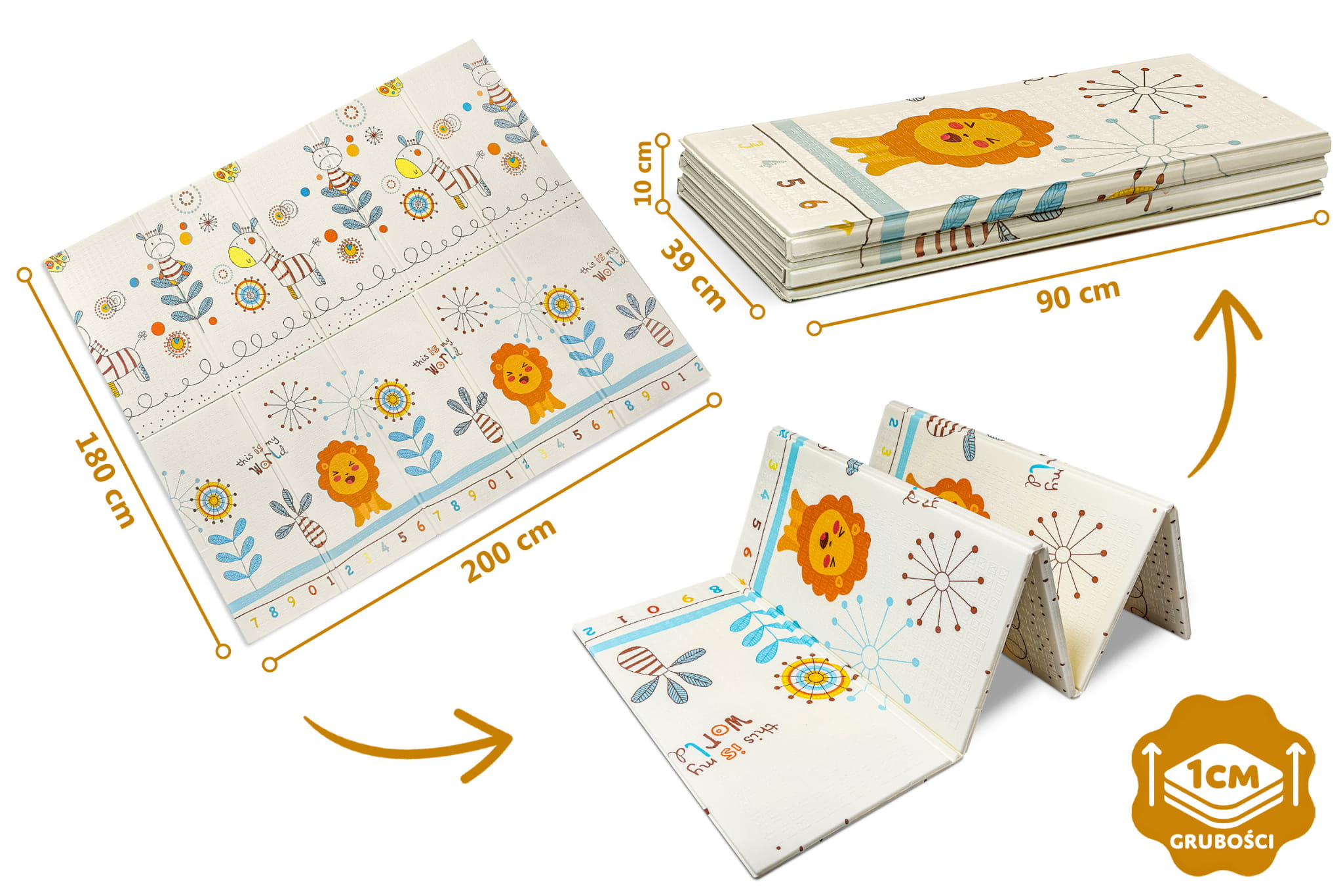 Certyfikowana piankowa mata edukacyjna, składana XXL, o wymiarze 180x200 cm. Mata idealna dla dzieci od pierwszych dni życia!
