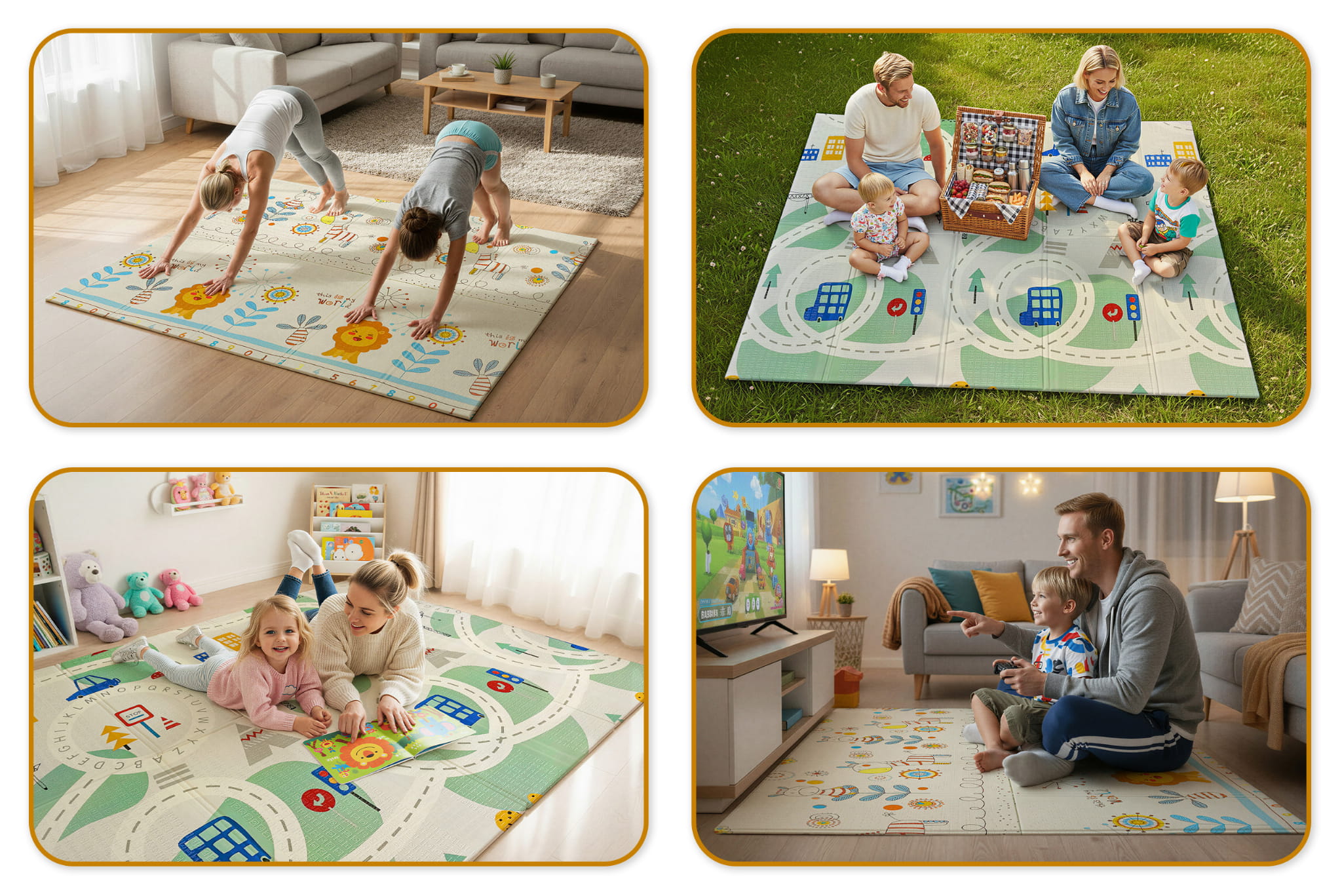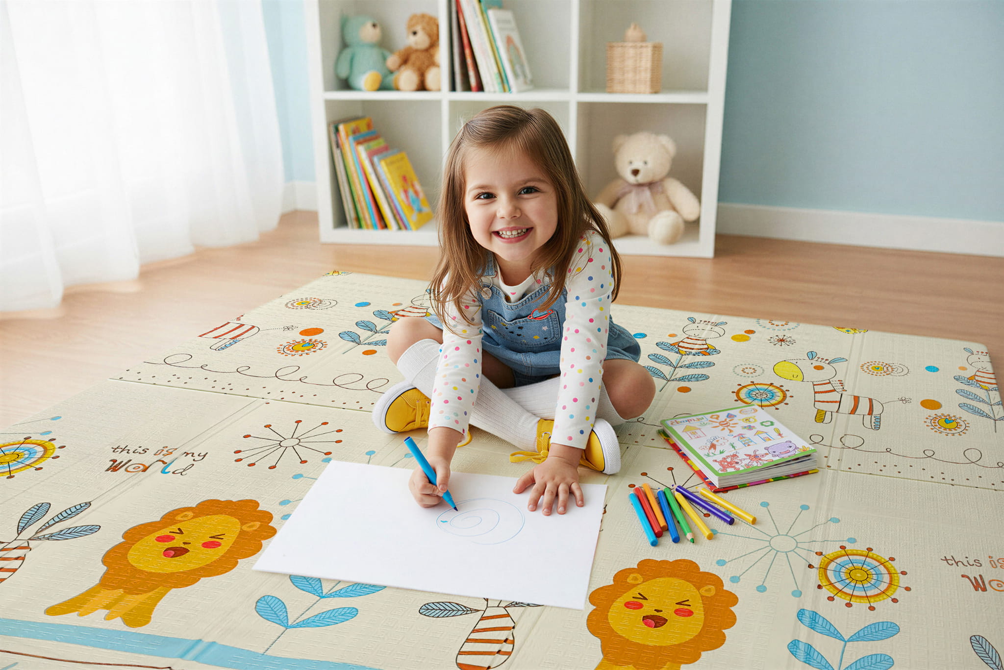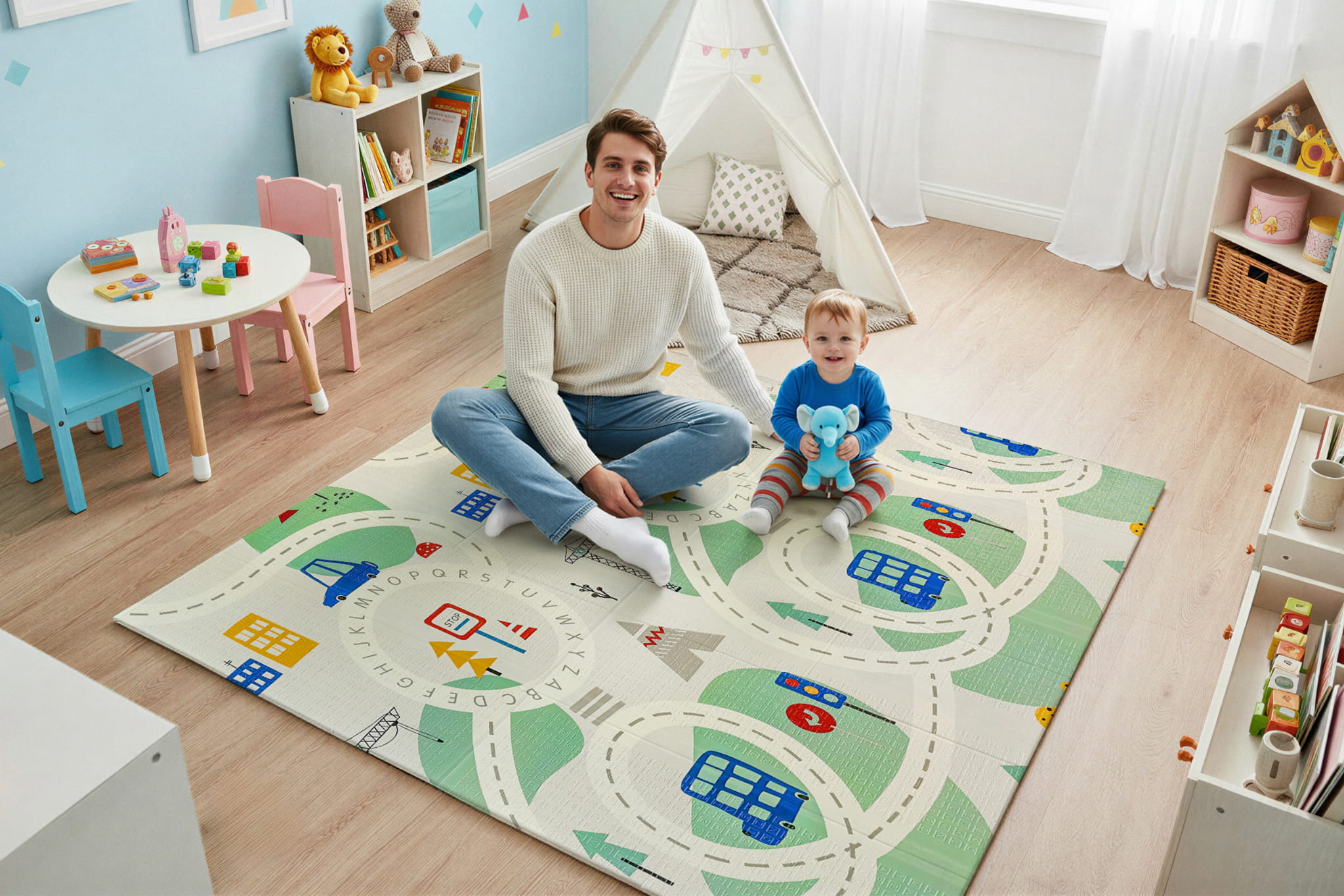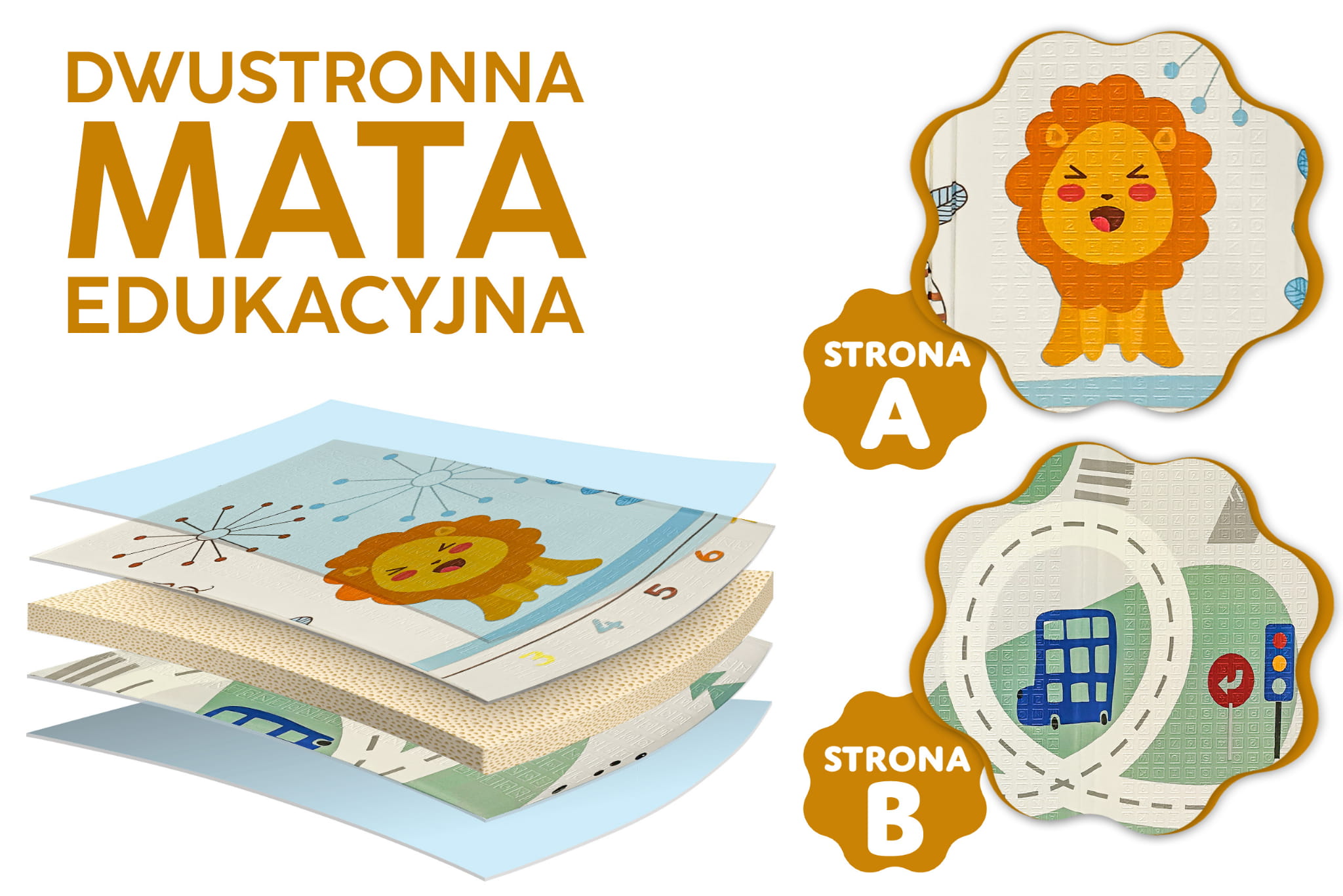 Mata dwustronna została stworzona z myślą o dzieciach w różnym wieku, aby wspierać ich rozwój na każdym etapie. Z jednej strony znajduje się delikatny wzór, idealny dla najmłodszych dzieci.