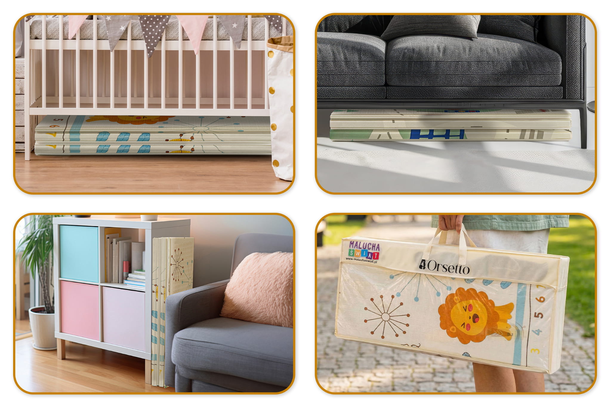 Druga strona, z bardziej zaawansowanym wzorem, sprzyja rozwijaniu zdolności motorycznych, idealna dla starszych dzieci, takich jak przedszkolaki. Kompaktowy rozmiar - błyskawicznie składana mata! Mata może być wielokrotnie składana, a dzięki specjalnym wytłoczeniom nie uszkodzi się.