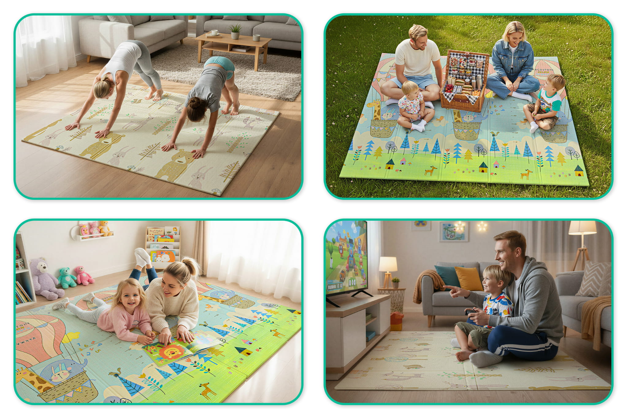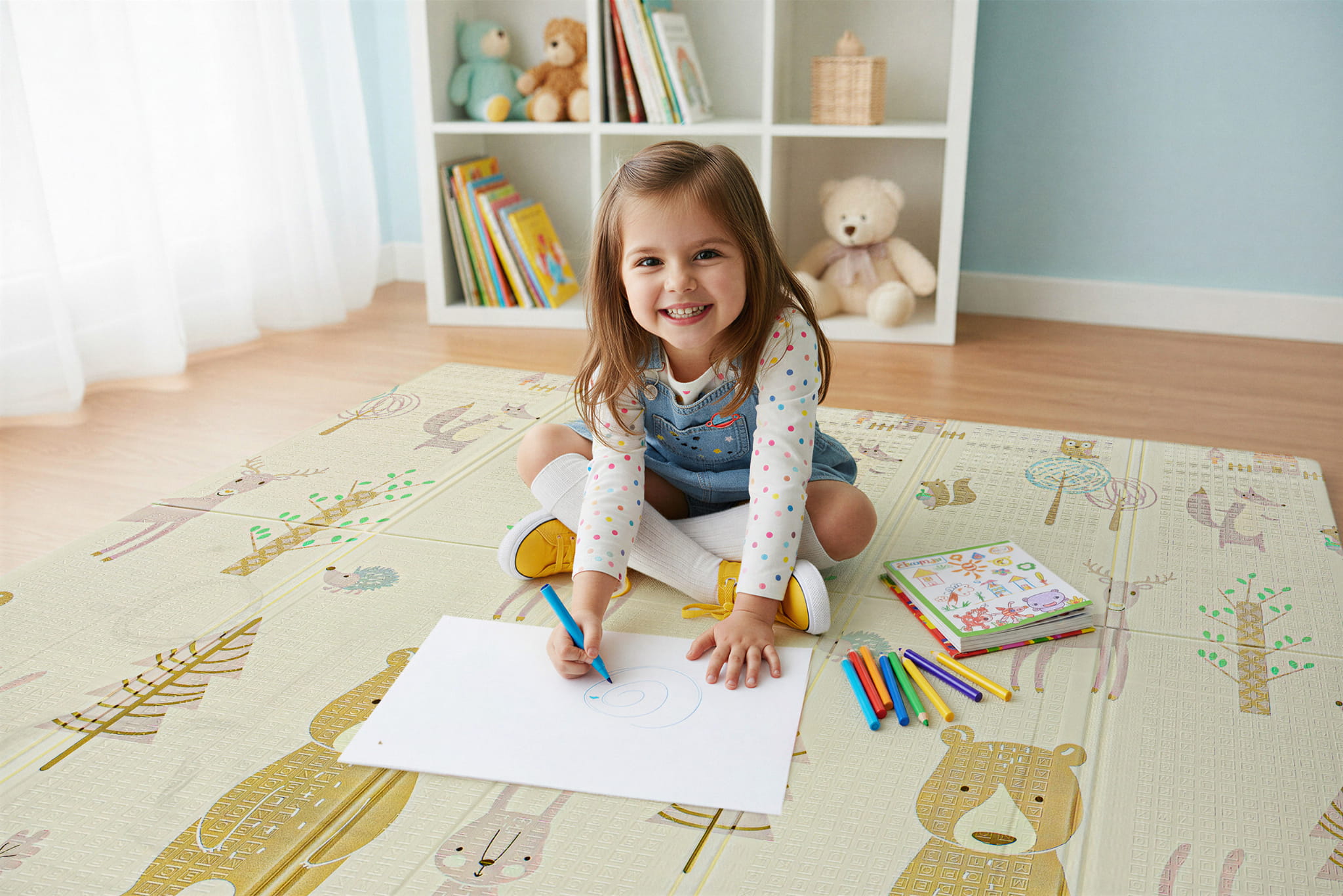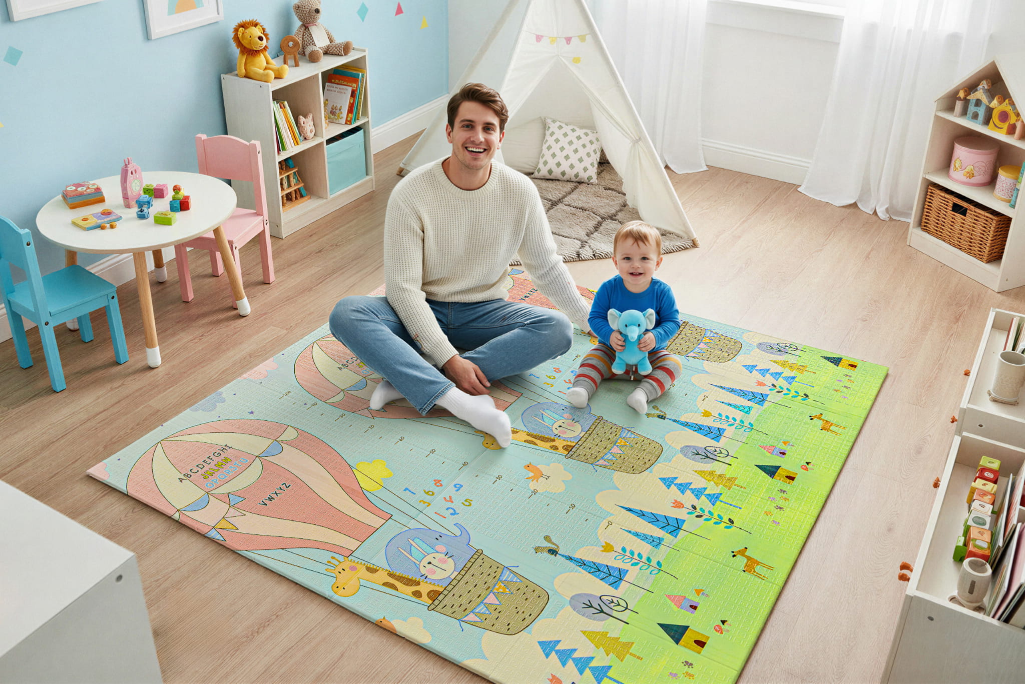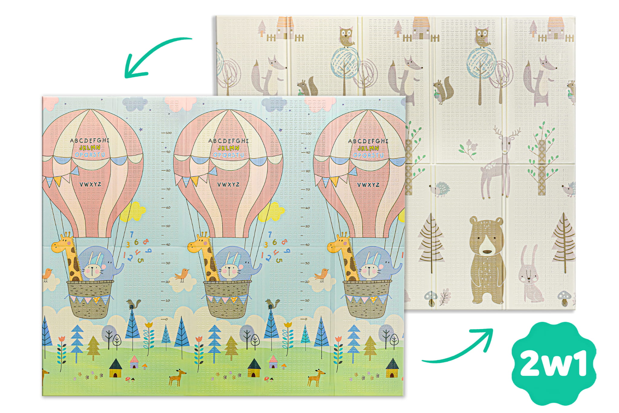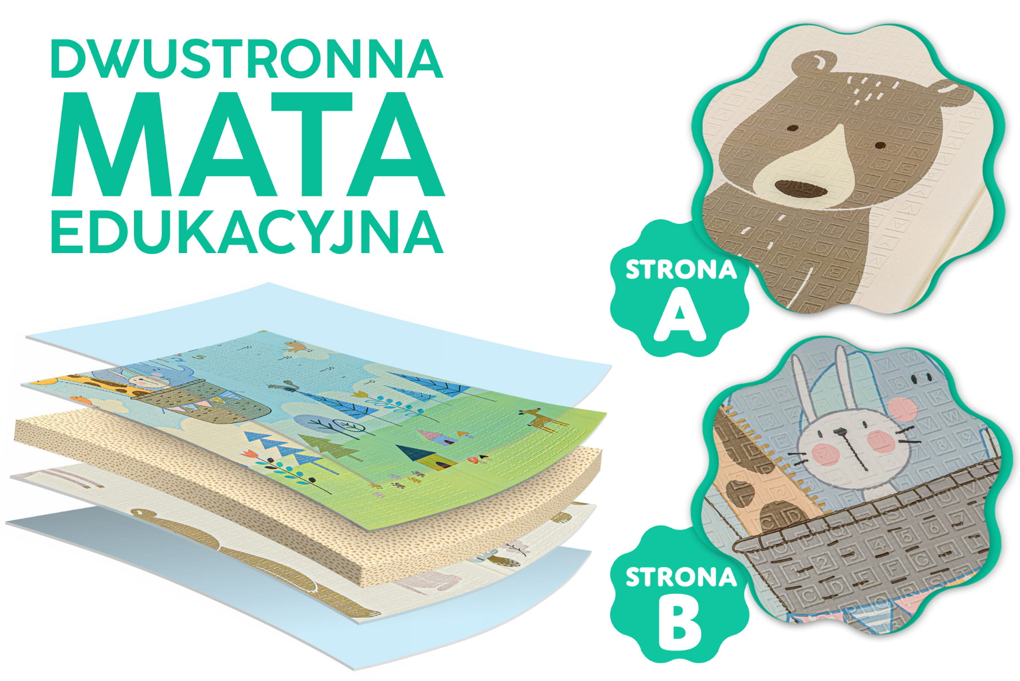 Mata dwustronna została stworzona z myślą o dzieciach w różnym wieku, aby wspierać ich rozwój na każdym etapie. Z jednej strony znajduje się delikatny wzór, idealny dla najmłodszych dzieci.
