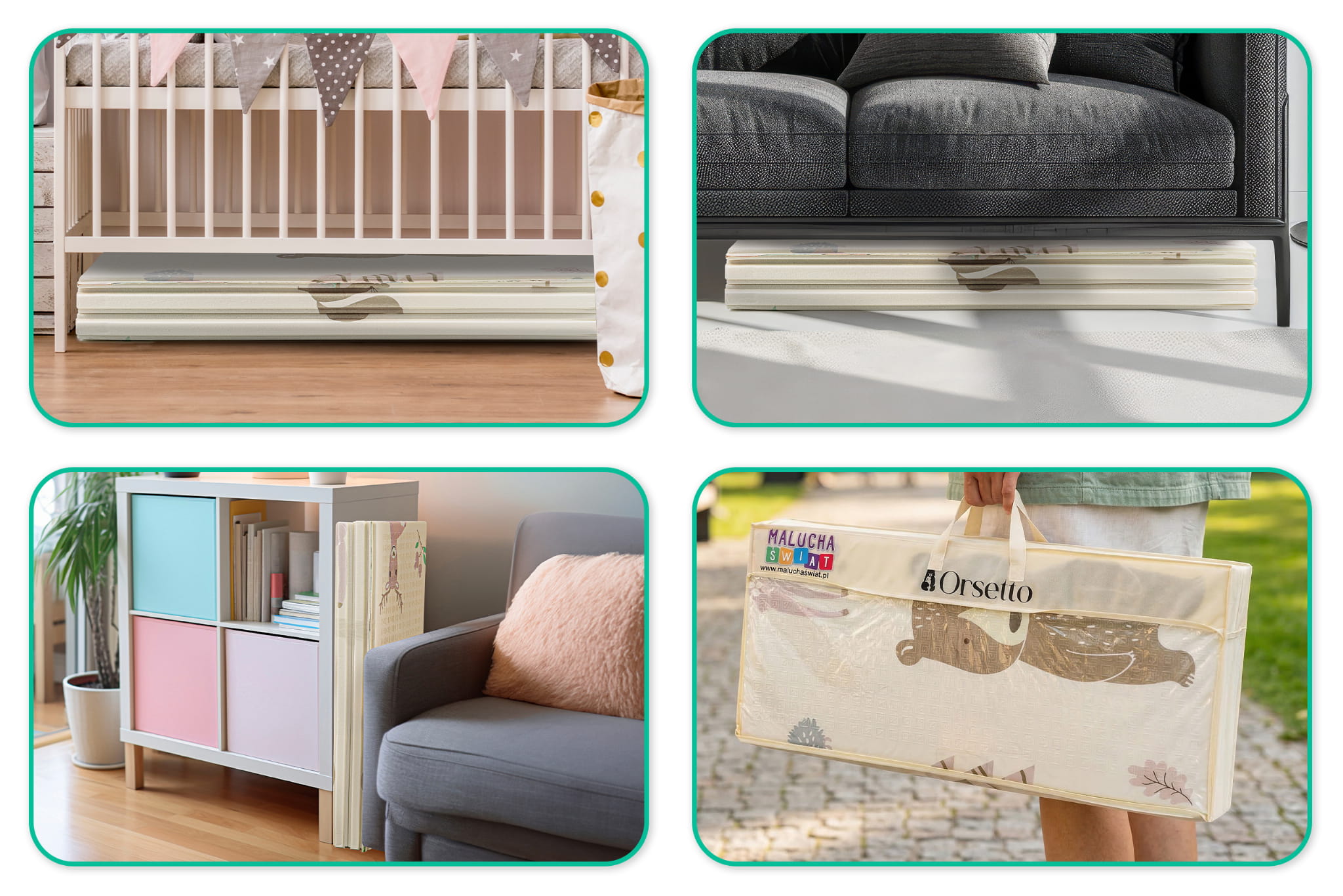 Druga strona, z bardziej zaawansowanym wzorem, sprzyja rozwijaniu zdolności motorycznych, idealna dla starszych dzieci, takich jak przedszkolaki. Kompaktowy rozmiar - błyskawicznie składana mata! Mata może być wielokrotnie składana, a dzięki specjalnym wytłoczeniom nie uszkodzi się.