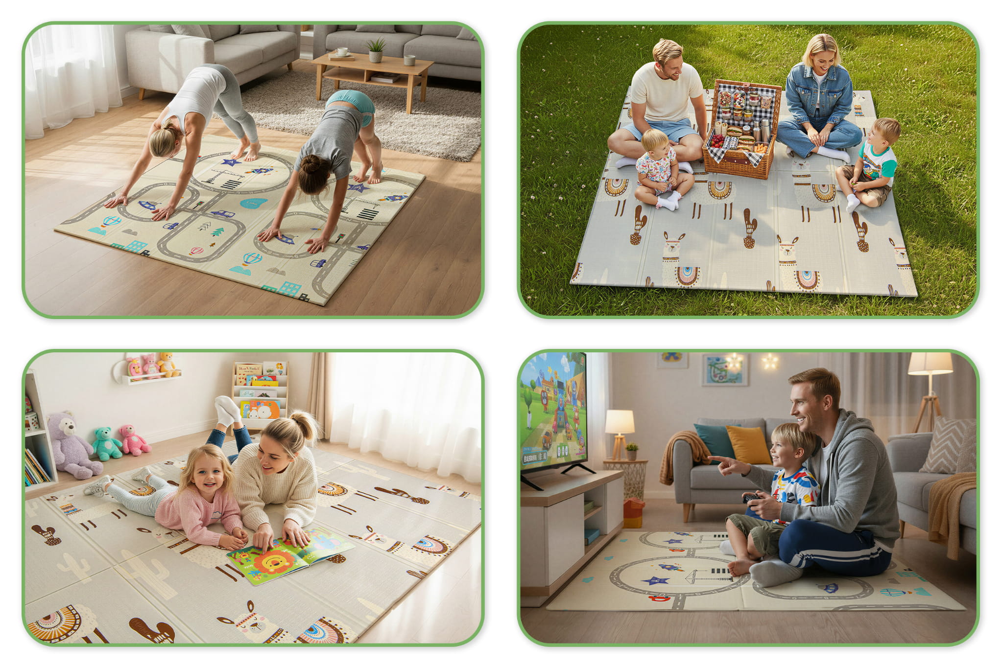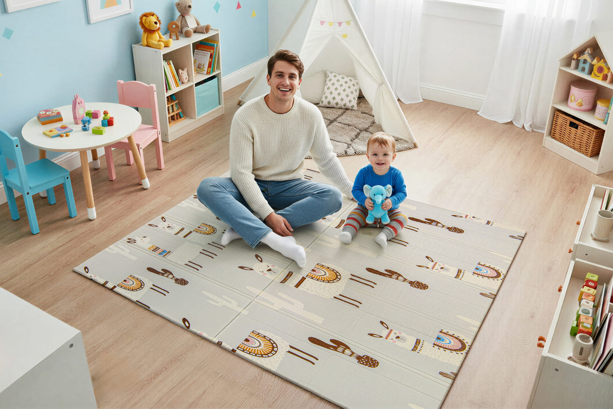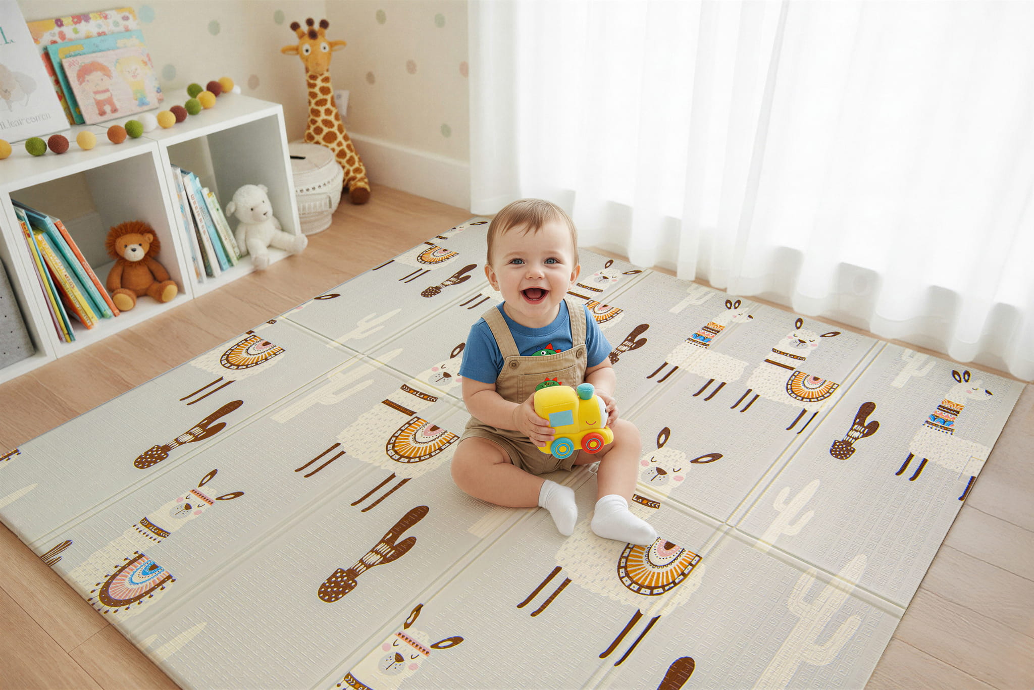 MATA PIANKOWA EDUKACYJNA SKŁADANA DLA DZIECI LAMY DROGA 150x200 CM