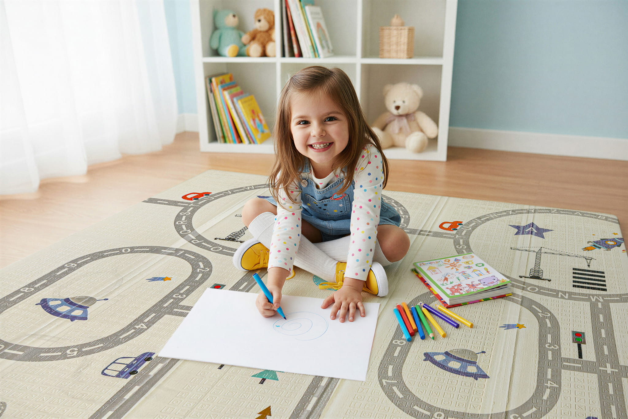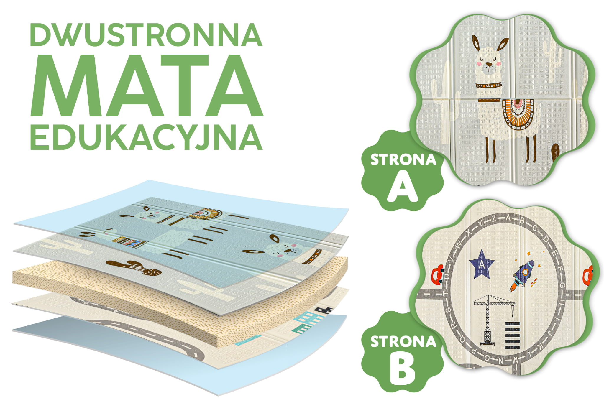 Mata dwustronna została stworzona z myślą o dzieciach w różnym wieku, aby wspierać ich rozwój na każdym etapie. Z jednej strony znajduje się delikatny wzór, idealny dla najmłodszych dzieci.