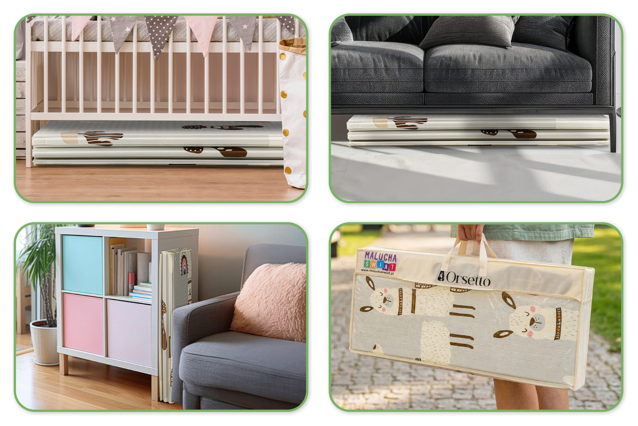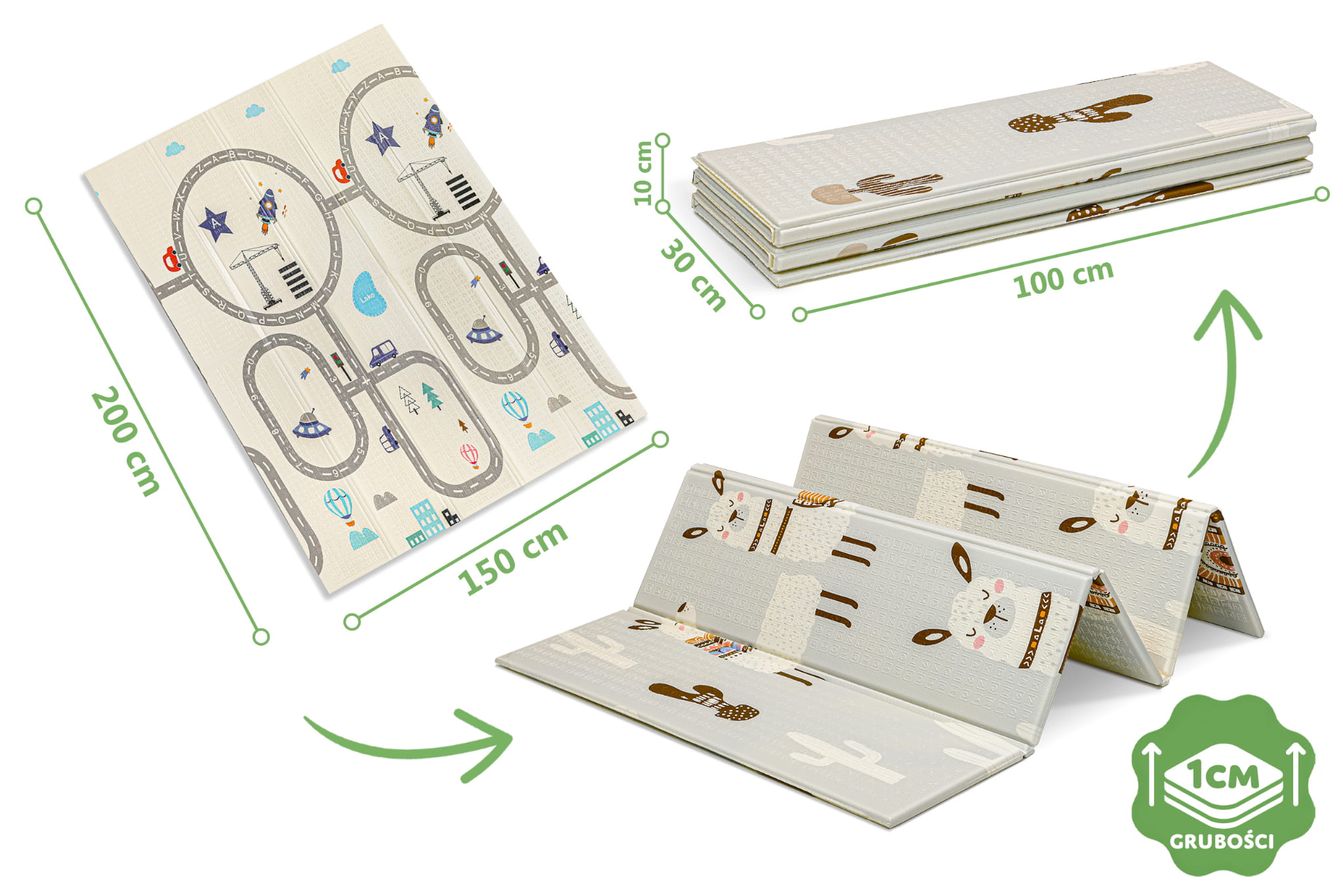 Druga strona, z bardziej zaawansowanym wzorem, sprzyja rozwijaniu zdolności motorycznych, idealna dla starszych dzieci, takich jak przedszkolaki. Kompaktowy rozmiar - błyskawicznie składana mata! Mata może być wielokrotnie składana, a dzięki specjalnym wytłoczeniom nie uszkodzi się.
