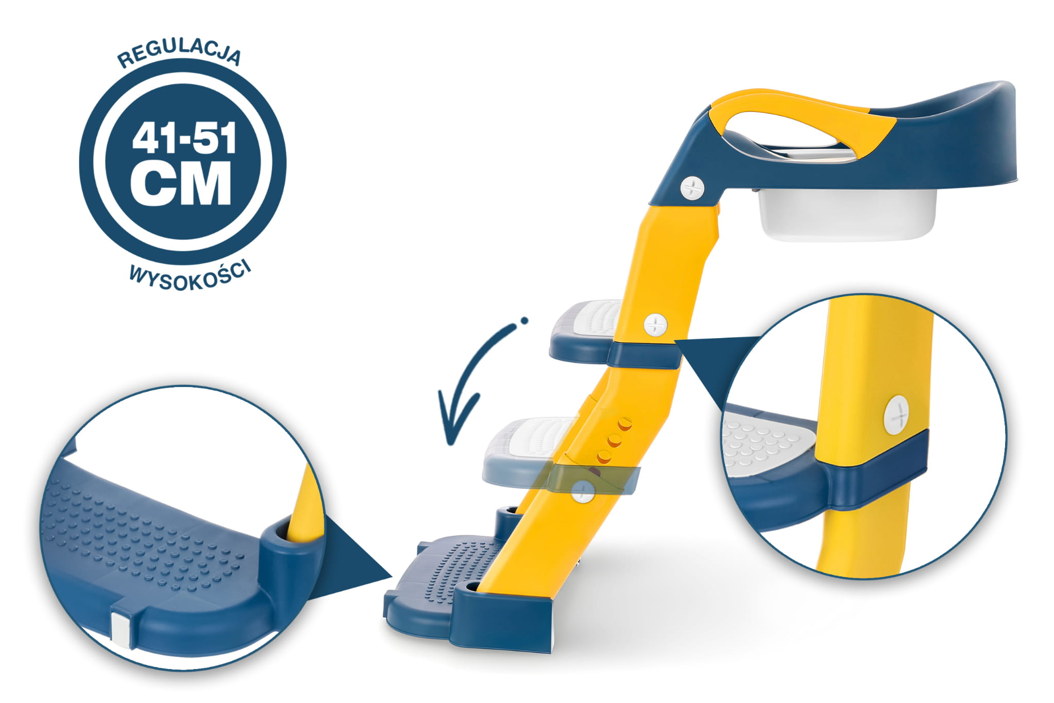 BEZPIECZEŃSTWO I STABILNOŚĆ Nakładka została wyposażona w antypoślizgowe nóżki oraz solidną drabinkę, które zapewniają stabilność przy wchodzeniu i schodzeniu. Dzięki temu dziecko może czuć się pewnie i komfortowo, a rodzice nie muszą martwić się o jego bezpieczeństwo. ERGONOMICZNY DESIGN I ŁATWOŚĆ UŻYCIA