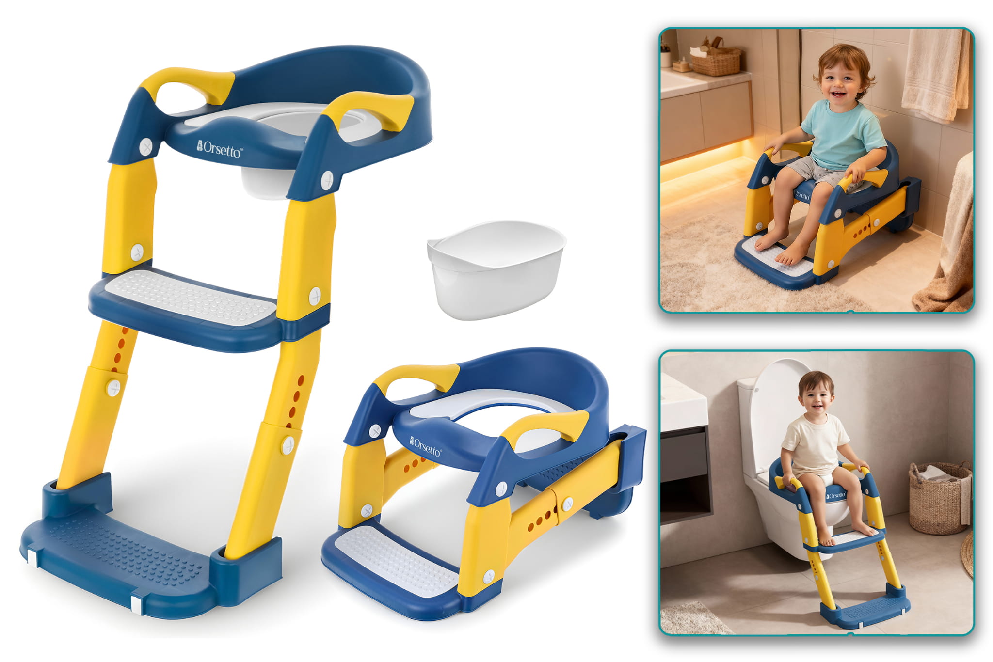 Nakładka sedesowa z drabinką 3w1 ORSETTO to praktyczne i wielofunkcyjne rozwiązanie, które wspiera dziecko w nauce samodzielnego korzystania z toalety. Dzięki przemyślanej konstrukcji i solidnemu wykonaniu, produkt łączy w sobie funkcjonalność, bezpieczeństwo i wygodę – a jednocześnie daje maluchowi poczucie samodzielności i zabawy. Nakładka sedesowa z drabinką sprawia, że proces odpieluchowania staje się łatwiejszy, przyjemniejszy i bardziej naturalny. To niezastąpiona pomoc dla rodziców i świetna motywacja dla dziecka, by krok po kroku uczyć się samodzielności. 3 funkcje w 1 produkcie:
