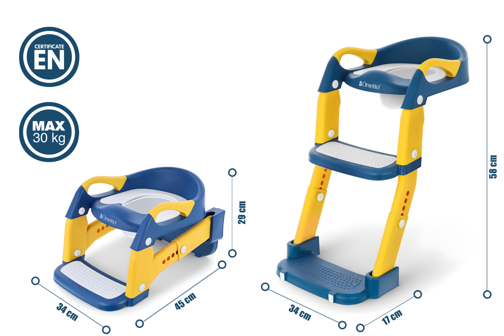 NAKŁADKA NA SEDES Z DRABINKĄ NOCNIK DLA DZIECI 3w1 ORSETTO NIEBIESKI