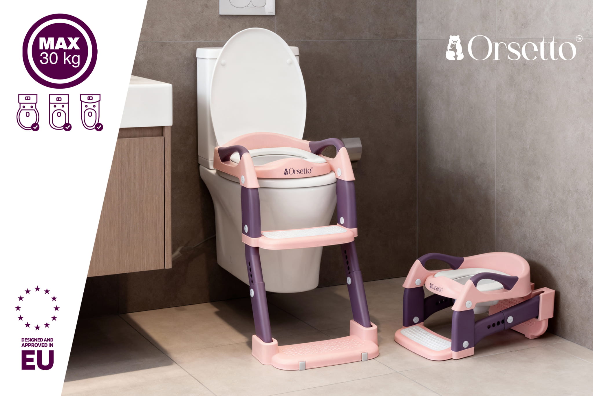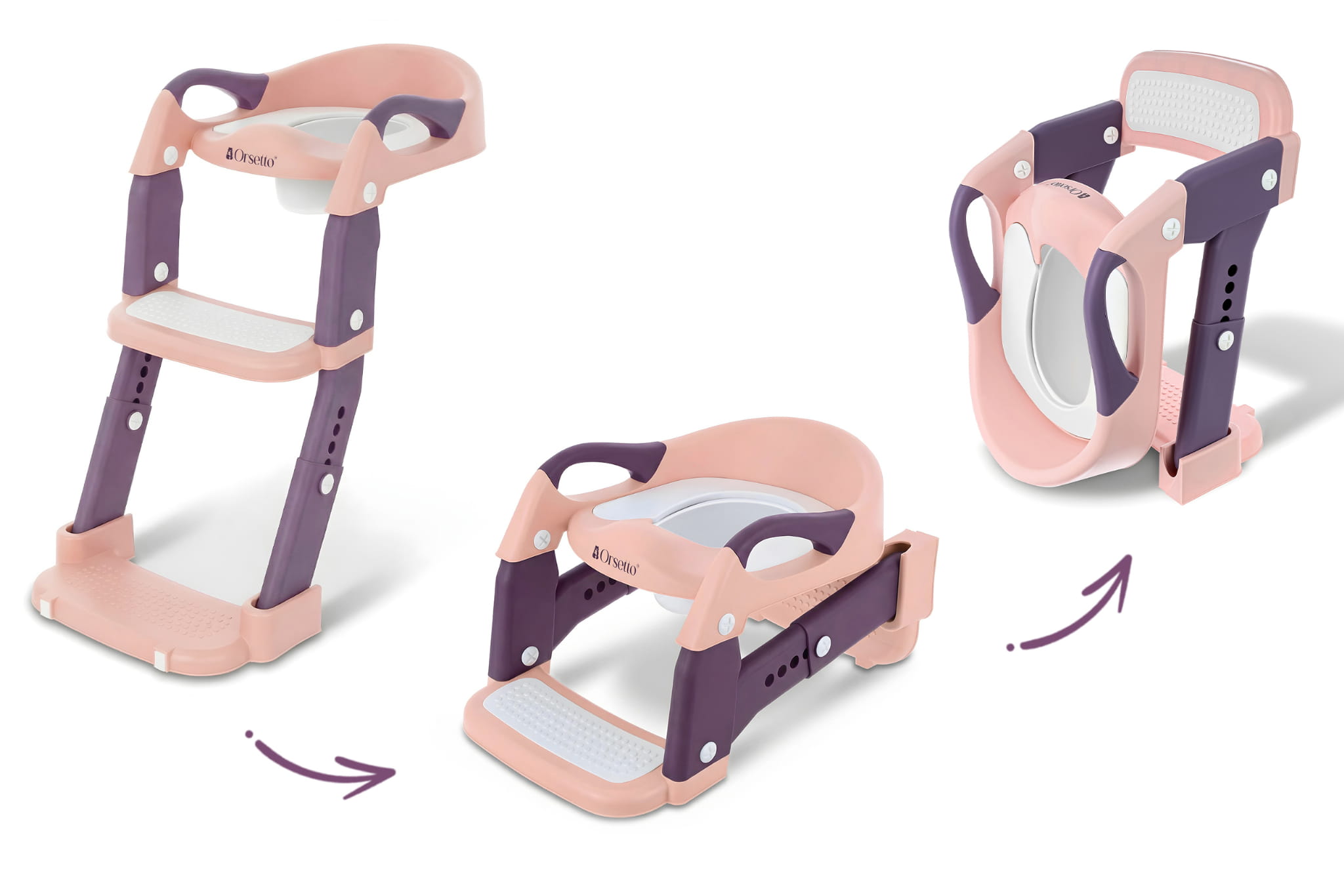Nakładka sedesowa z drabinką 3w1 ORSETTO to praktyczne i wielofunkcyjne rozwiązanie, które wspiera dziecko w nauce samodzielnego korzystania z toalety. Dzięki przemyślanej konstrukcji i solidnemu wykonaniu, produkt łączy w sobie funkcjonalność, bezpieczeństwo i wygodę – a jednocześnie daje maluchowi poczucie samodzielności i zabawy. Nakładka sedesowa z drabinką sprawia, że proces odpieluchowania staje się łatwiejszy, przyjemniejszy i bardziej naturalny. To niezastąpiona pomoc dla rodziców i świetna motywacja dla dziecka, by krok po kroku uczyć się samodzielności. 3 funkcje w 1 produkcie: