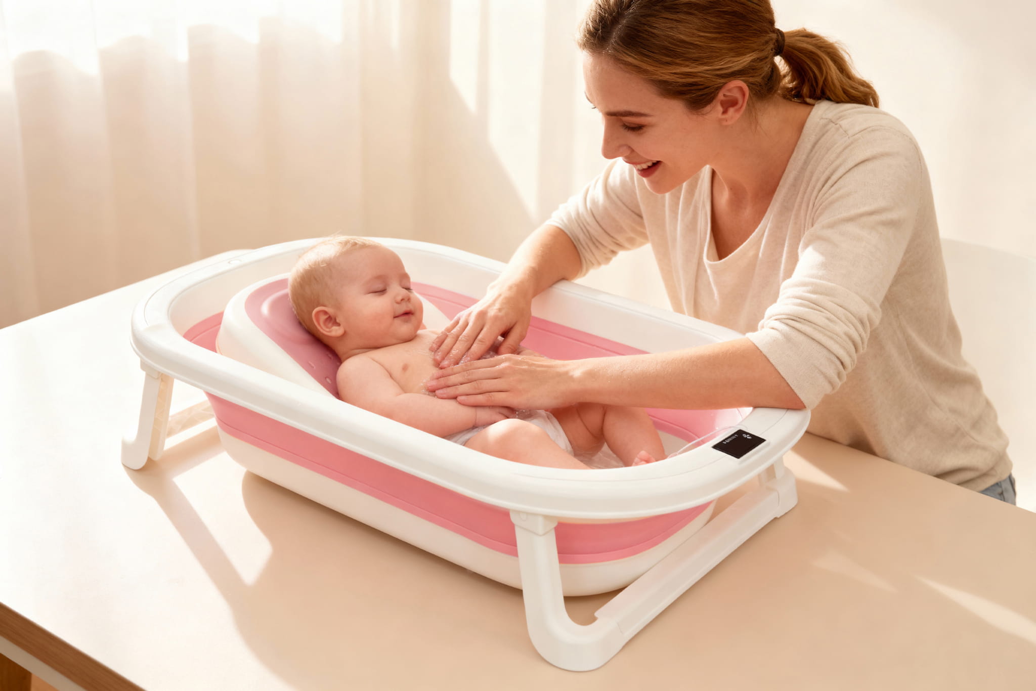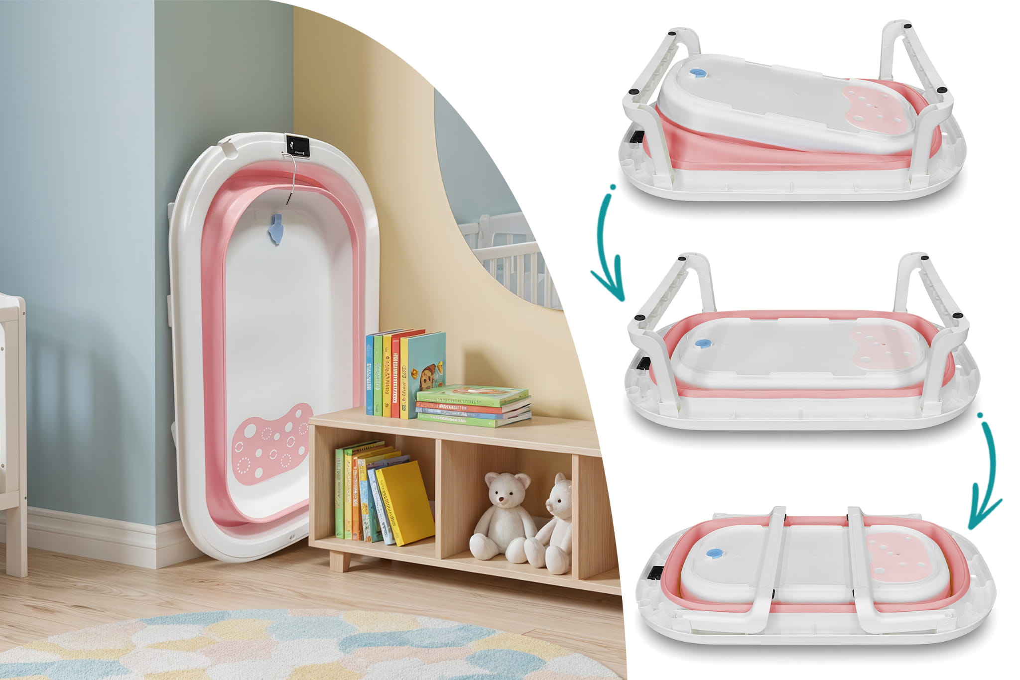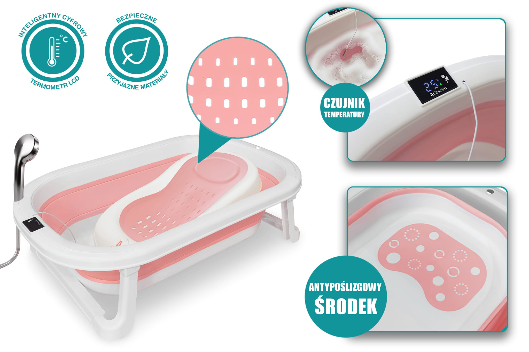 Wanienka została zaprojektowana z myślą o codziennej wygodzie rodziców. Dzięki składanej konstrukcji możesz ją łatwo przechowywać w szafie lub zabrać ze sobą w podróż. Wbudowany termometr pozwala na monitorowanie temperatury wody, co daje pewność, że maluszek będzie kąpany w komfortowych warunkach (przed włożeniem dziecka do wody, zawsze upewnij się, że jej temperatura jest odpowiednia!).