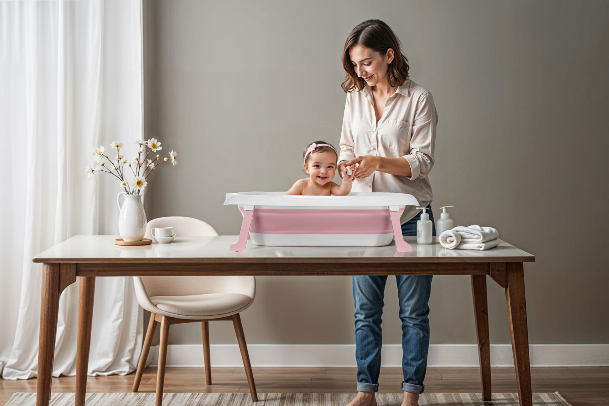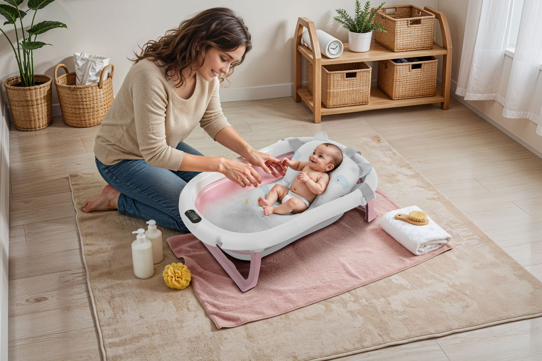 W codziennej opiece nad niemowlakiem nie brakuje wyzwań, dlatego z przyjemnością przedstawiamy naszą składaną wanienkę dziecięcą z wbudowanym termometrem. Dzięki swojej funkcjonalności i łatwości przechowywania, jest idealna do małych mieszkań, czy w trakcie podróży. Wanienka zapewnia komfort i bezpieczeństwo malutkim noworodkom dzięki dodatkowej poduszce. Jest ona łatwa do zdjęcia, dlatego wanienka posłuży także starszym dzieciom. Specyfikacja: