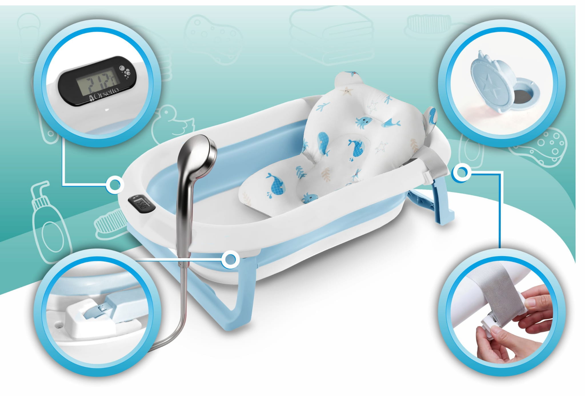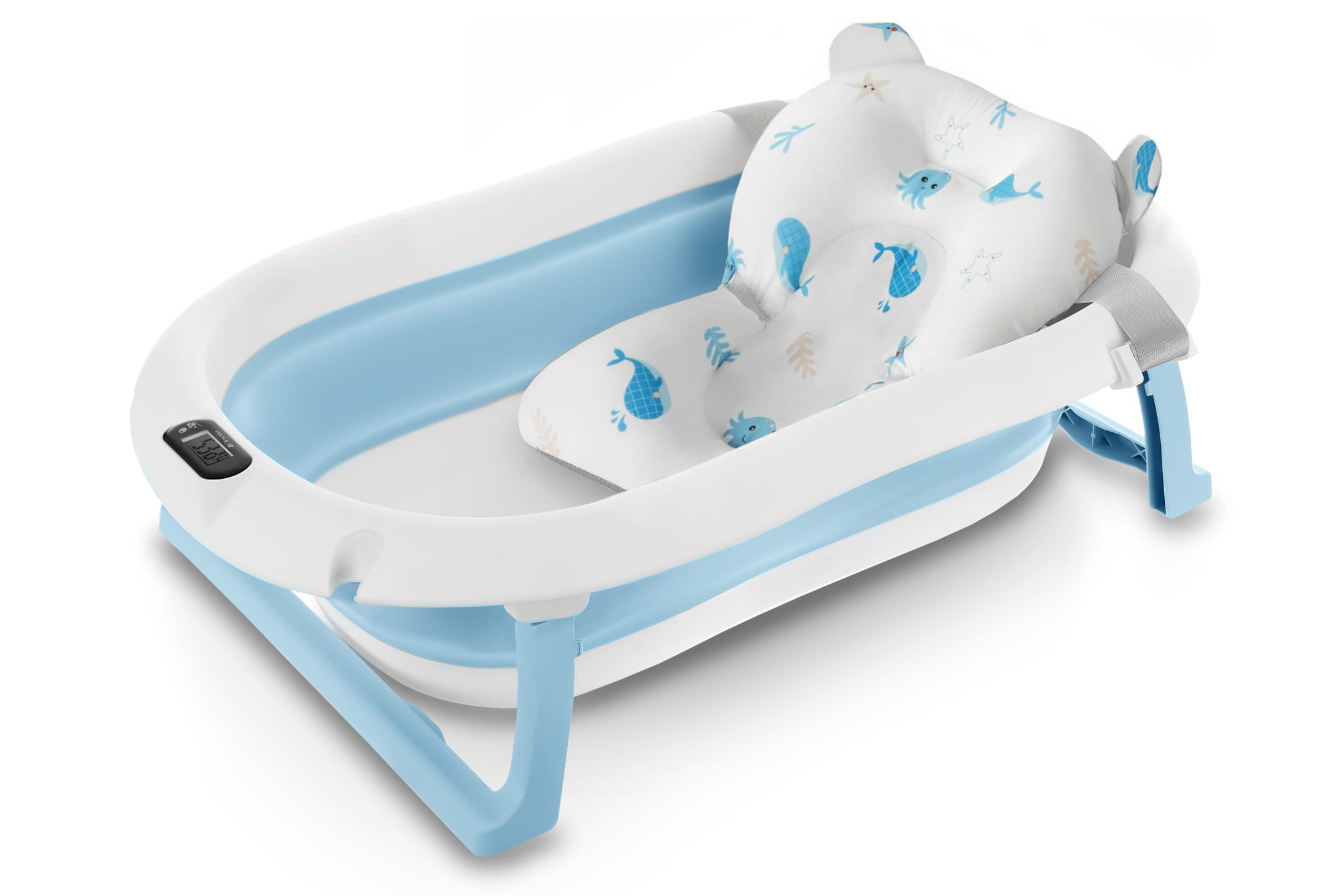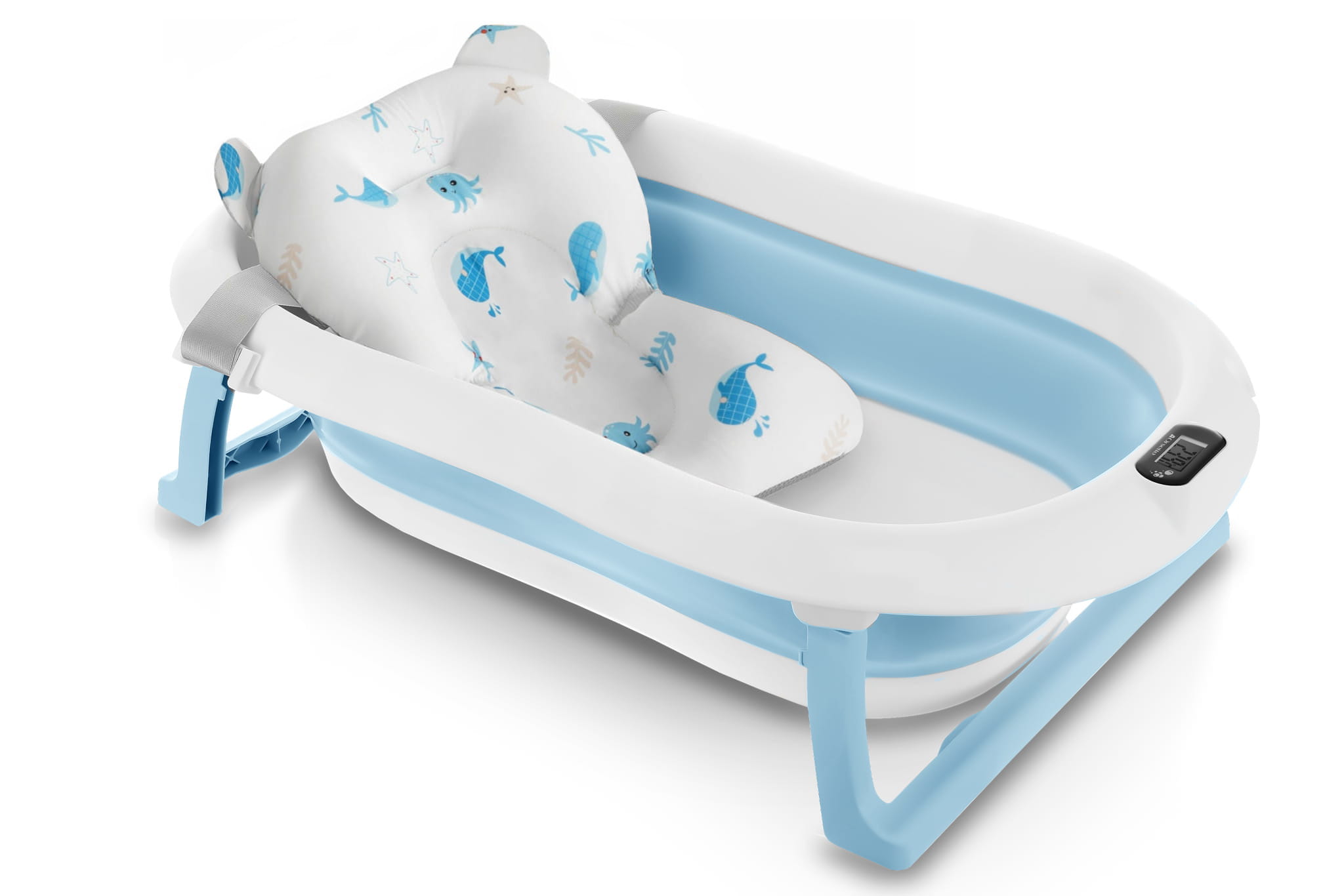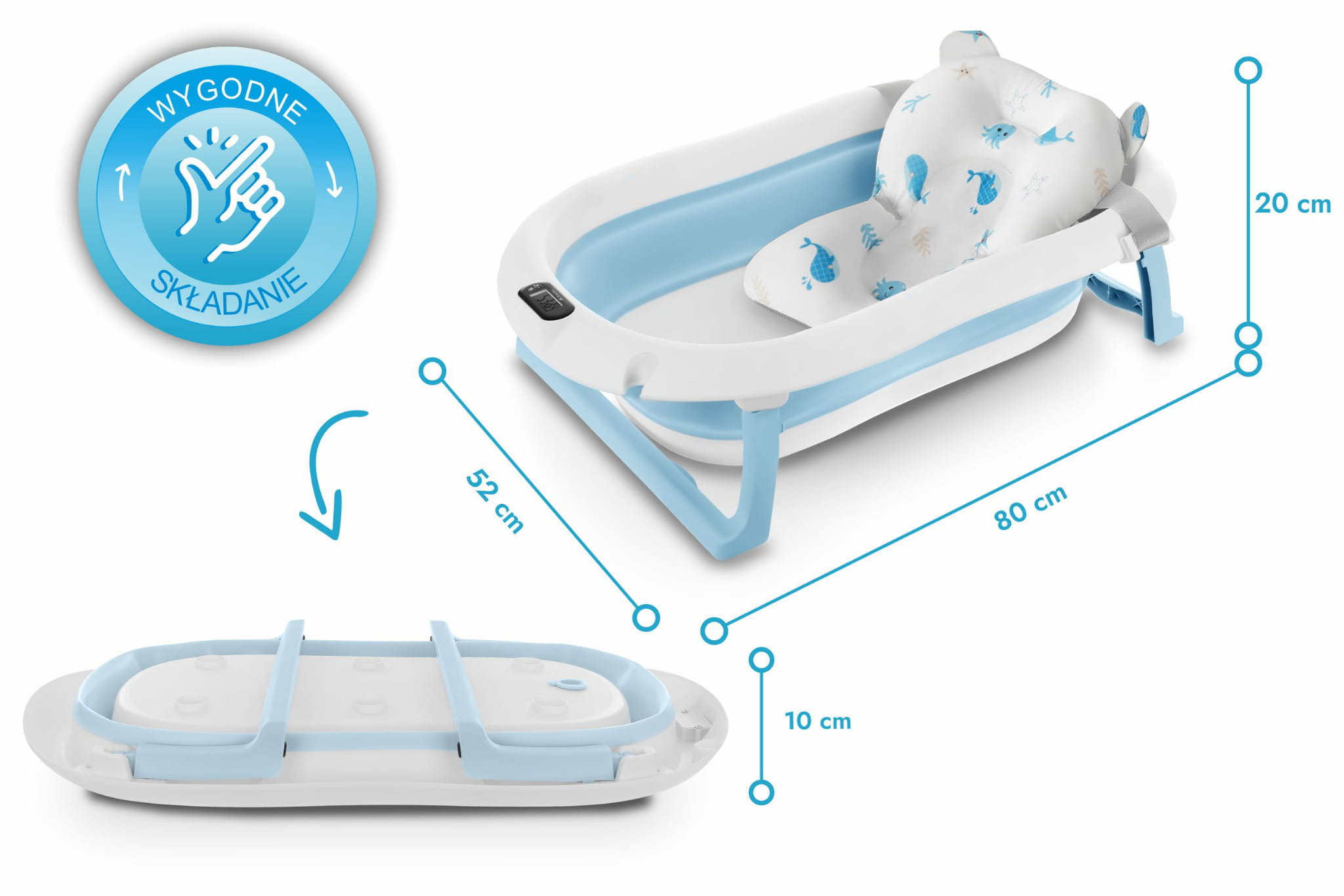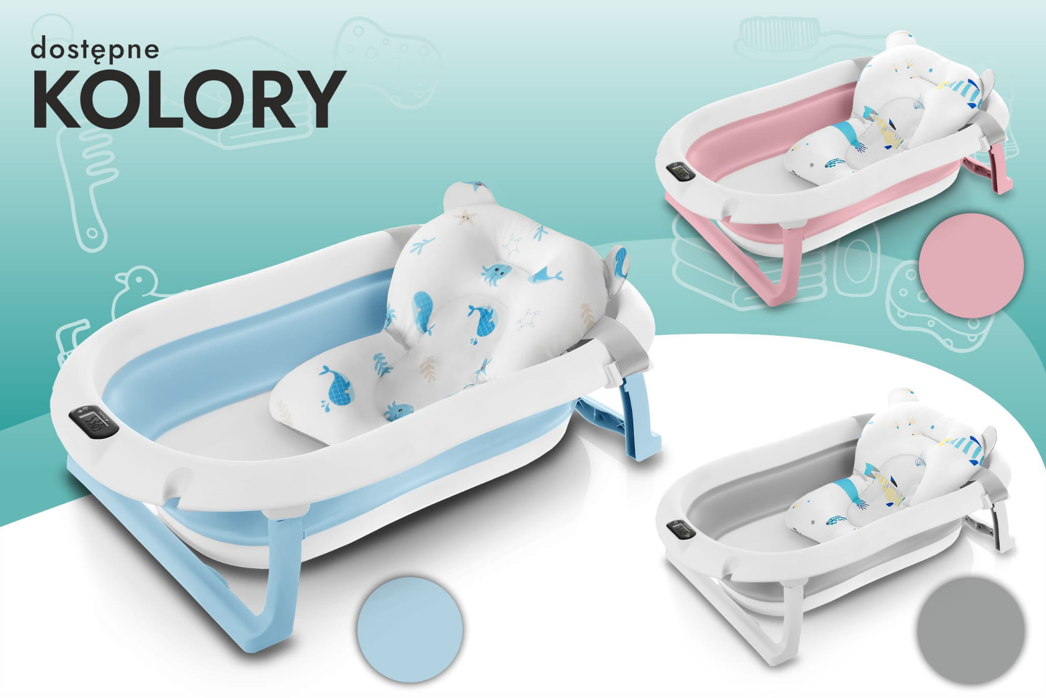 W codziennej opiece nad niemowlakiem nie brakuje wyzwań, dlatego z przyjemnością przedstawiamy naszą składaną wanienkę dziecięcą z wbudowanym termometrem. Dzięki swojej funkcjonalności i łatwości przechowywania, jest idealna do małych mieszkań, czy w trakcie podróży. Wanienka zapewnia komfort i bezpieczeństwo malutkim noworodkom dzięki dodatkowej poduszce. Jest ona łatwa do zdjęcia, dlatego wanienka posłuży także starszym dzieciom. Specyfikacja: