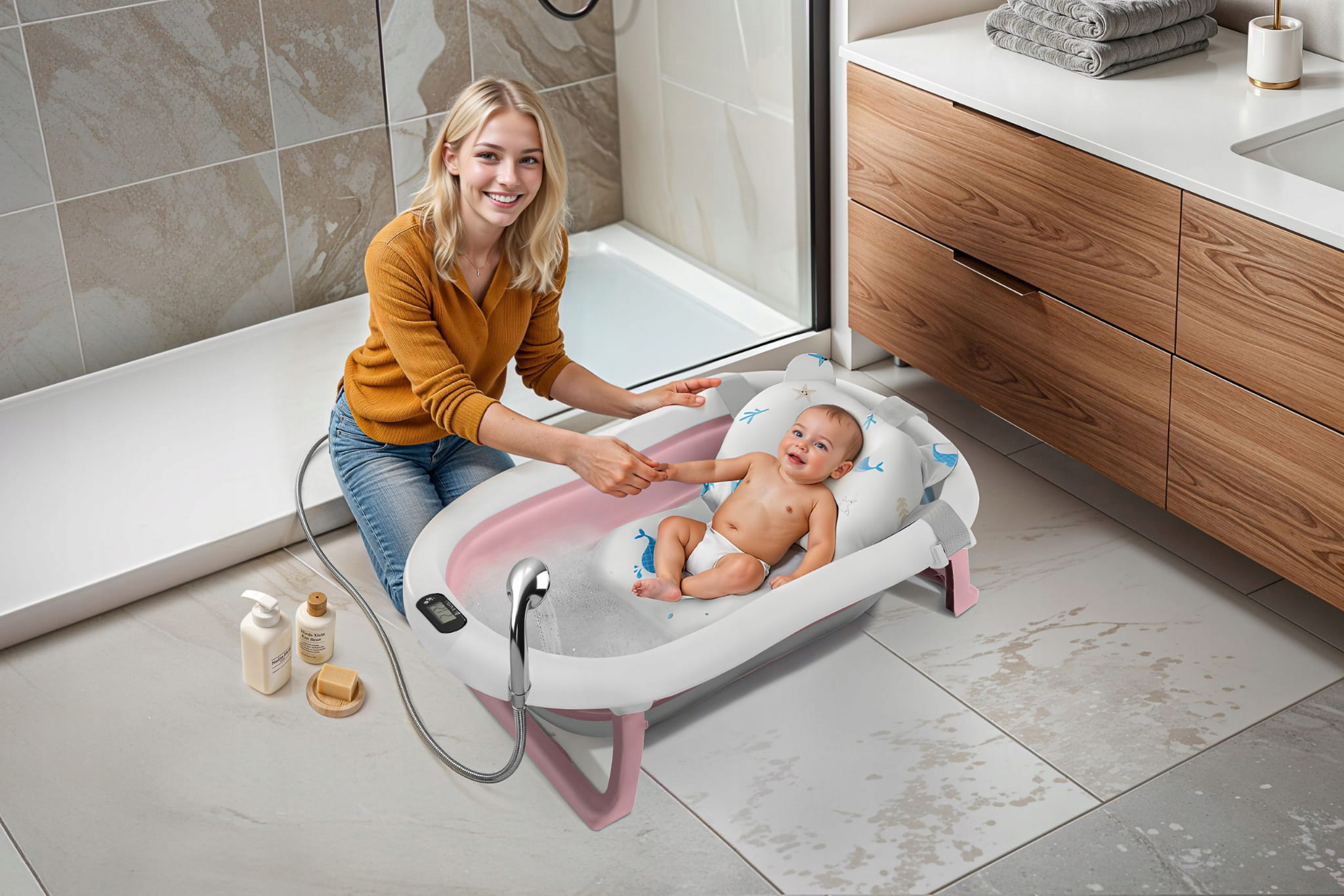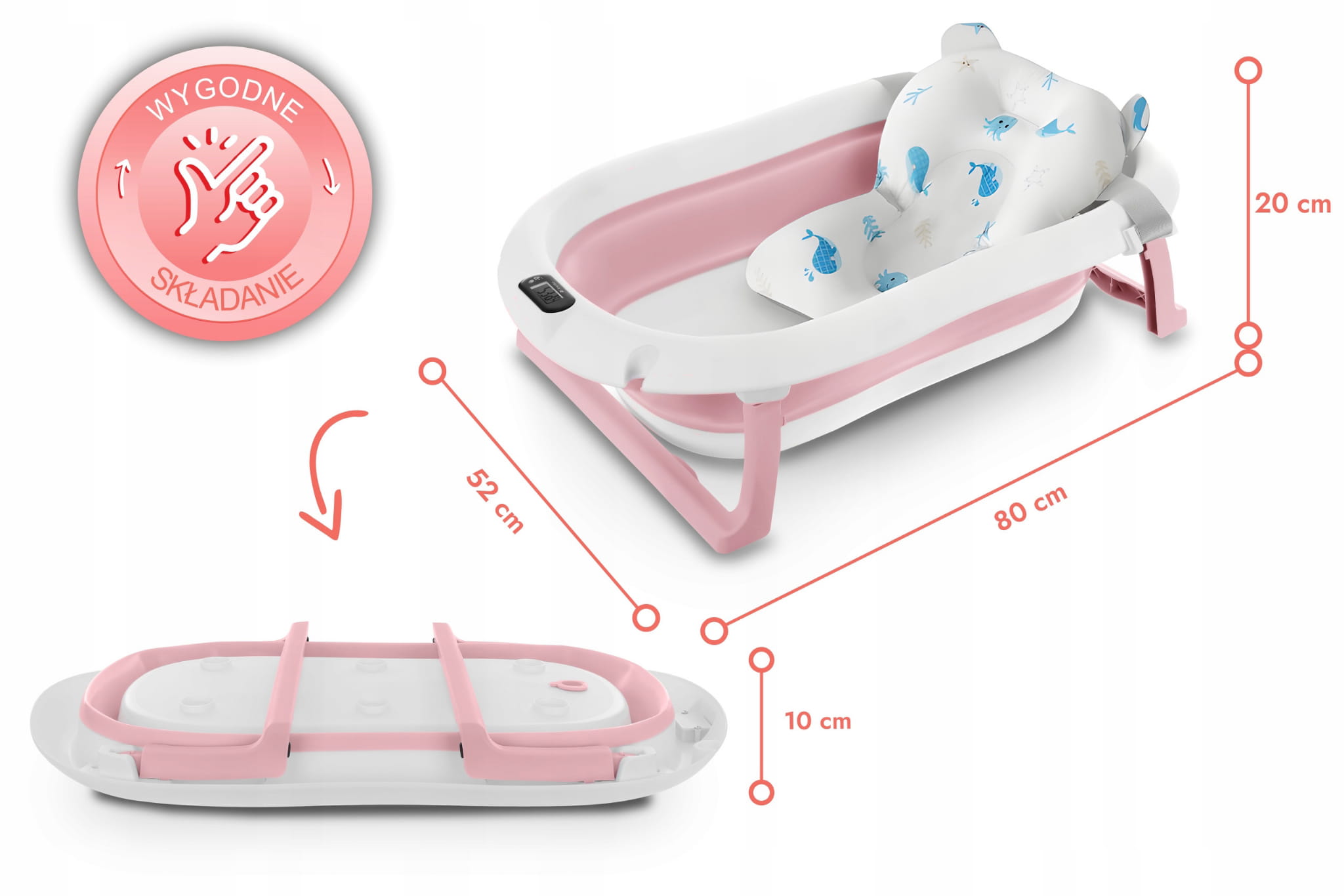 W codziennej opiece nad niemowlakiem nie brakuje wyzwań, dlatego z przyjemnością przedstawiamy naszą składaną wanienkę dziecięcą z wbudowanym termometrem. Dzięki swojej funkcjonalności i łatwości przechowywania, jest idealna do małych mieszkań, czy w trakcie podróży. Wanienka zapewnia komfort i bezpieczeństwo malutkim noworodkom dzięki dodatkowej poduszce. Jest ona łatwa do zdjęcia, dlatego wanienka posłuży także starszym dzieciom. Specyfikacja: