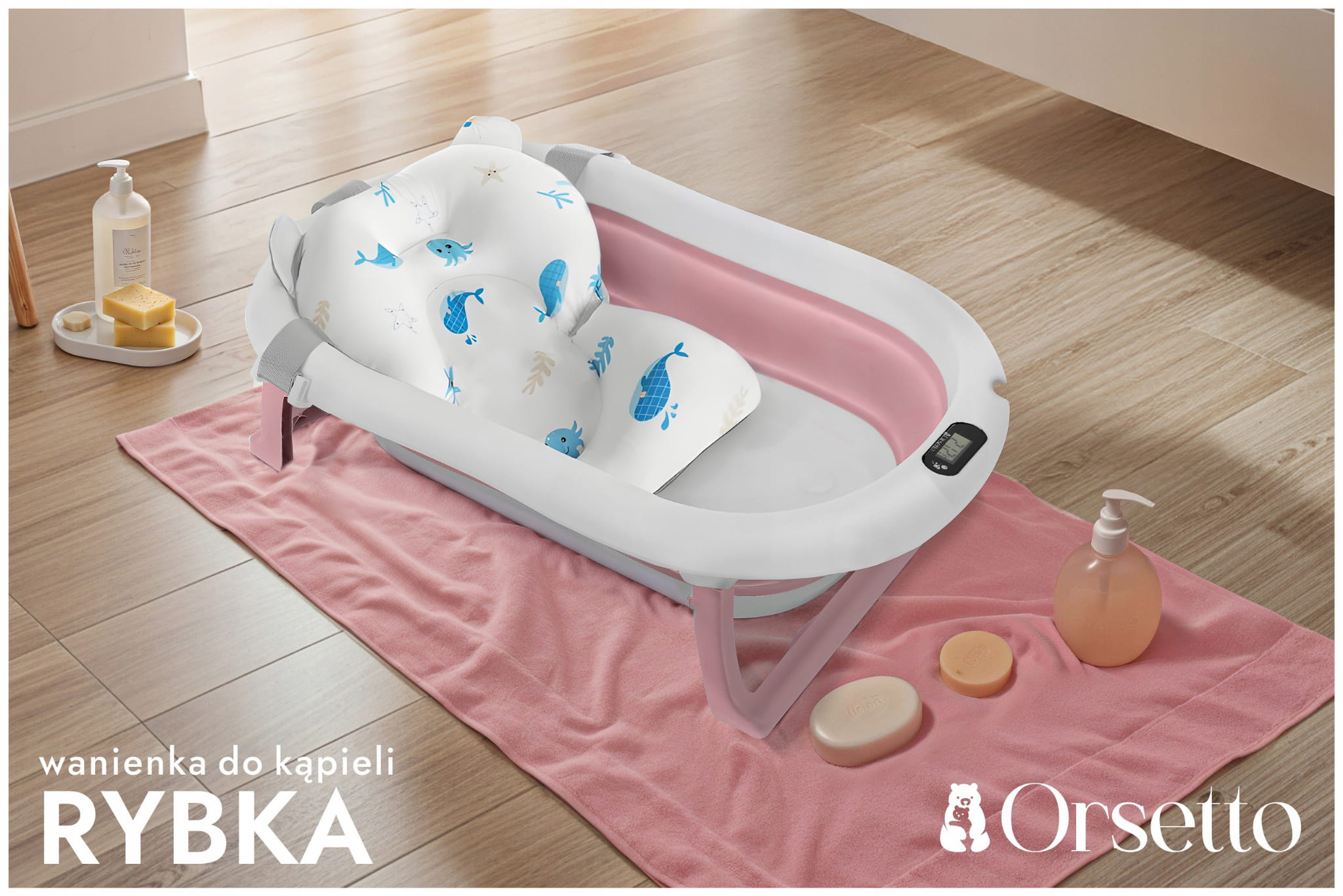 WANIENKA DZIECIĘCA Z TERMOMETREM ORSETTO RÓŻOWA + PODUSZKI RYBKI