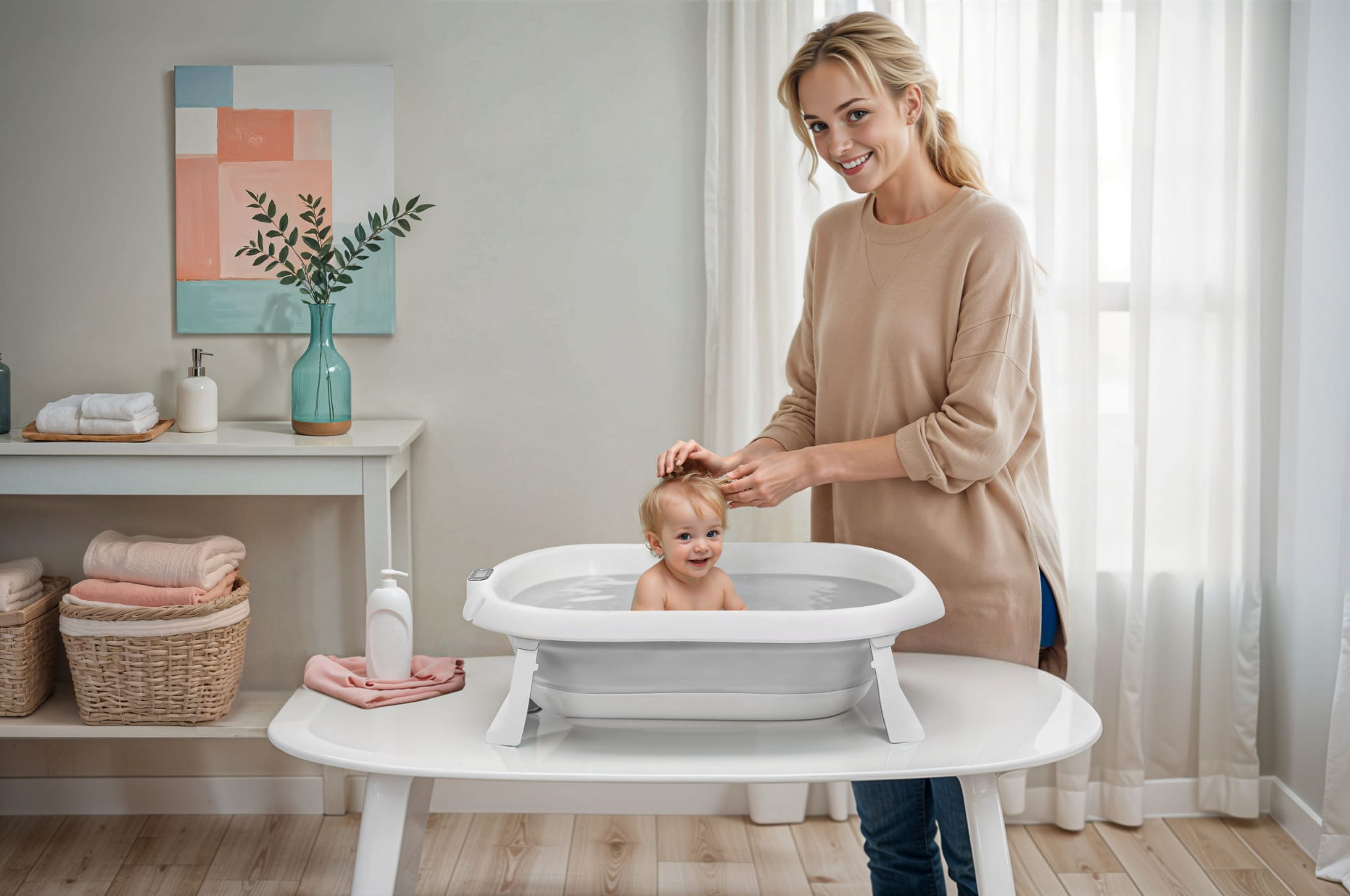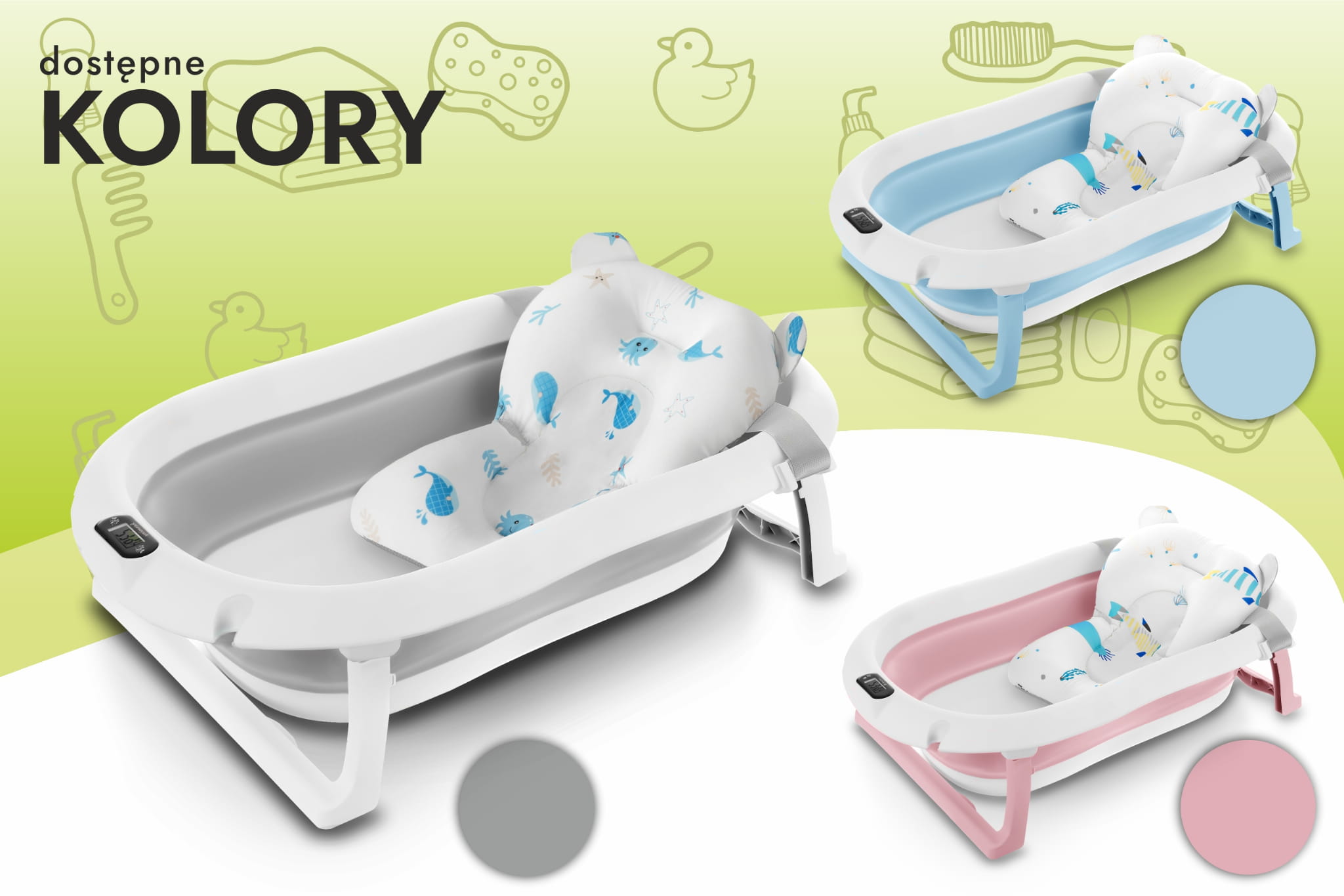 W codziennej opiece nad niemowlakiem nie brakuje wyzwań, dlatego z przyjemnością przedstawiamy naszą składaną wanienkę dziecięcą z wbudowanym termometrem. Dzięki swojej funkcjonalności i łatwości przechowywania, jest idealna do małych mieszkań, czy w trakcie podróży. Wanienka zapewnia komfort i bezpieczeństwo malutkim noworodkom dzięki dodatkowej poduszce. Jest ona łatwa do zdjęcia, dlatego wanienka posłuży także starszym dzieciom. Specyfikacja: