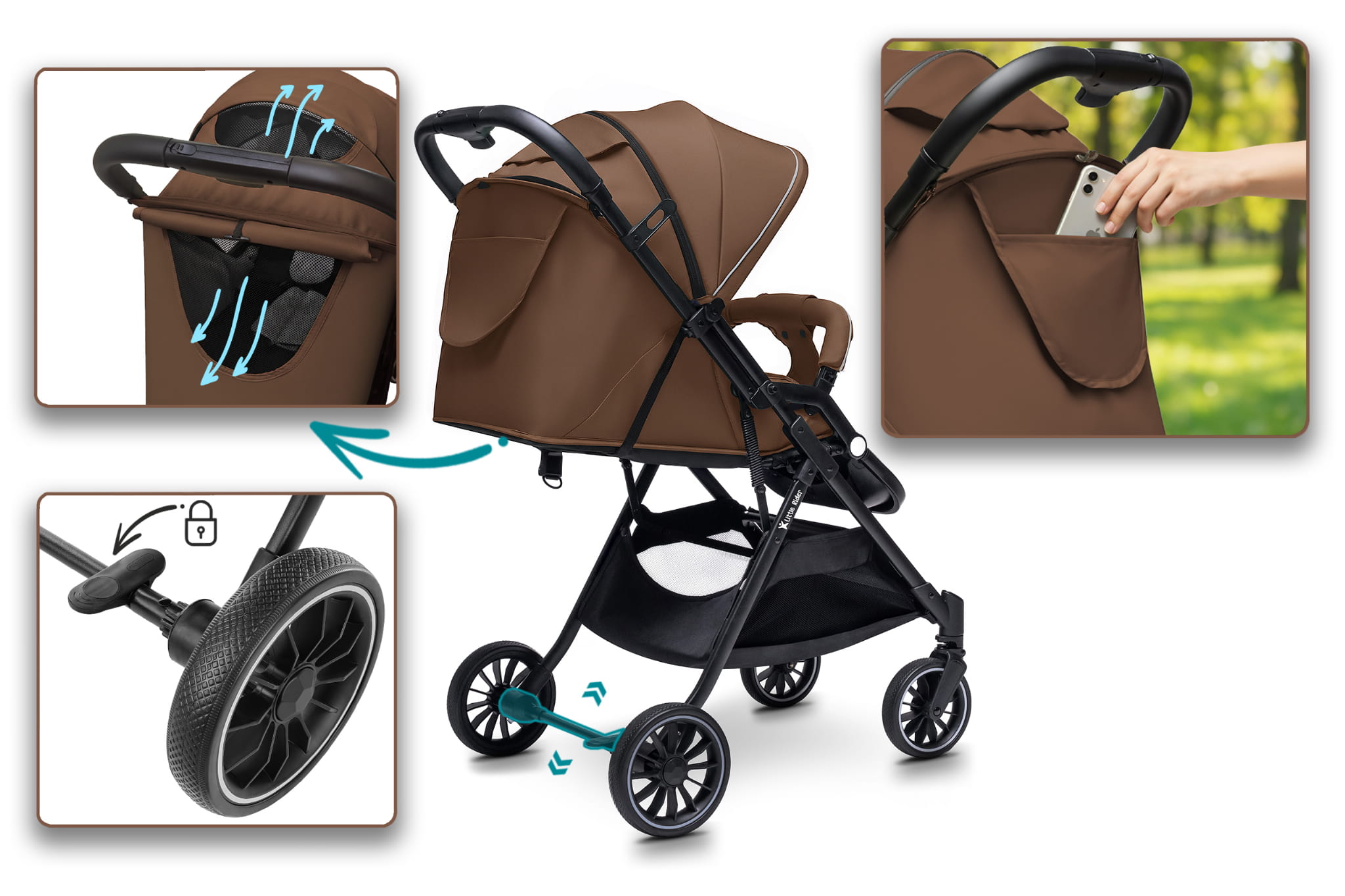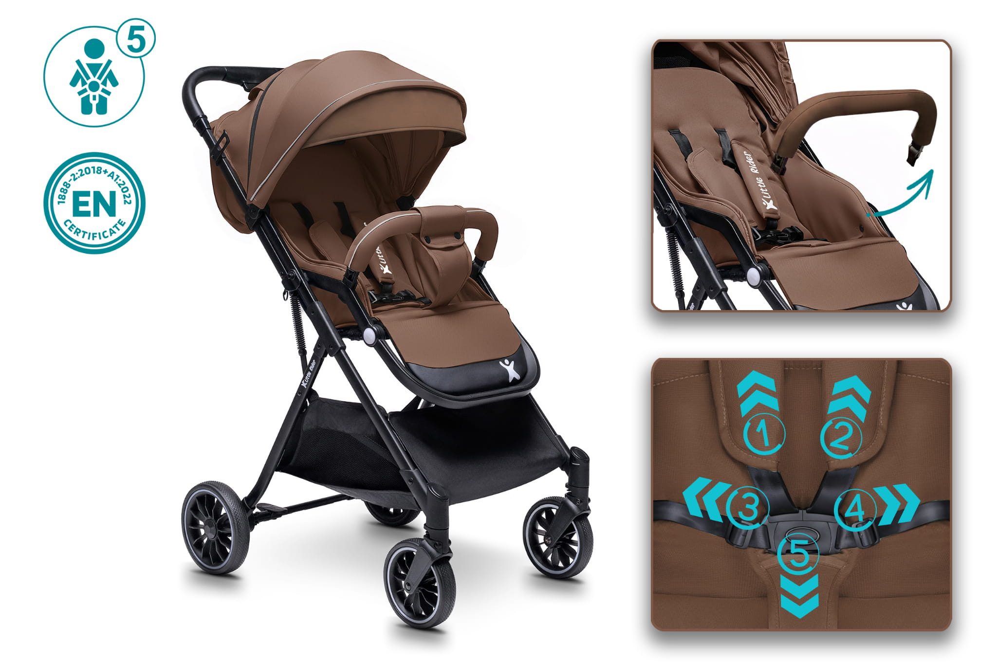 WÓZEK DZIECIĘCY SPACERÓWKA LITTLE RIDER ZEFIR BRĄZOWY