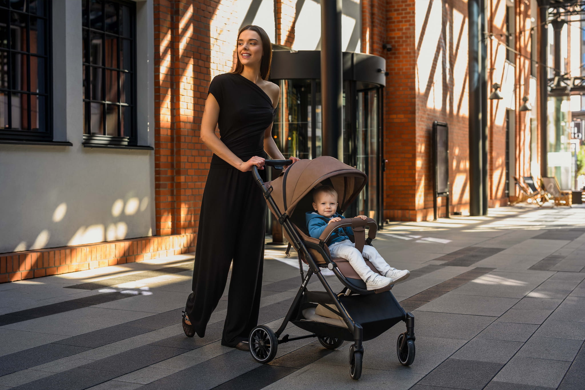• Łatwy system składania jedną ręką – w kilka sekund złożysz wózek do kompaktowych rozmiarów, co jest niezwykle praktyczne podczas codziennych spacerów czy podróży.
