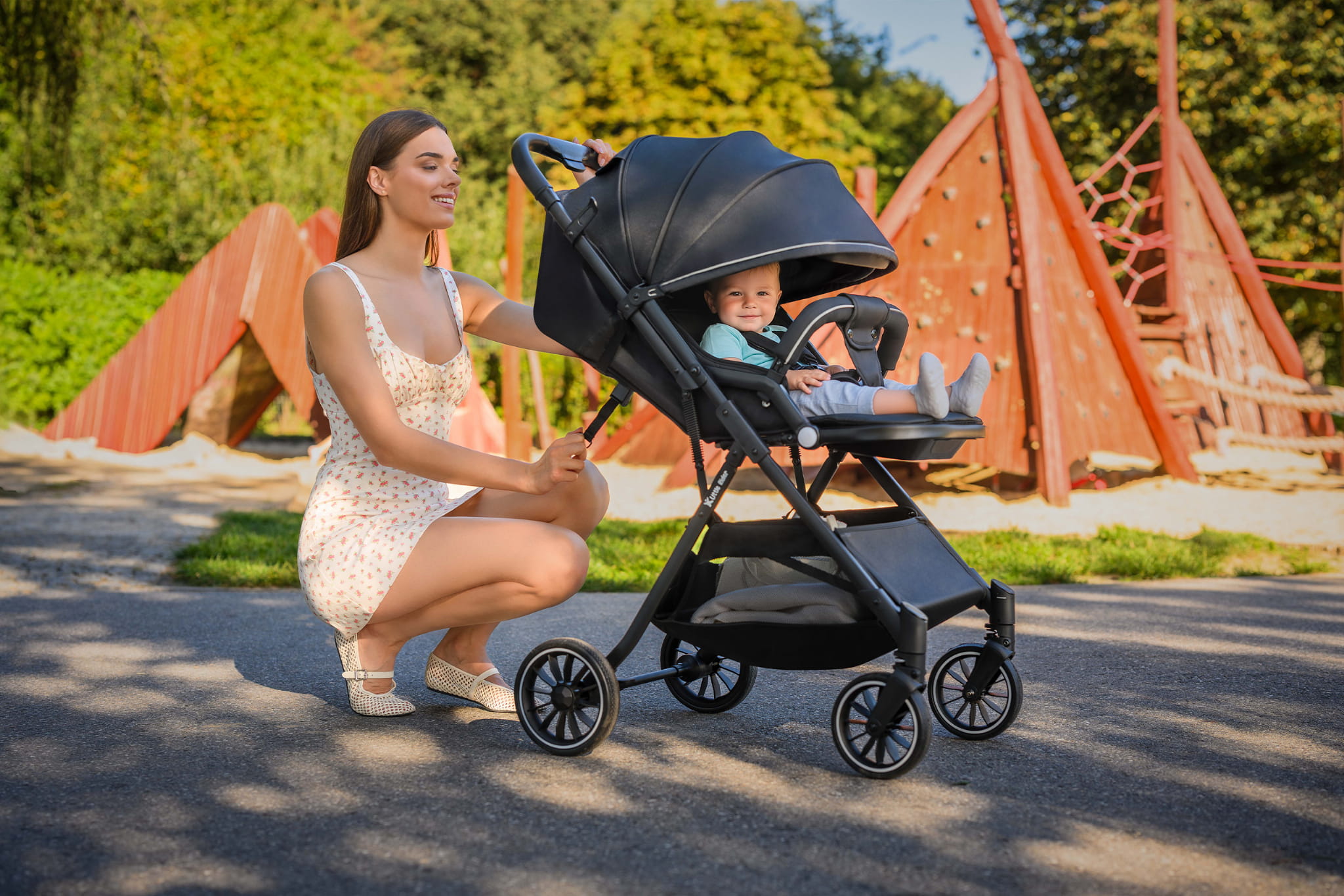 • Łatwy system składania jedną ręką – w kilka sekund złożysz wózek do kompaktowych rozmiarów, co jest niezwykle praktyczne podczas codziennych spacerów czy podróży.