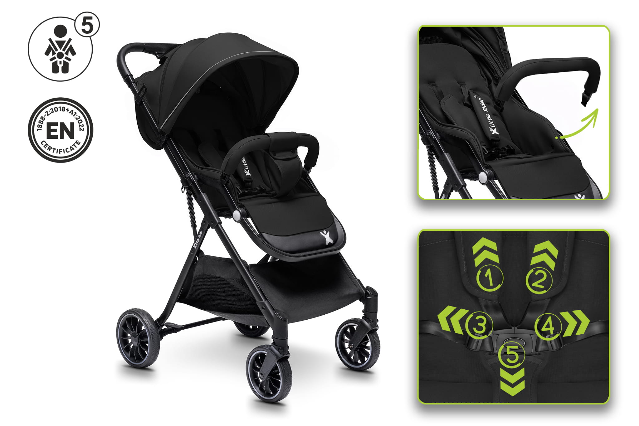 Codzienne spacery z dzieckiem to przyjemność, która może być jeszcze bardziej komfortowa i bezpieczna dzięki naszemu lekkiemu wózkowi spacerowemu marki Little Rider. Wózek został zaprojektowany z myślą o wygodzie zarówno malucha, jak i rodziców – łączy funkcjonalność, bezpieczeństwo i nowoczesny design.