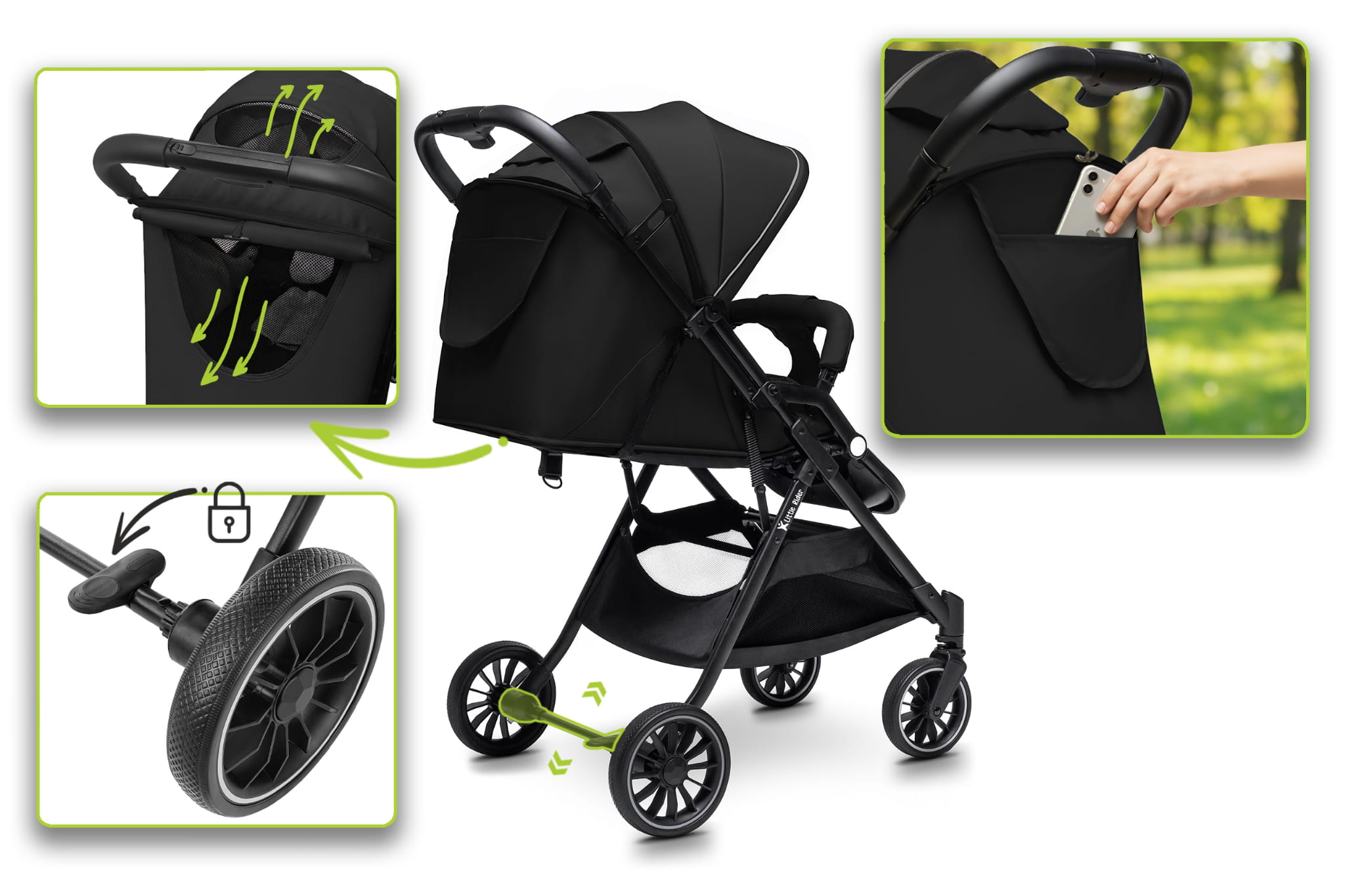 WÓZEK DZIECIĘCY SPACERÓWKA LITTLE RIDER ZEFIR CZARNY