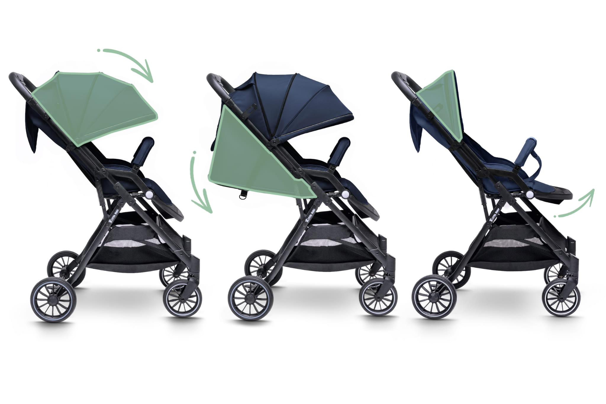 • Przedłużona budka XXL – zapewnia skuteczną ochronę przed słońcem, wiatrem i deszczem, tworząc dziecku przytulne i bezpieczne miejsce podczas spaceru.