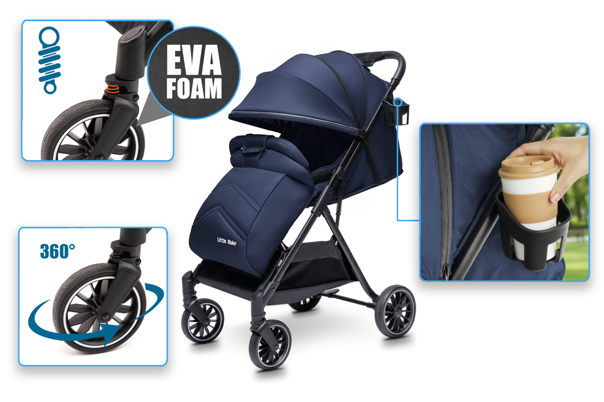 WÓZEK DZIECIĘCY SPACERÓWKA LITTLE RIDER ZEFIR GRANATOWY
