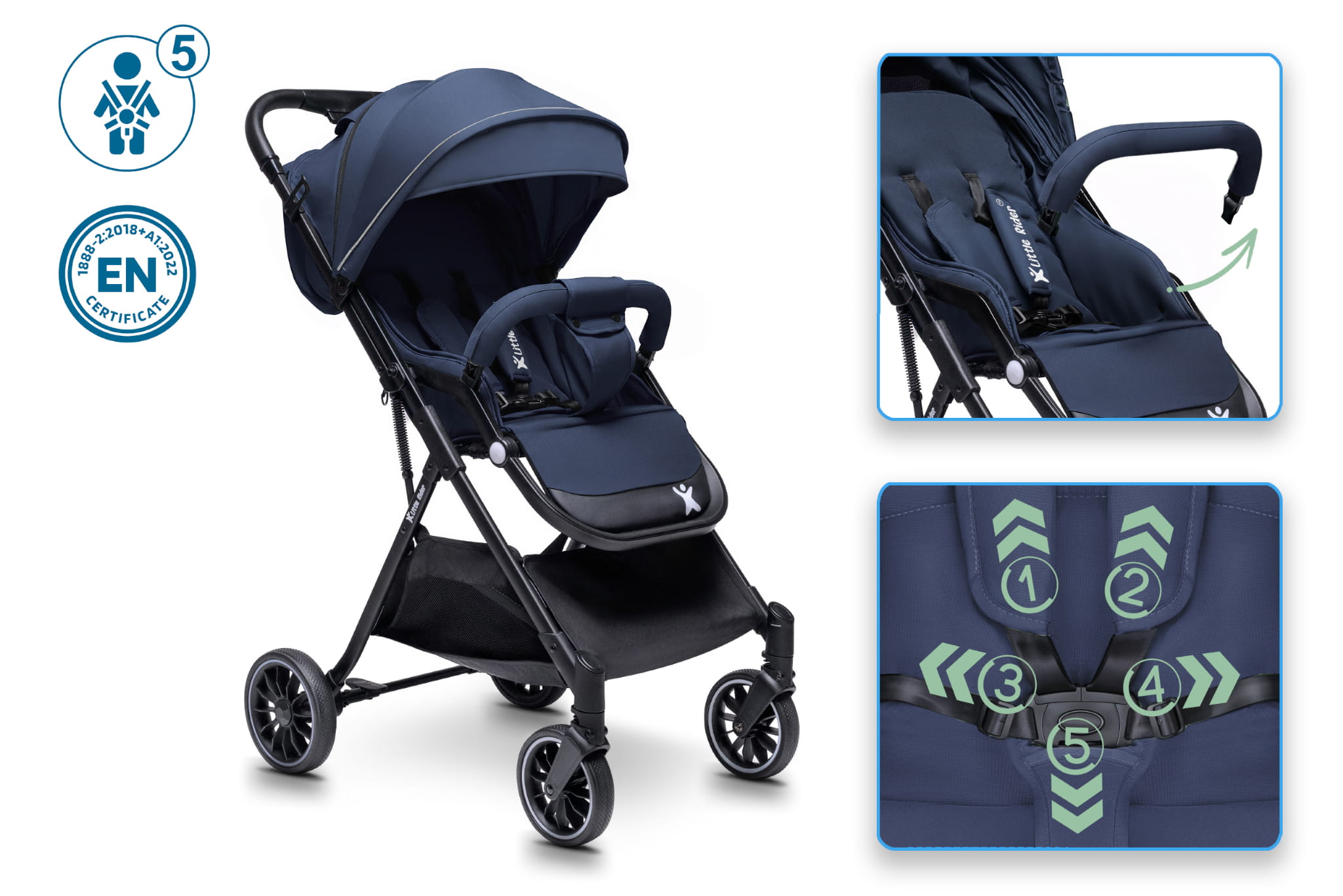 Codzienne spacery z dzieckiem to przyjemność, która może być jeszcze bardziej komfortowa i bezpieczna dzięki naszemu lekkiemu wózkowi spacerowemu marki Little Rider. Wózek został zaprojektowany z myślą o wygodzie zarówno malucha, jak i rodziców – łączy funkcjonalność, bezpieczeństwo i nowoczesny design.