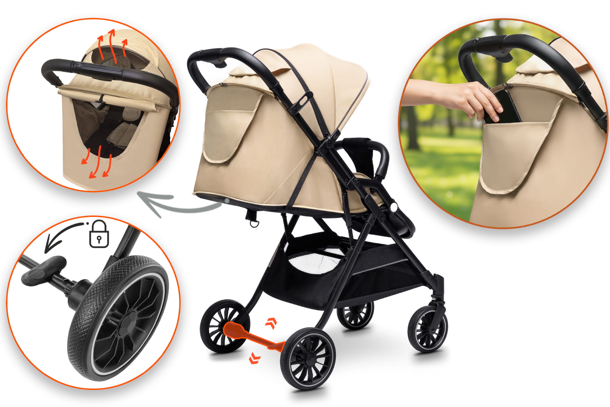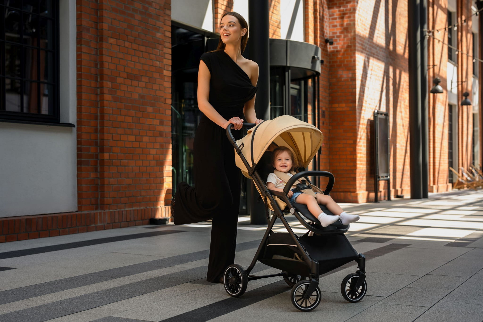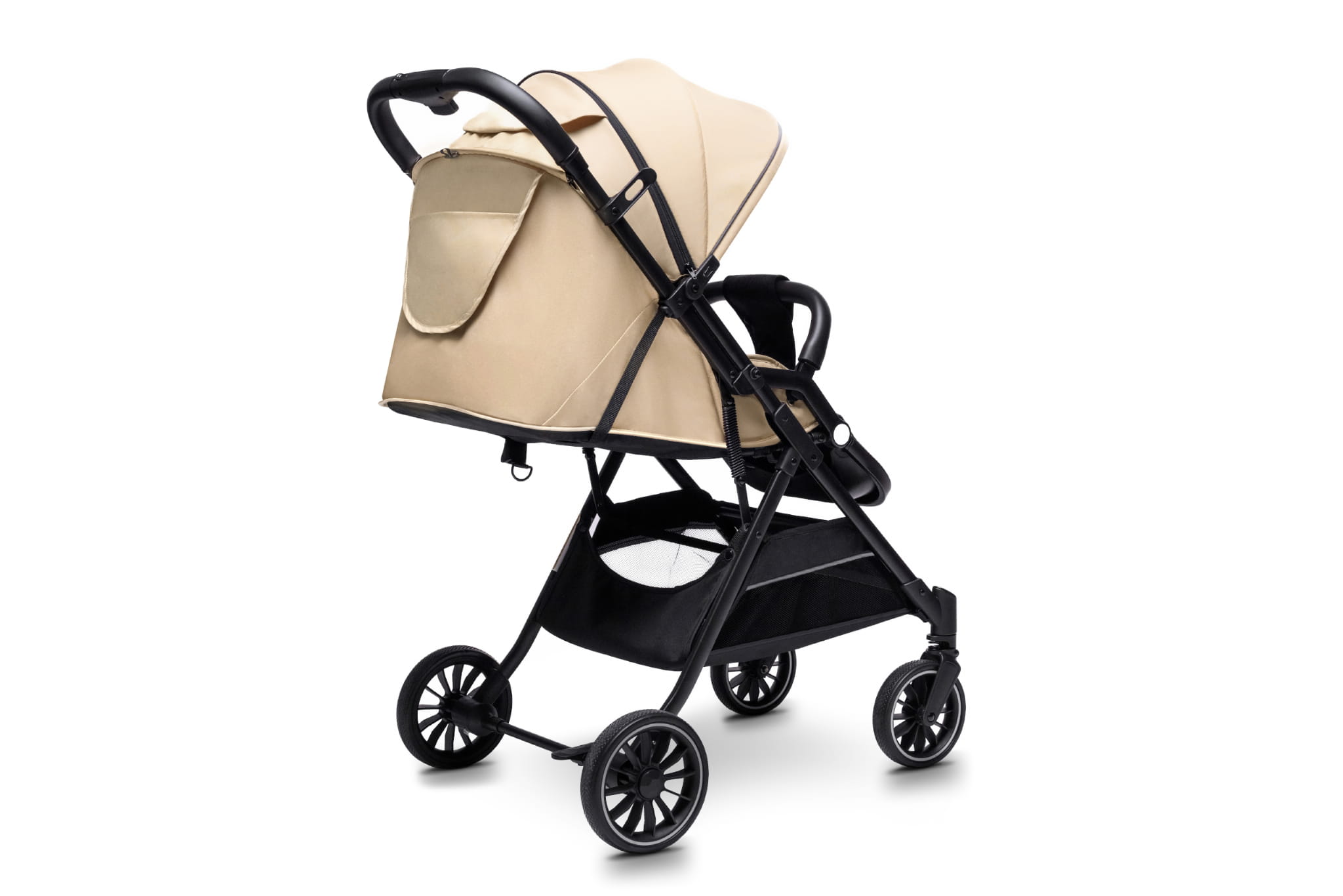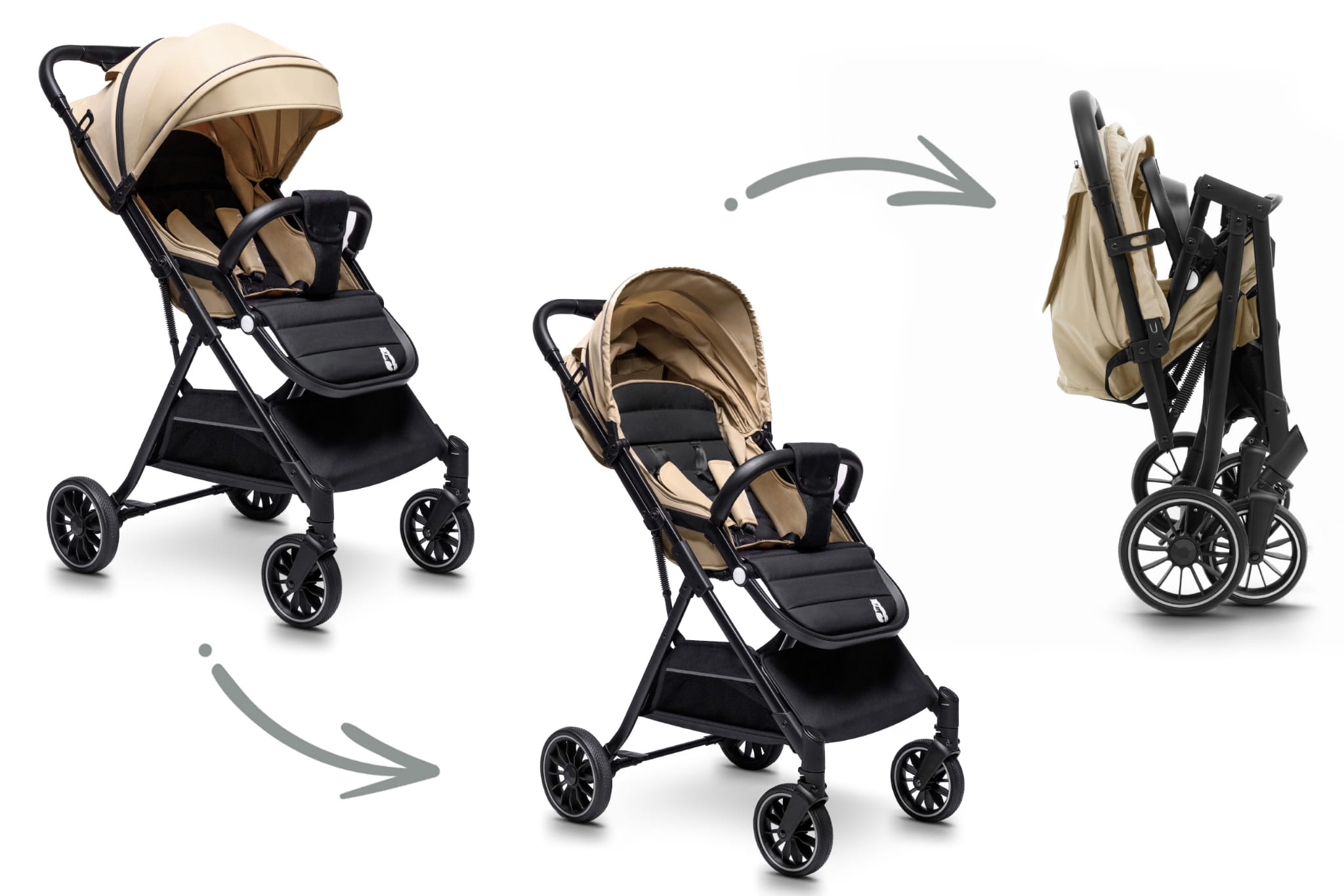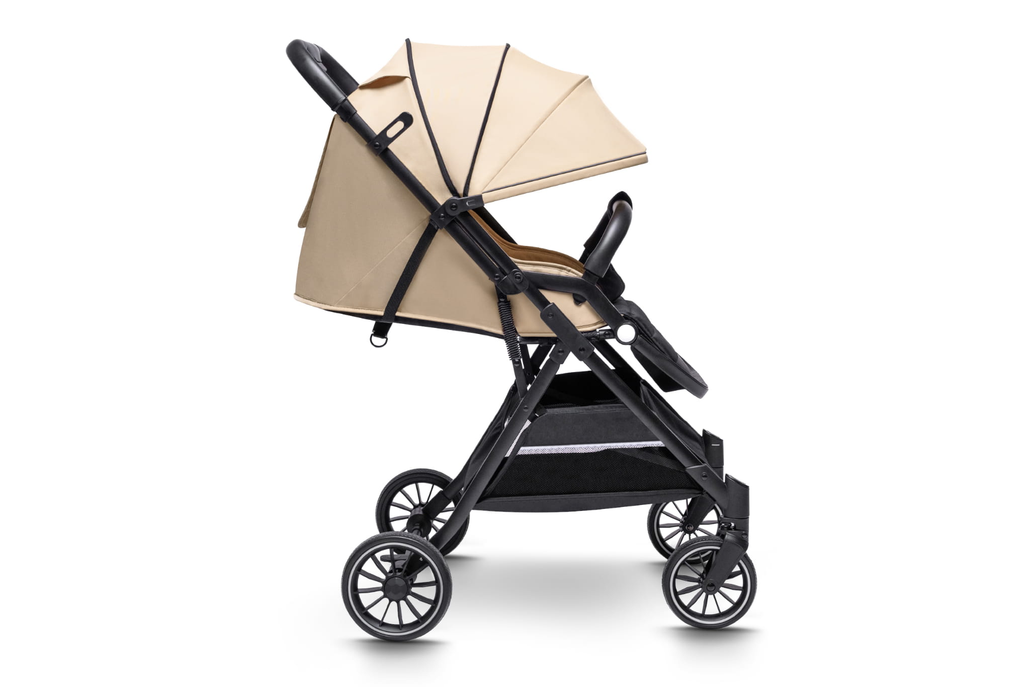 • Łatwy system składania jedną ręką – w kilka sekund złożysz wózek do kompaktowych rozmiarów, co jest niezwykle praktyczne podczas codziennych spacerów czy podróży.