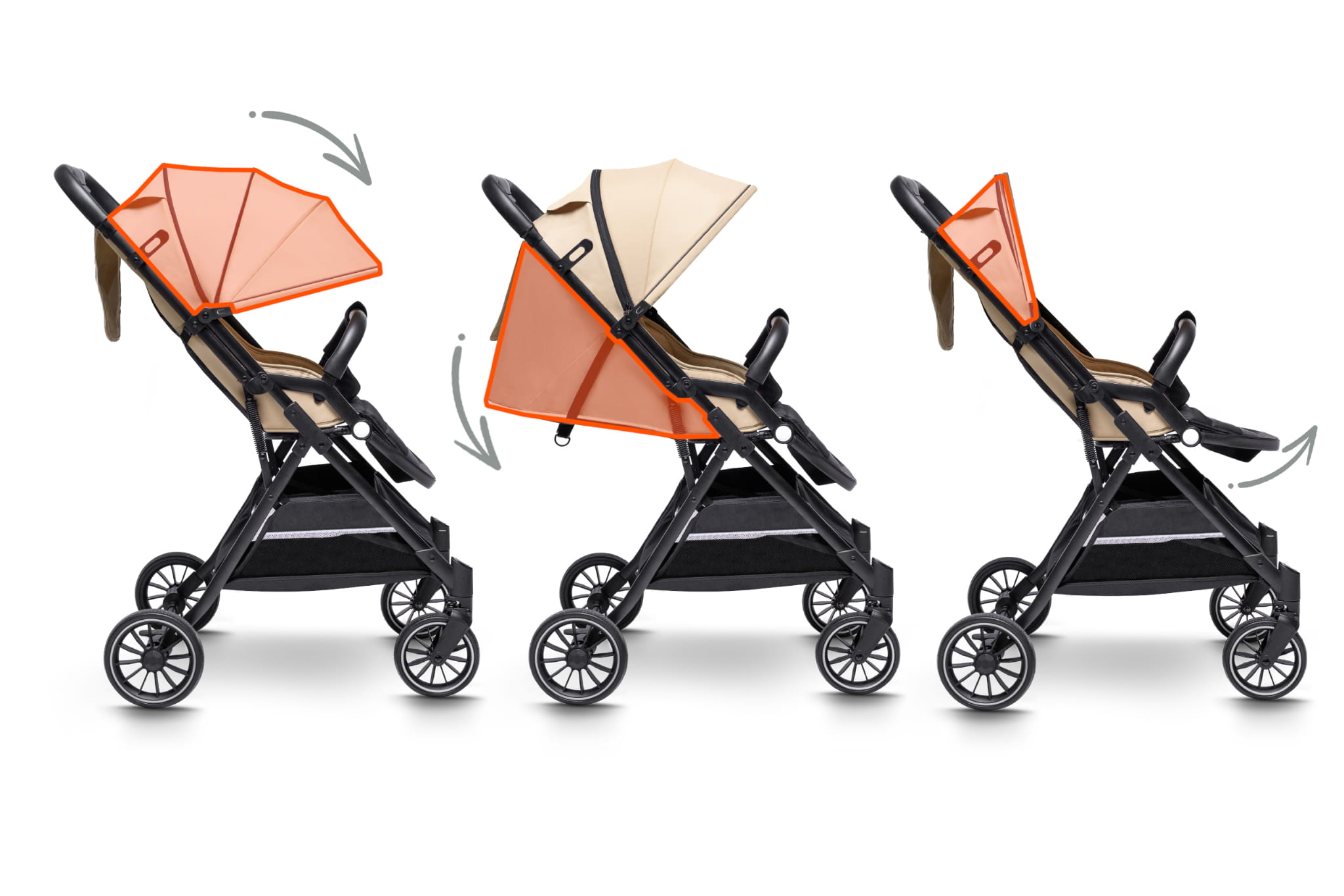 • Przedłużona budka XXL – zapewnia skuteczną ochronę przed słońcem, wiatrem i deszczem, tworząc dziecku przytulne i bezpieczne miejsce podczas spaceru.