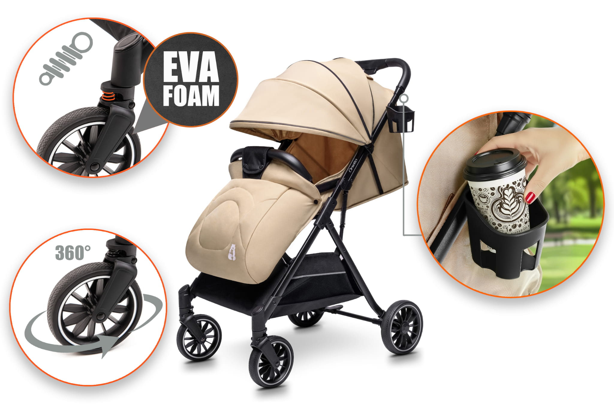 Codzienne spacery z dzieckiem to przyjemność, która może być jeszcze bardziej komfortowa i bezpieczna dzięki naszemu lekkiemu wózkowi spacerowemu marki ORSETTO. Wózek został zaprojektowany z myślą o wygodzie zarówno malucha, jak i rodziców – łączy funkcjonalność, bezpieczeństwo i nowoczesny design.
