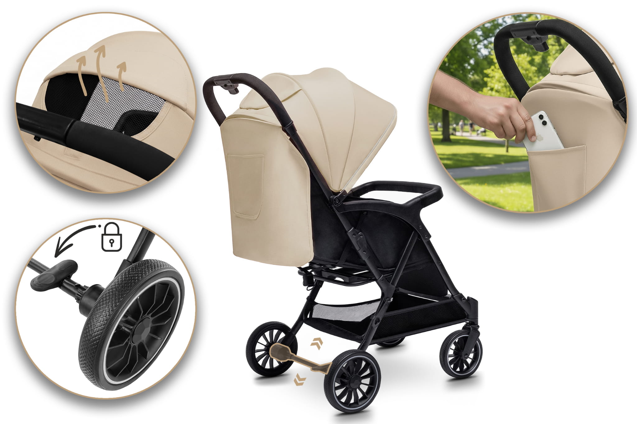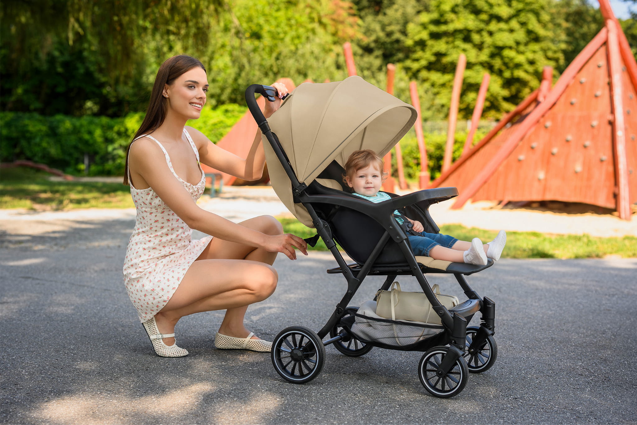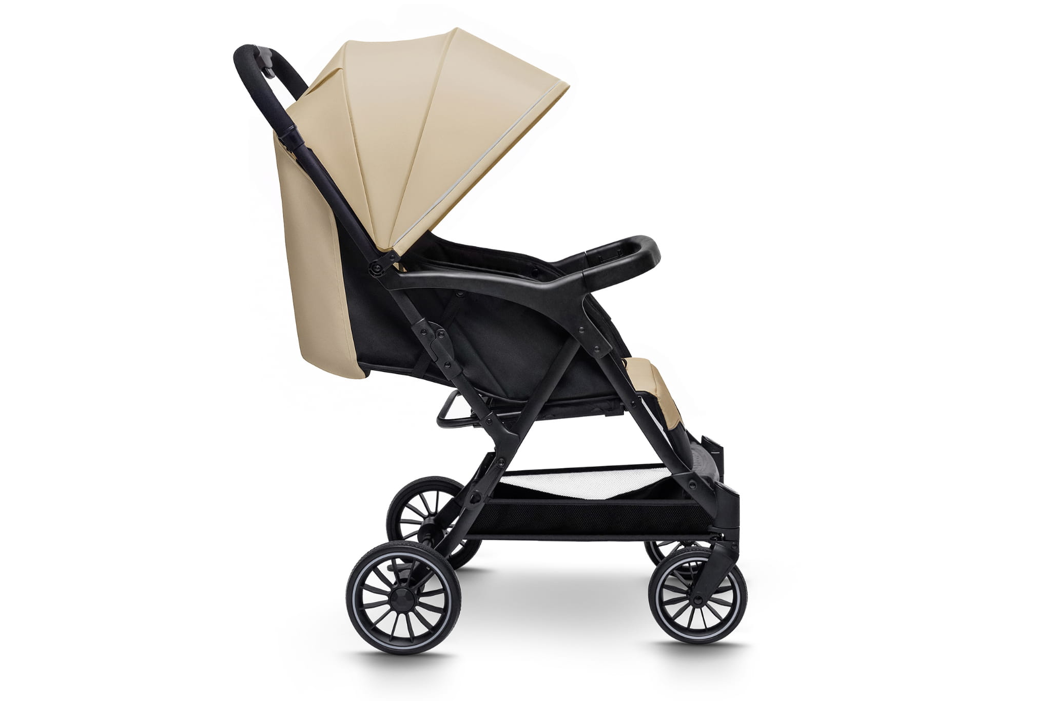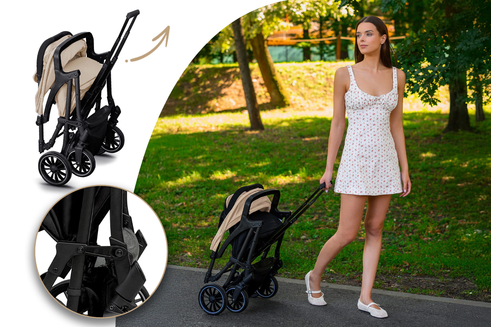 • Łatwy system składania jedną ręką – w kilka sekund złożysz wózek do kompaktowych rozmiarów, co jest niezwykle praktyczne podczas codziennych spacerów czy podróży.