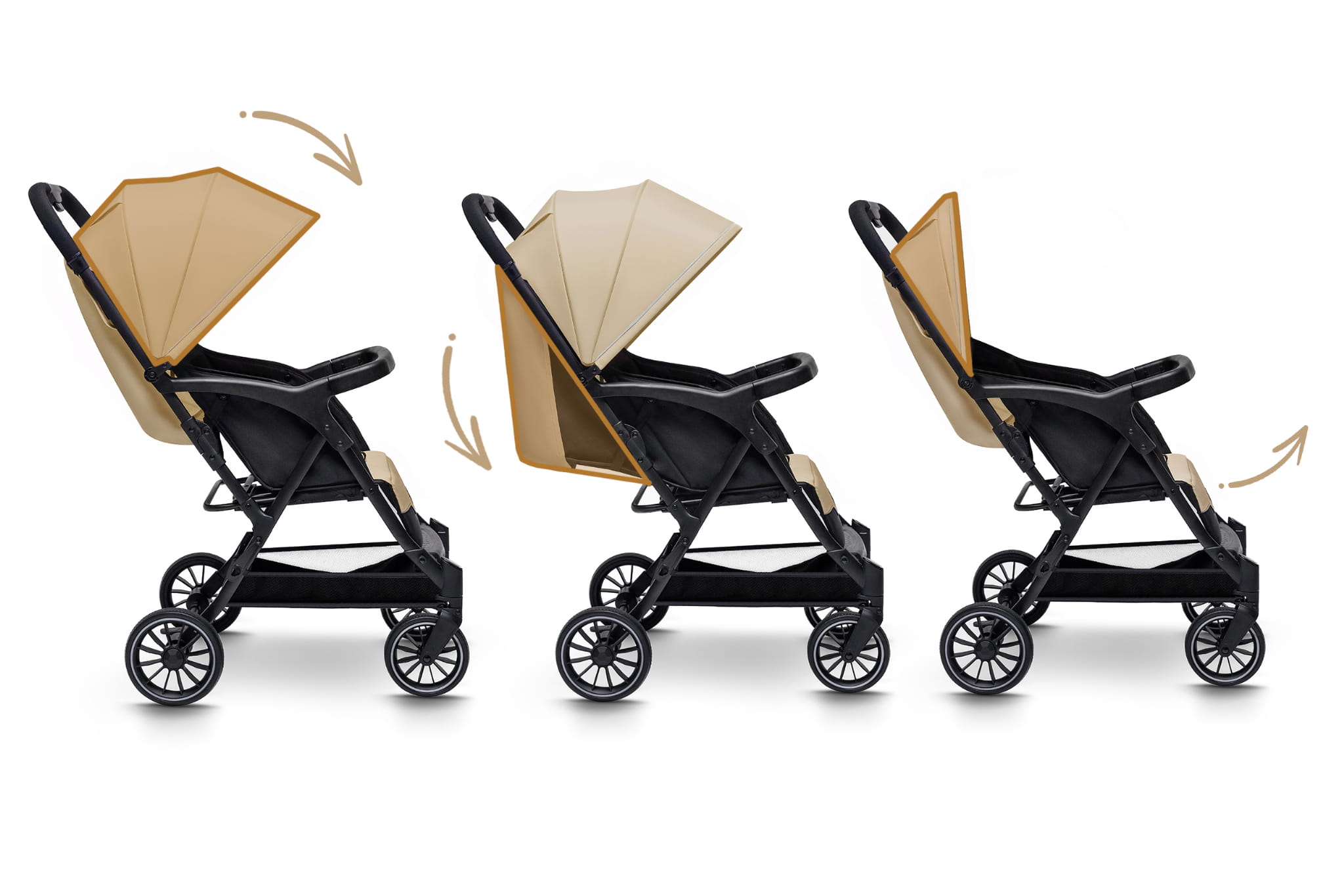 • Obszerna, regulowana budka – tworzy przytulną przestrzeń i chroni przed słońcem, wiatrem czy deszczem.